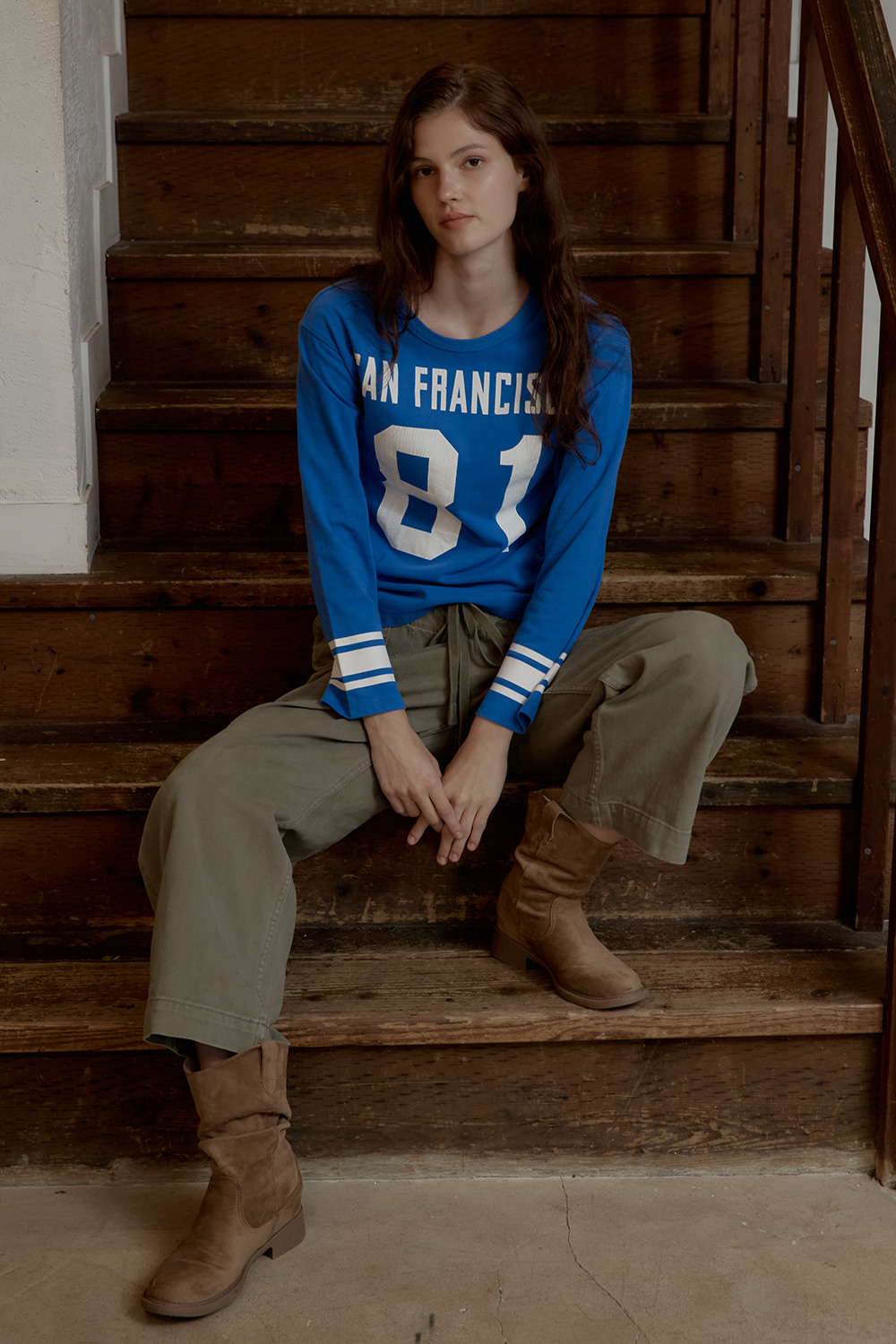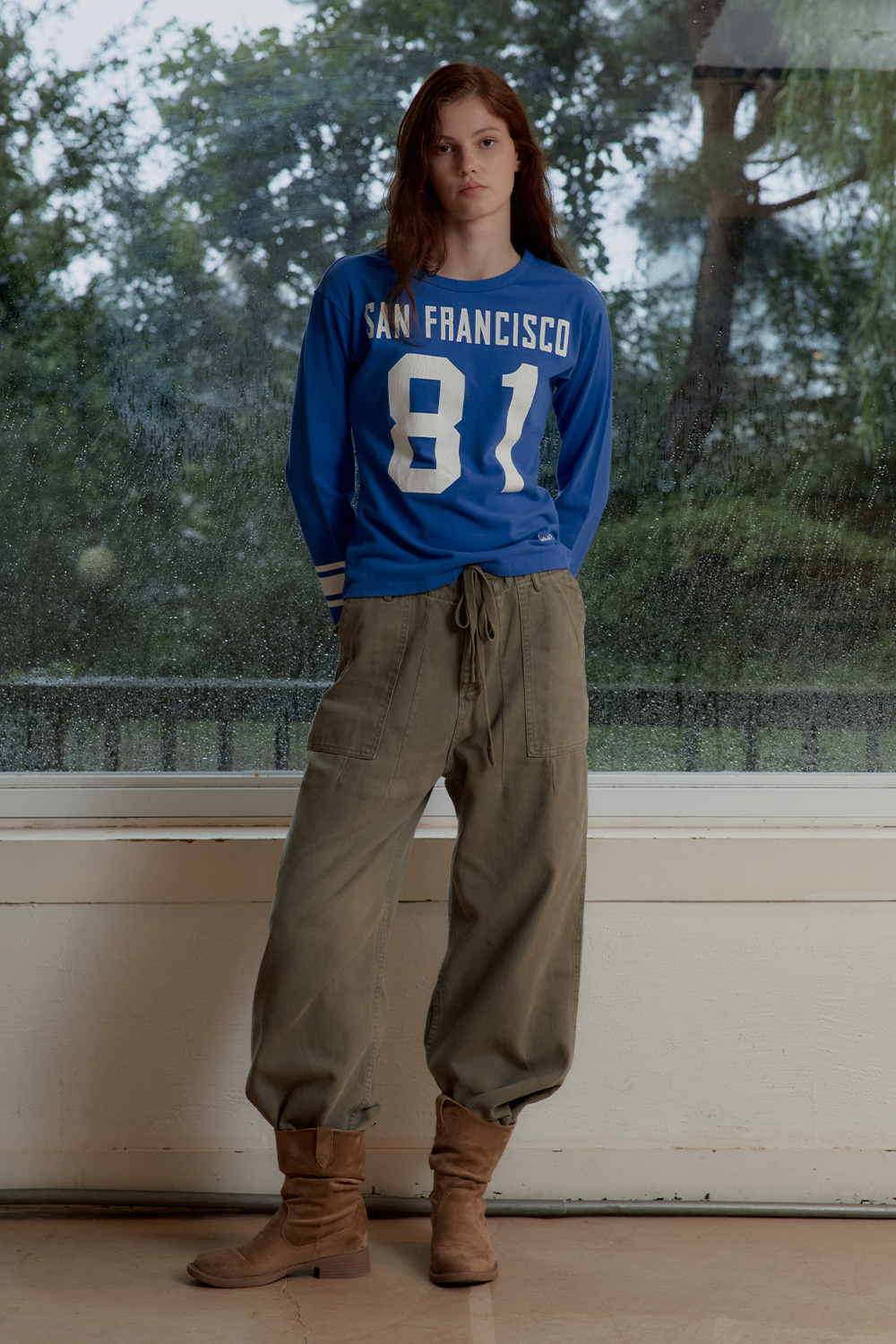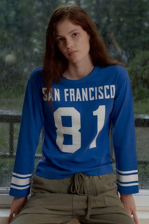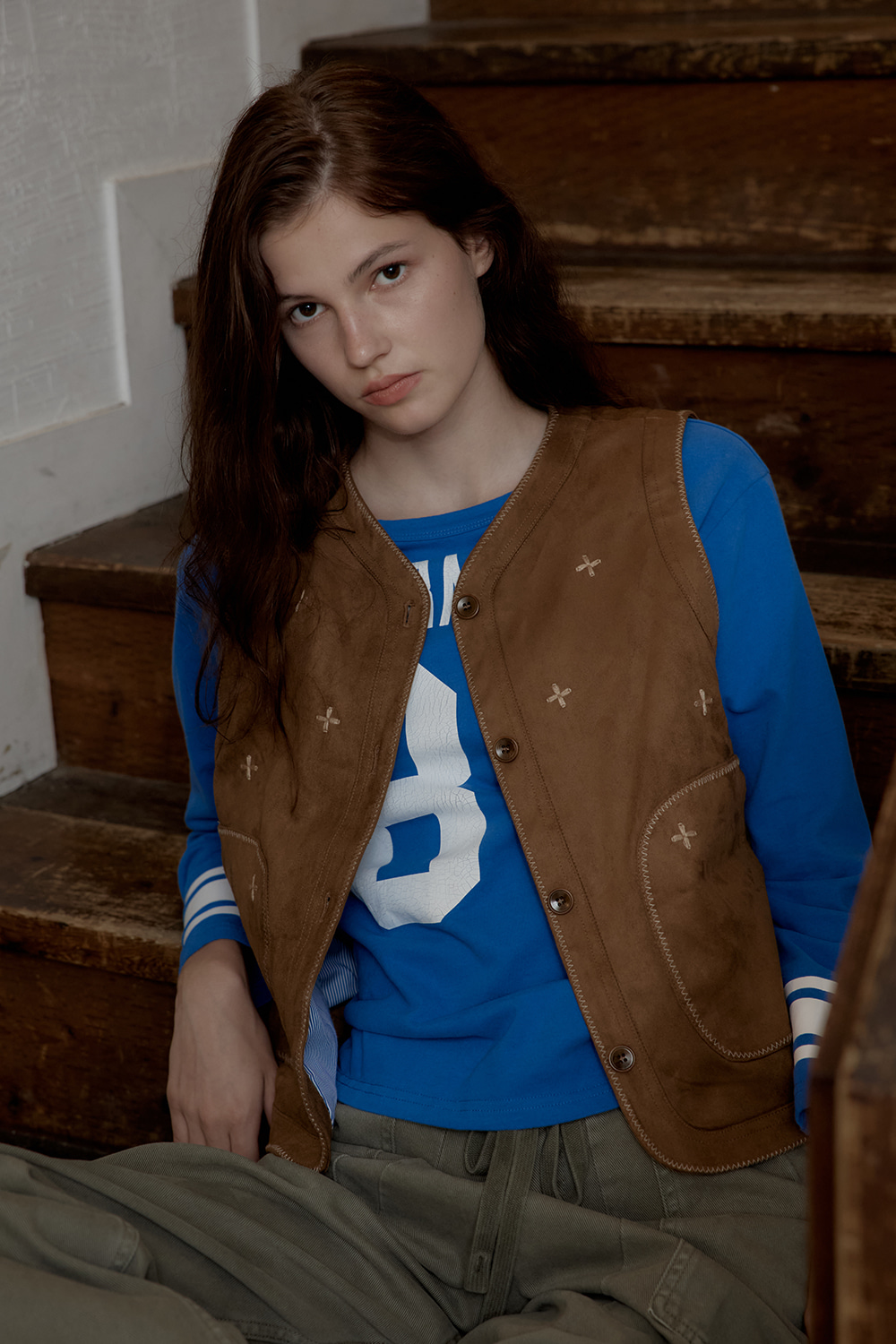 전면에 크랙 가공된 빅 프린트로 캐주얼한 무드를 더했습니다.