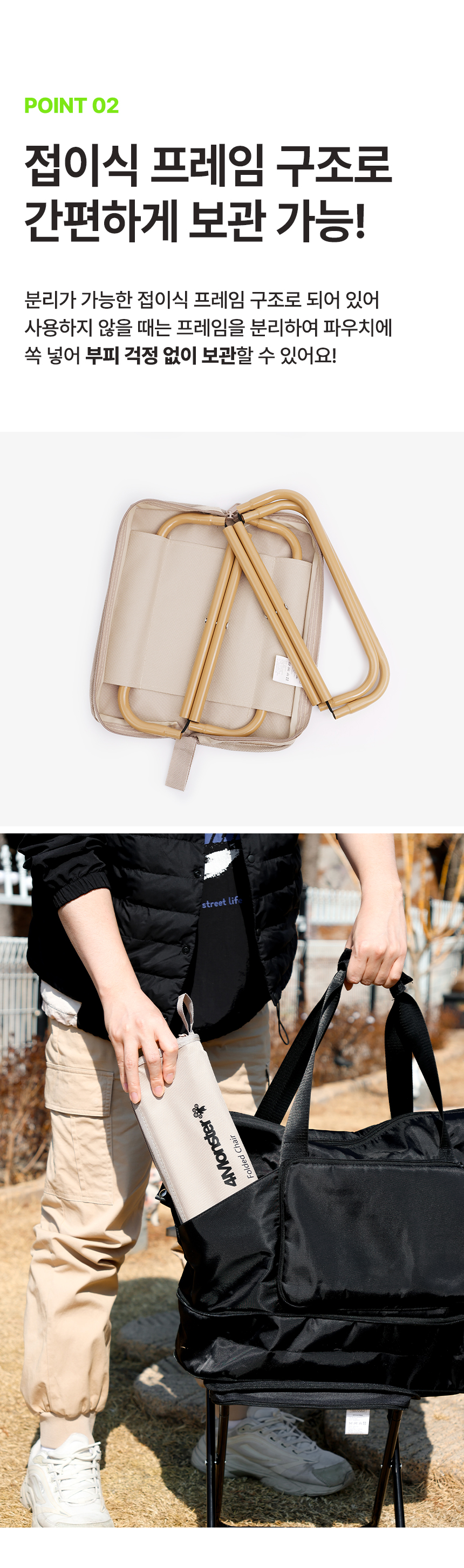 | 재질 | Oxford Fabric (Body), Zinc Alloy (Frame) / 옥스포드 원단 (바디), 아연 합금 (프레임) |