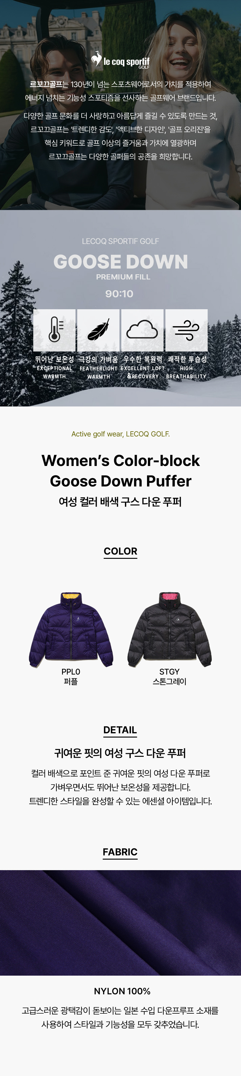 | 소재 | [PPL0]겉감:나일론(100),[PPL0]배색:폴리에스터(100),[PPL0]안감1:나일론(100),[PPL0]안감2:나일론(100),[PPL0]충전재:거위솜털(90)거위깃털(10),[STGY]겉감:나일론(100),[STGY]배색:폴리에스터(100),[STGY]안감1:나일론(100),[STGY]안감2:나일론(100),[STGY]충전재:거위솜털(90)거위깃털(10) (입고 시기에 따라 정보가 상이할 수 있어, 수령하신 상품의 라벨을 참고하시기 바랍니다.) |