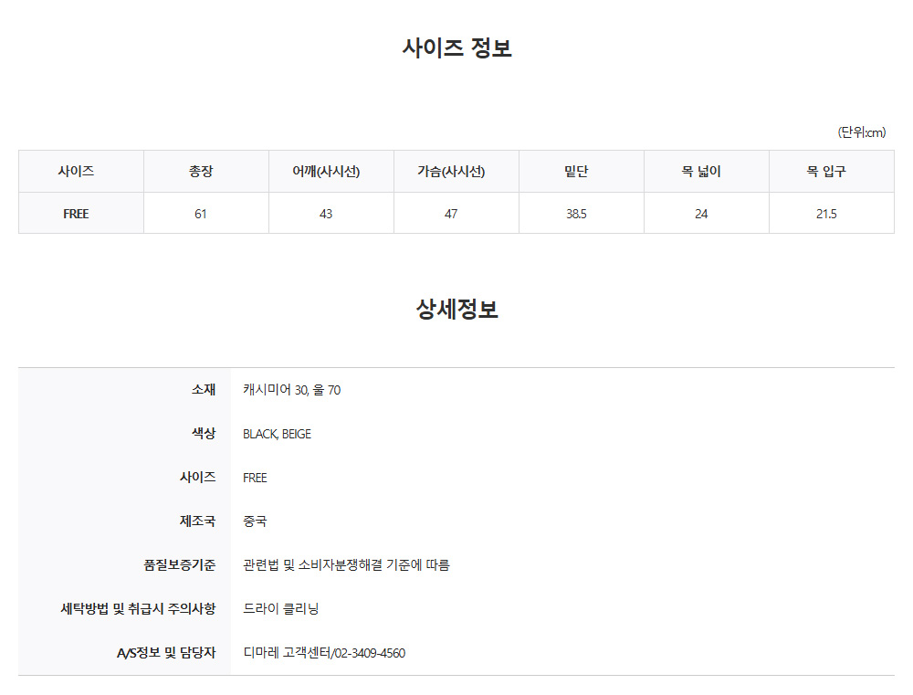 세탁방법 및 취급시 주의사항상품상세설명참조
