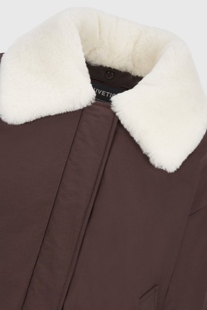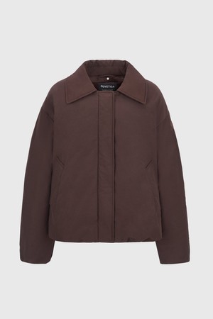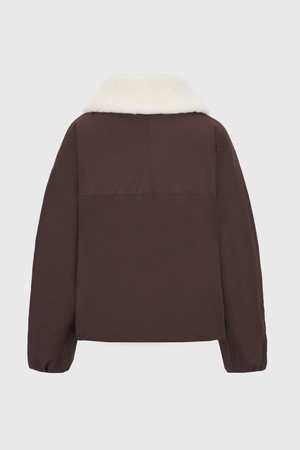- 크롭 기장의 무톤 디테일 카라넥 다운 자켓