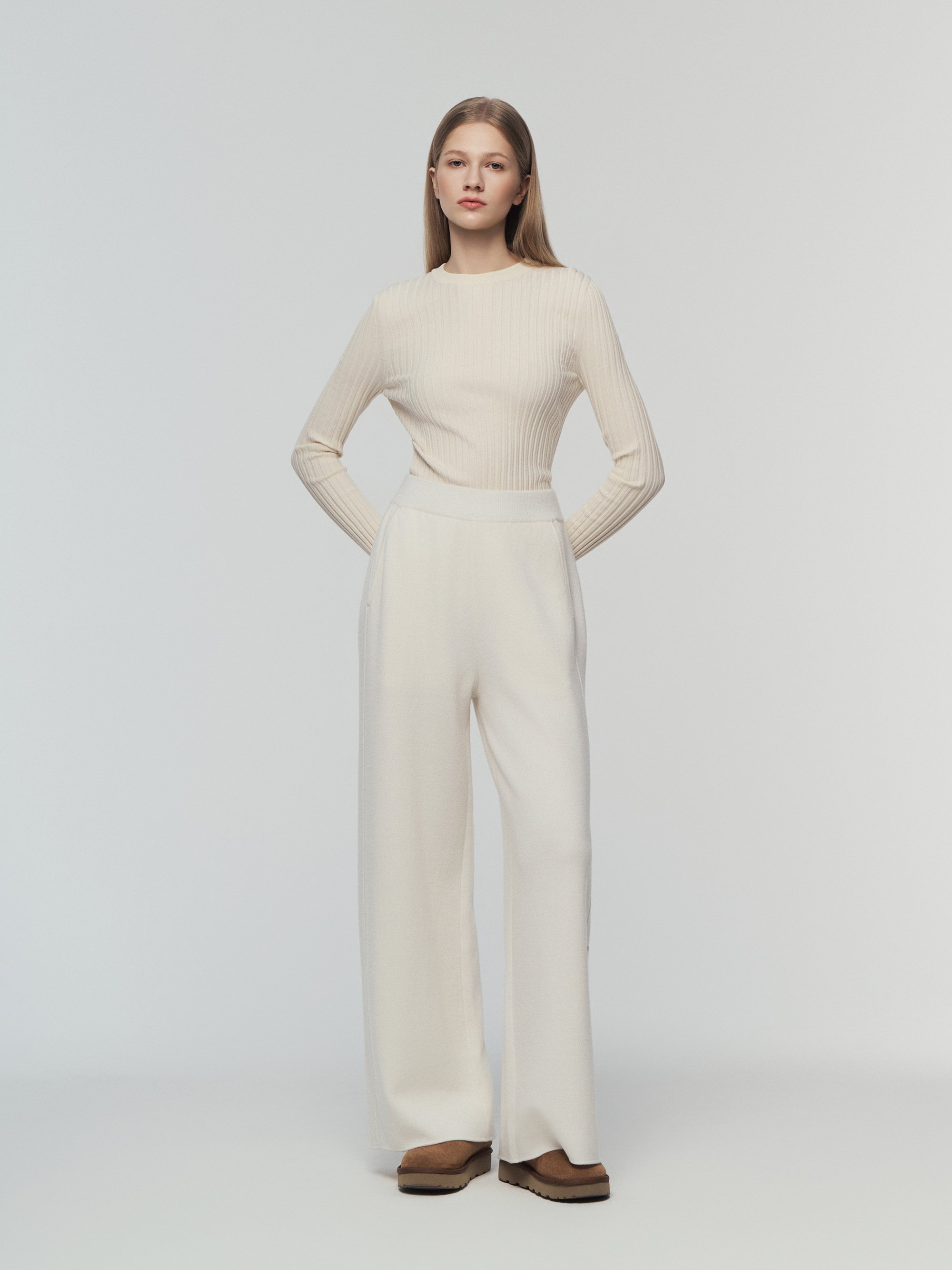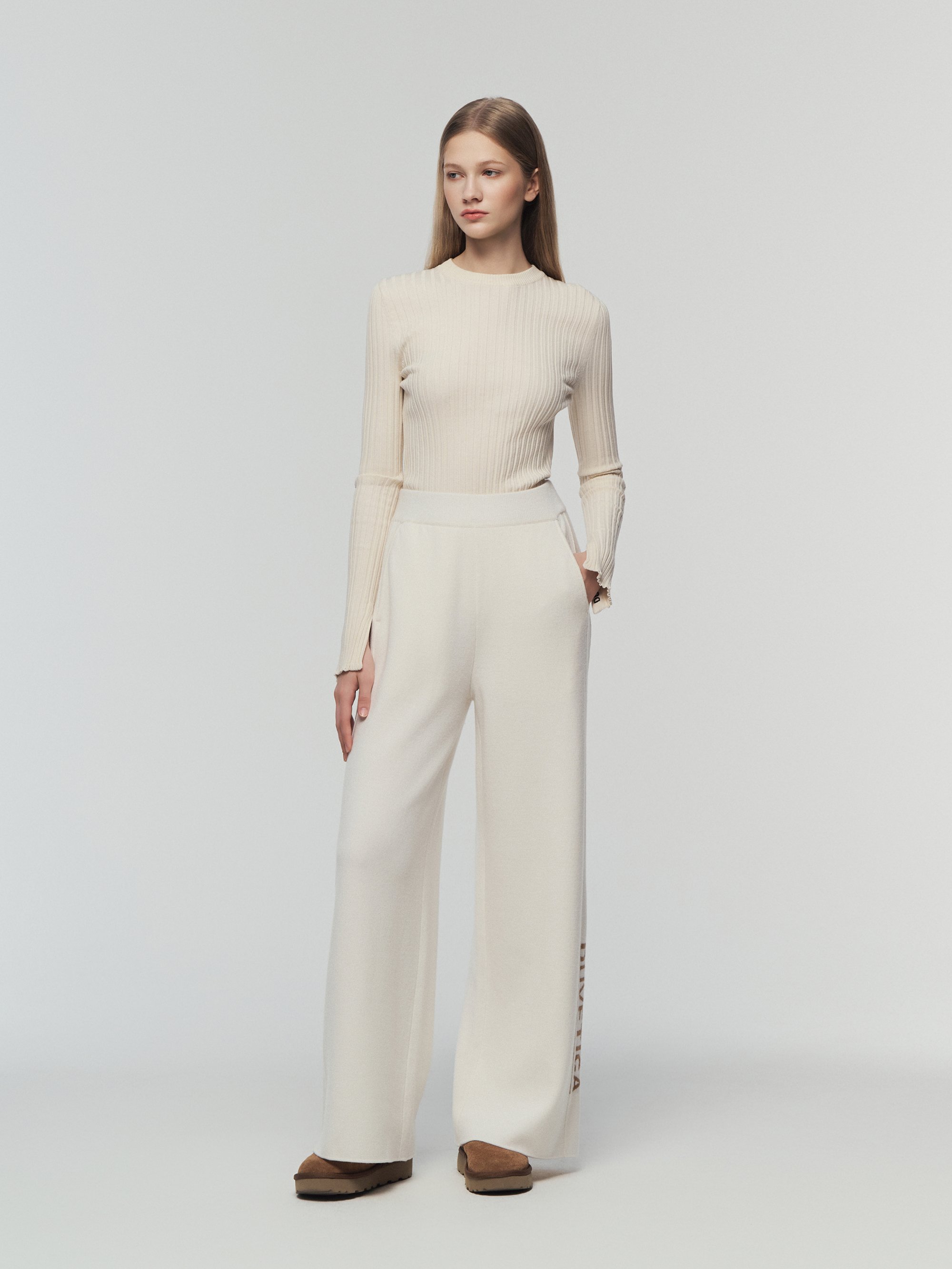 - 소프트한 터치감의 니트 소재로 제작된 와이드 팬츠