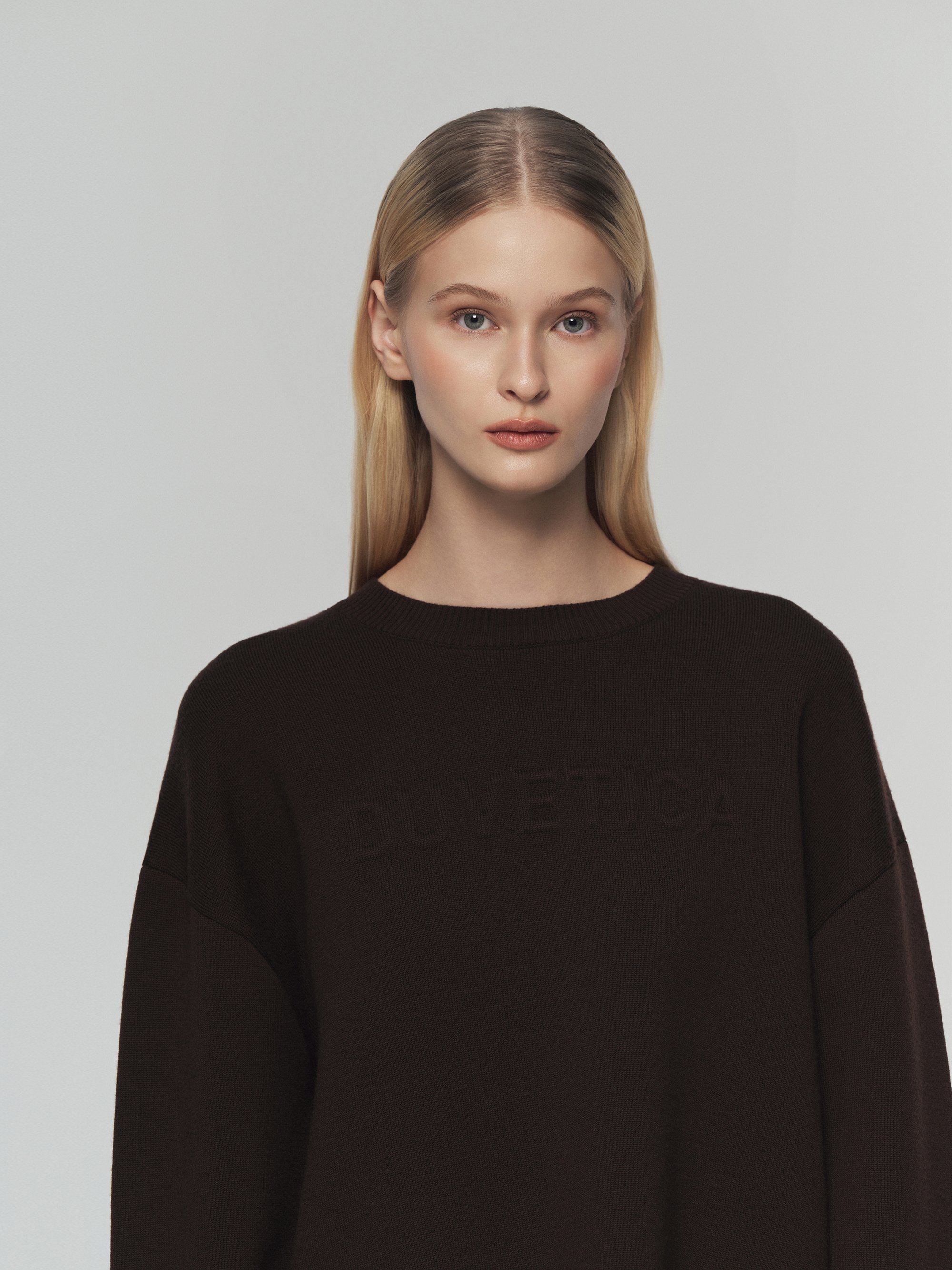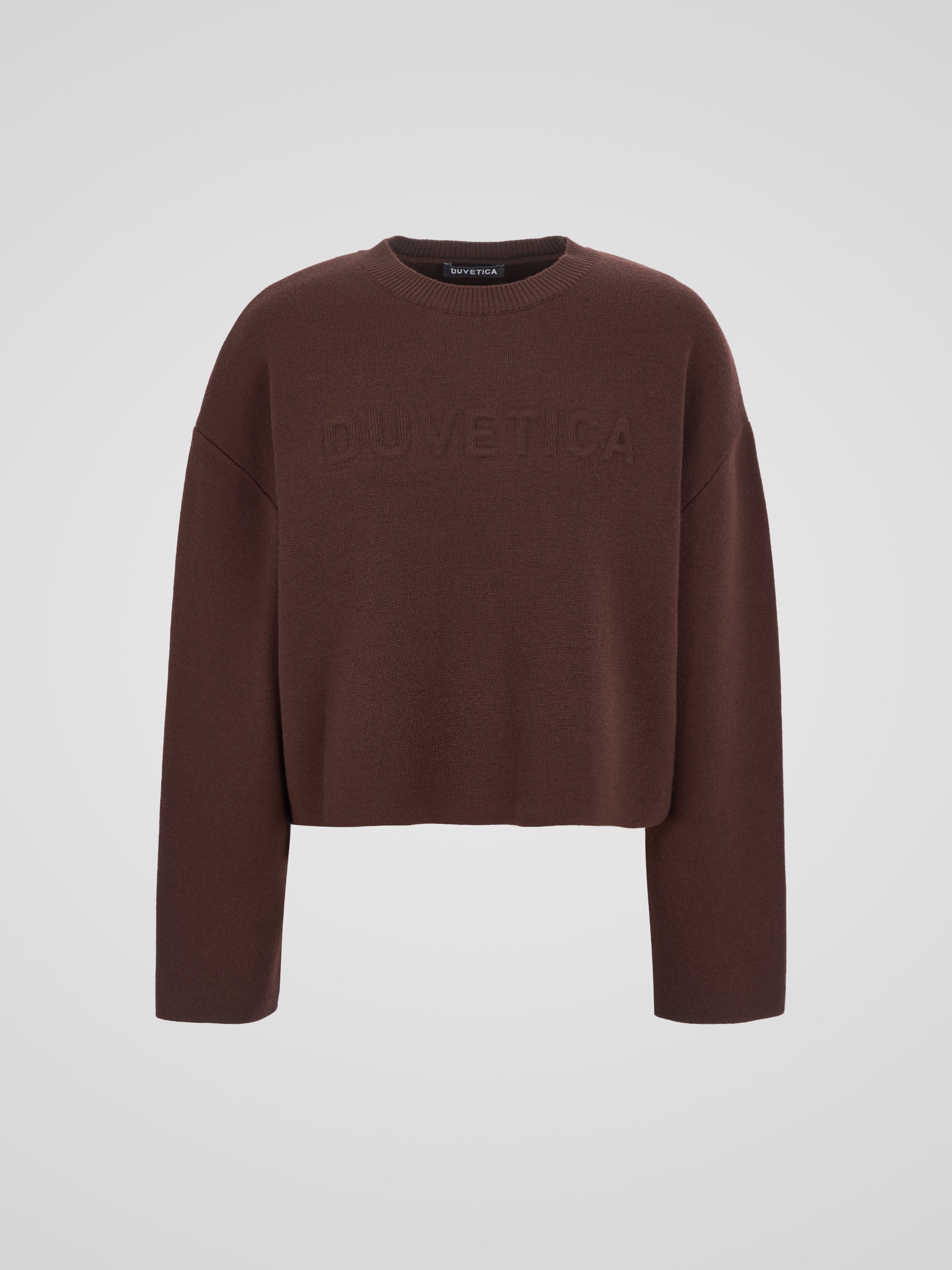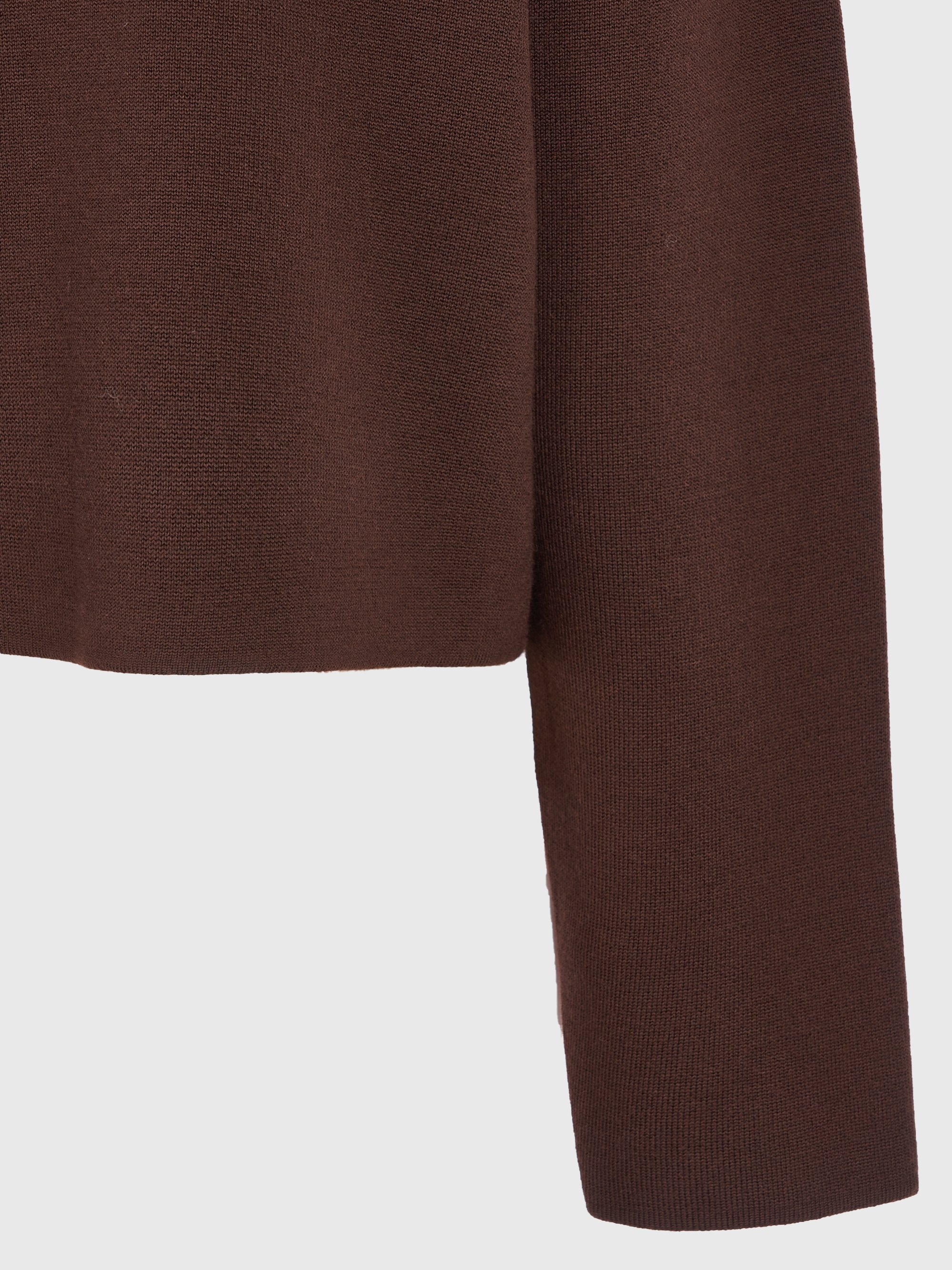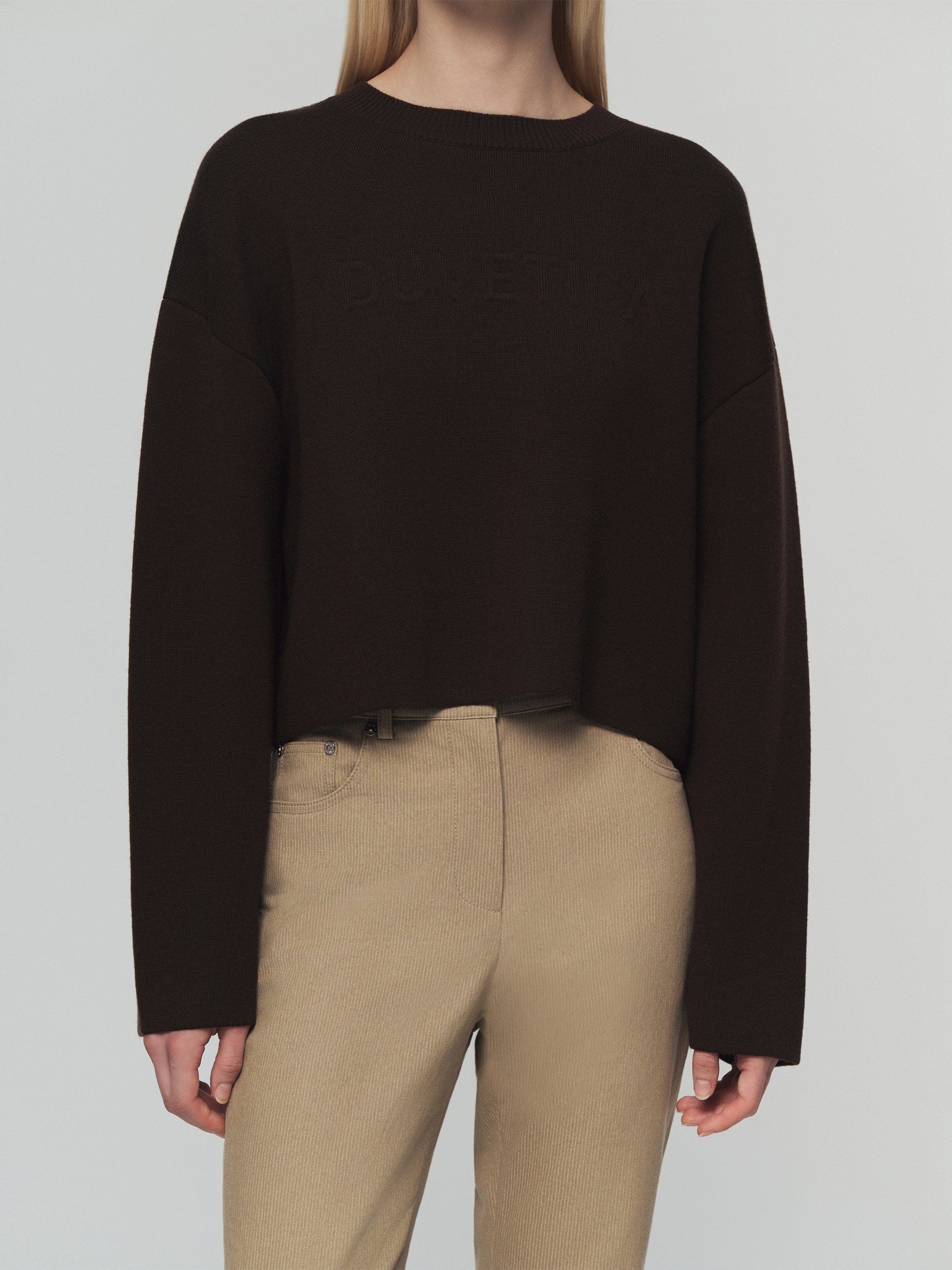 - 포근한 터치감의 울 혼용 니트 소재의 세미오버핏 크롭 니트