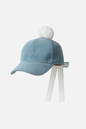 테크스킨 여성 퍼 리본 코듀로이 골프모자 스카이블루