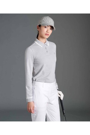 여성 기모 칼라 포인트 긴소매 티셔츠 - 라이트 그레이(BJ5X41A372)