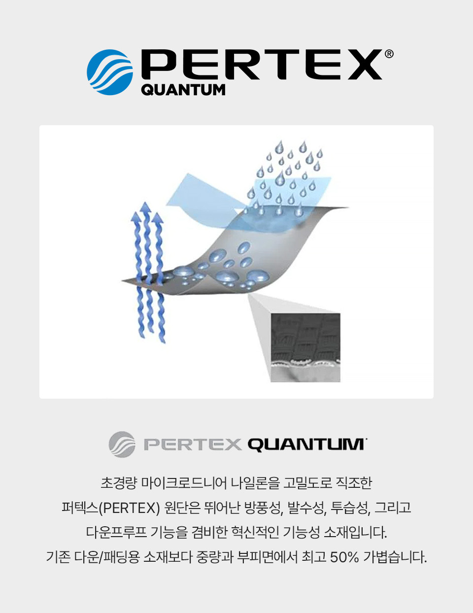 퍼텍스 원단을 사용하여 착용감이 가볍고 부드러운 제품입니다.
