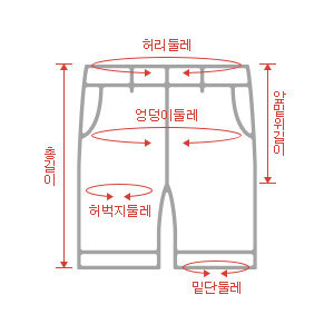 1.허리둘레: 허리단을 일자로 세팅하여 측정한 둘레