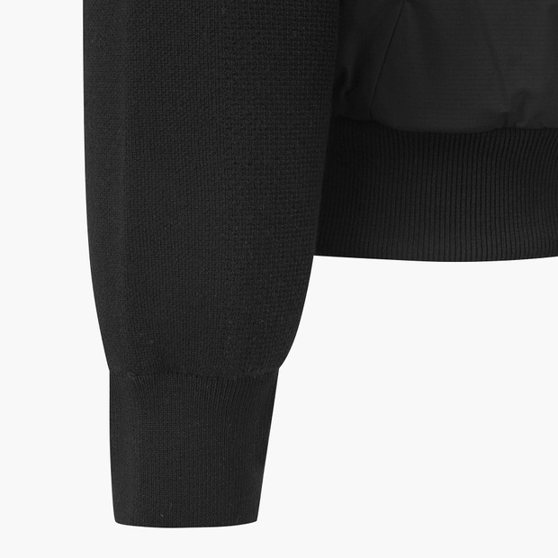 소매와 등판 어깨 부분의 니트 조직감이 포인트이며,