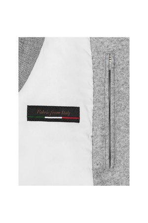 이태리 수입의 캐시미어 울 저지 소재로 제작된 베스트입니다. 은은하고 고급스러운 컬러와 부드러운 촉감이 특징입니다. 저지 원단으로 신축성이 좋으며 충전재를 사용하여 보온성도 높였습니다. 독특하며 고급스러운 울 니트 립 소재로 포인트를 더했습니다.