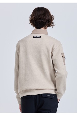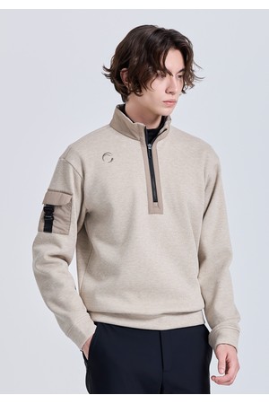 남성 밍크본딩 우븐믹스 반집업 긴팔 티셔츠 베이지
