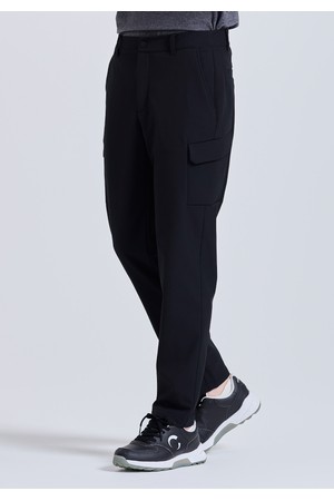 남성 테이퍼드 핏 기모 본딩 카고 팬츠 블랙