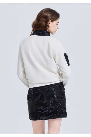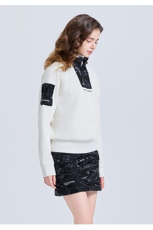 여성 카모 하이넥 반집업 기모 긴팔 티셔츠 크림
