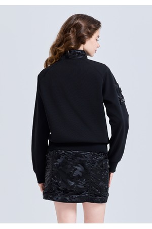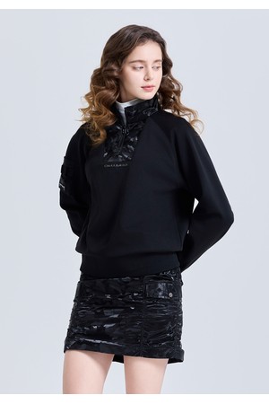 여성 카모 하이넥 반집업 기모 긴팔 티셔츠 블랙