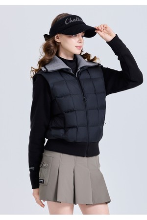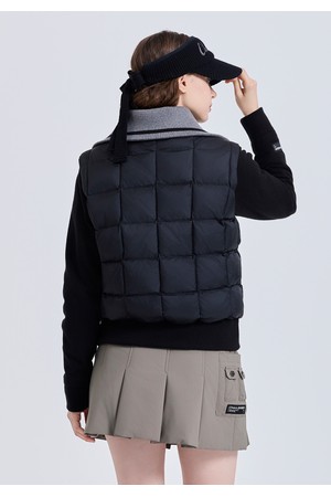 구스다운 충전재가 선사하는 가벼운 보온감, 니트 소매와 브루종 실루엣이 레이어드한 듯한 감각적인 룩을 완성합니다.