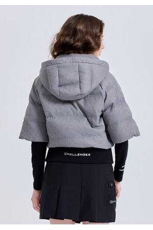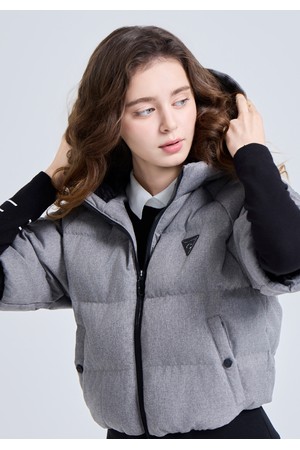 여성 후드 탈부착 멜란지 반팔 다운 자켓 그레이