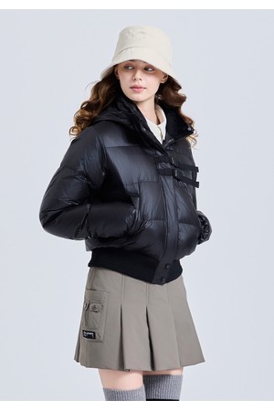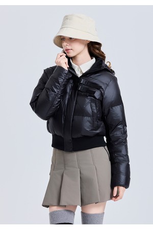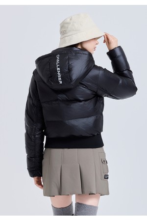 여성 후드 탈부착 글로시 푸퍼 패딩 자켓 블랙