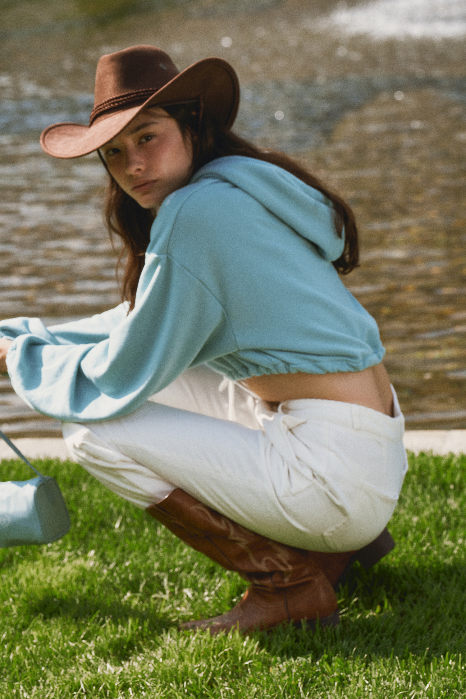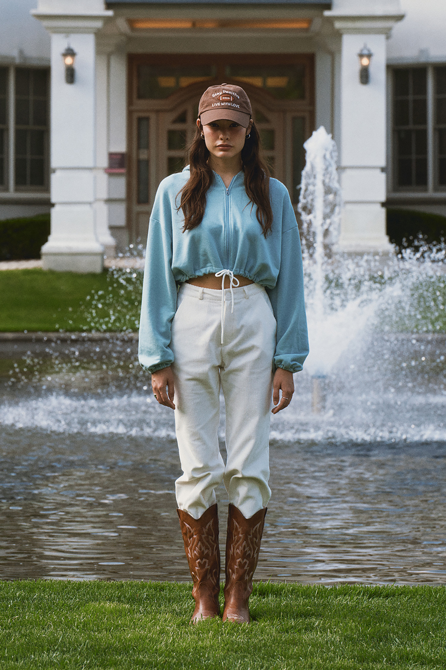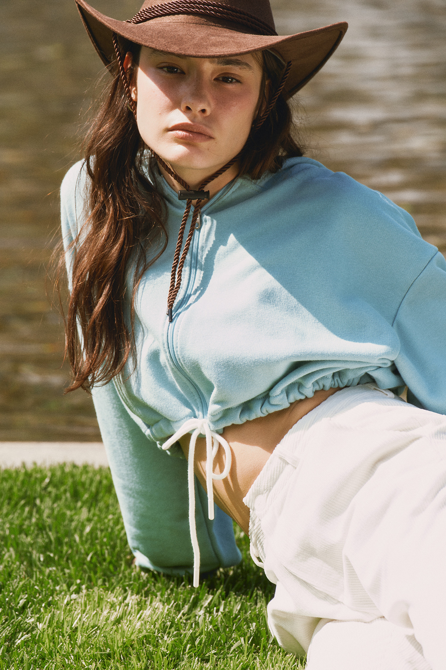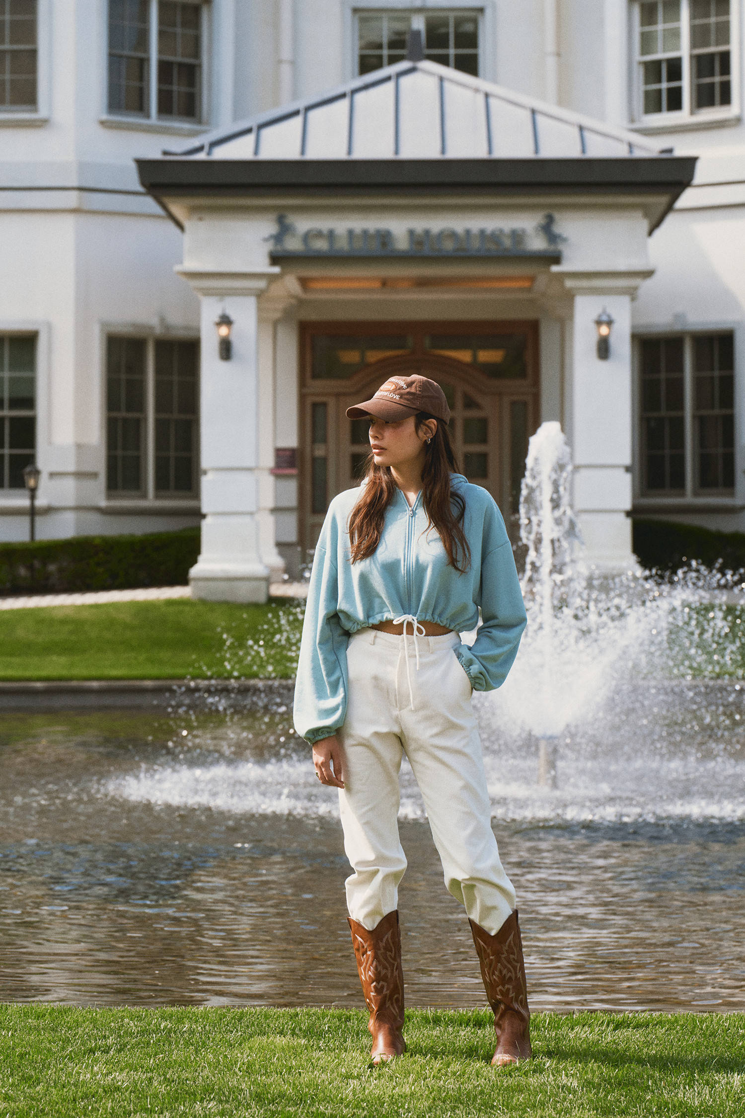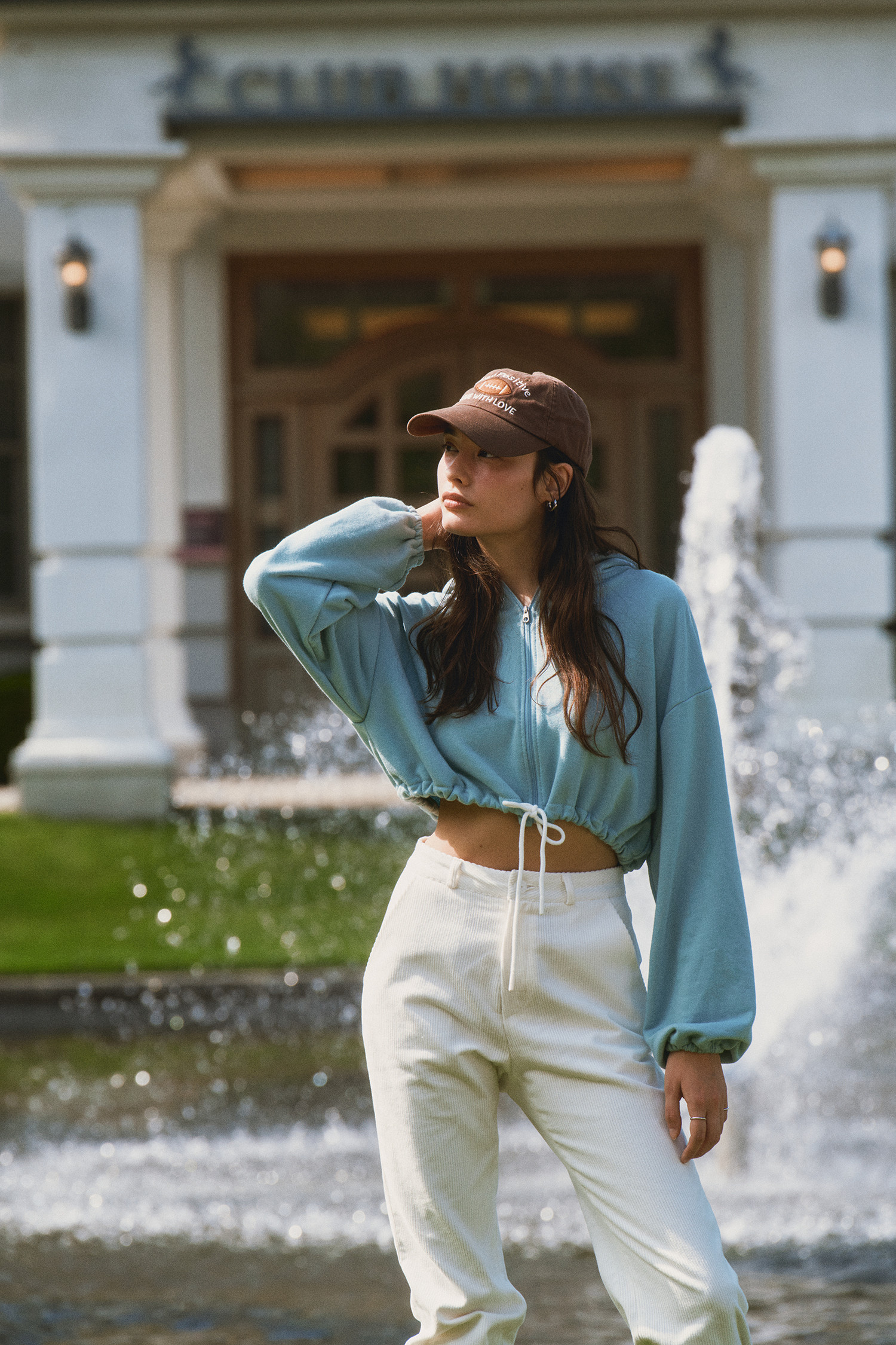 경쾌한 세미 크롭 기장으로 트렌디한 실루엣 연출