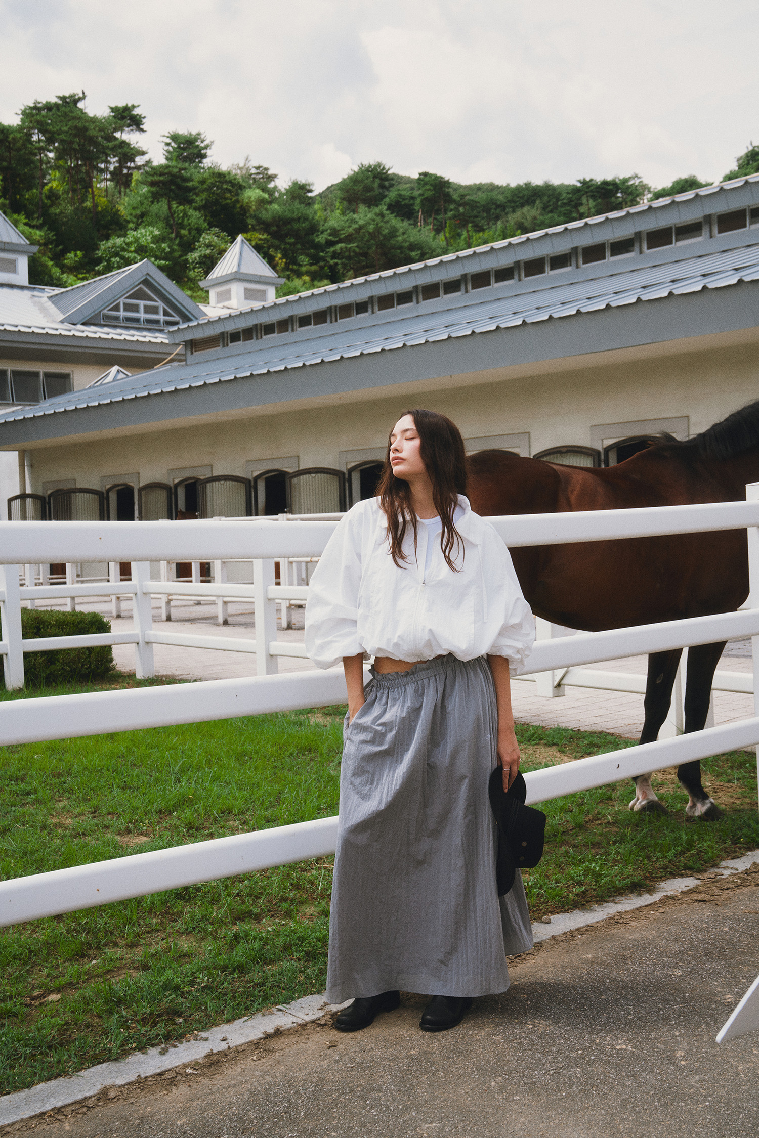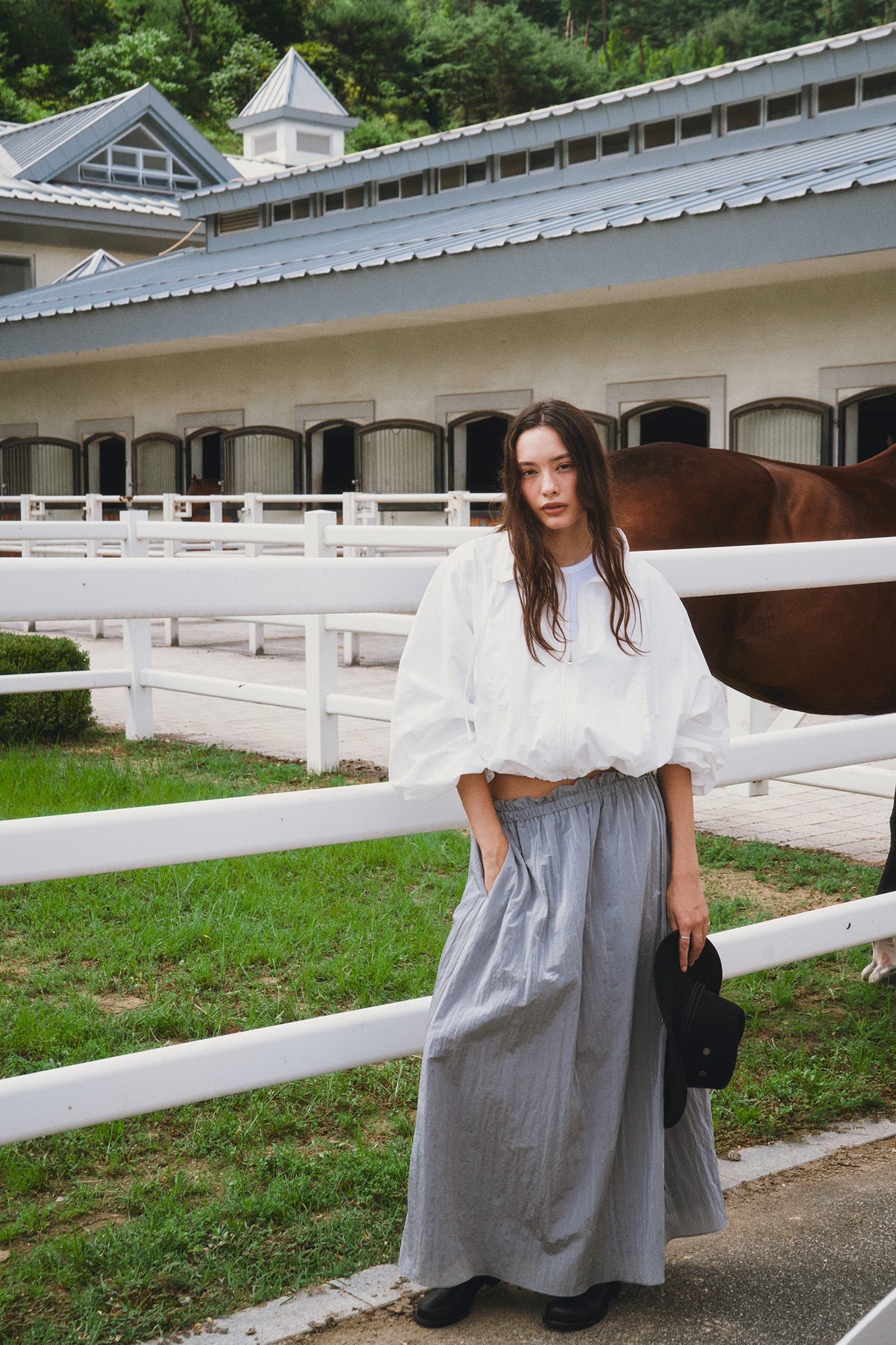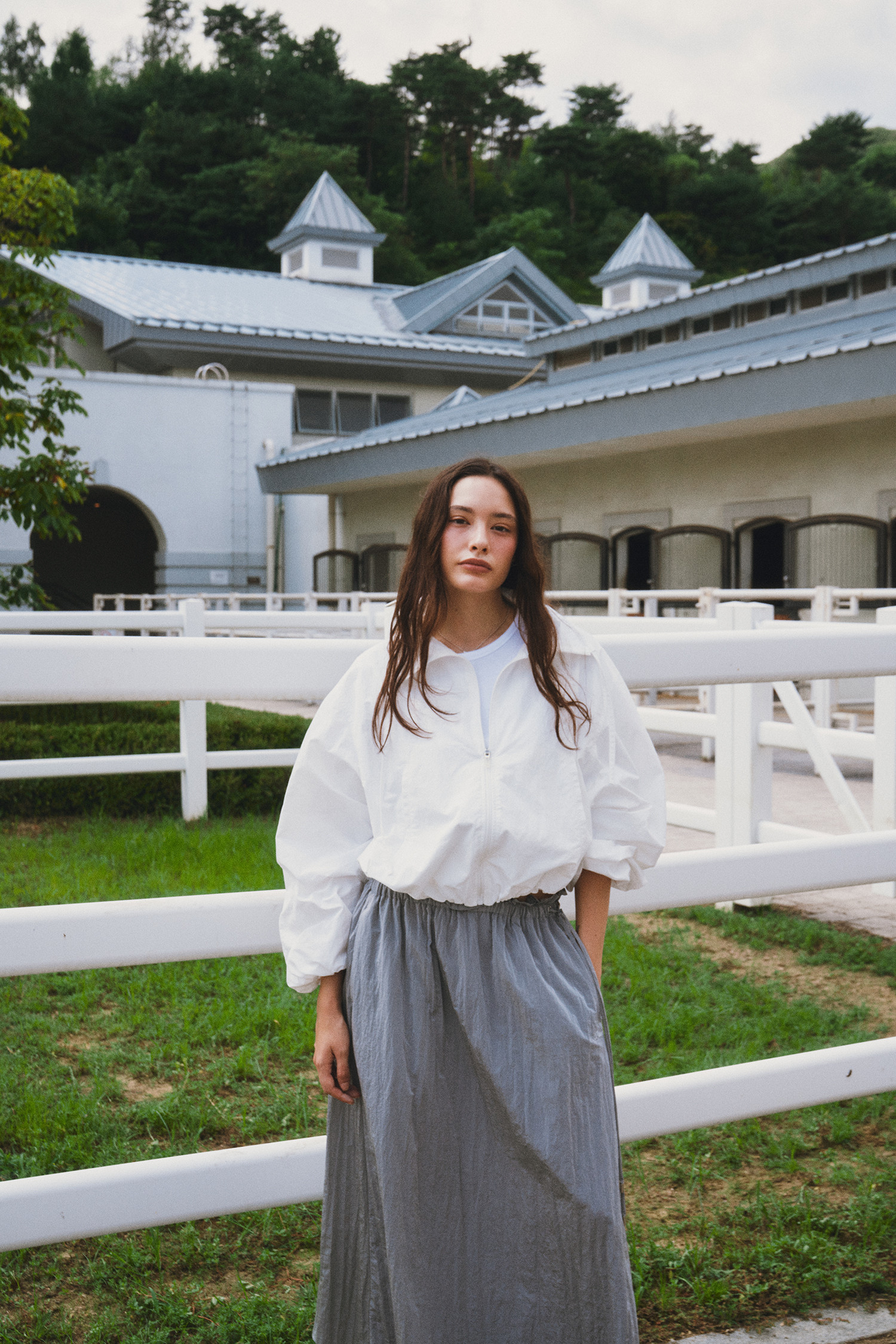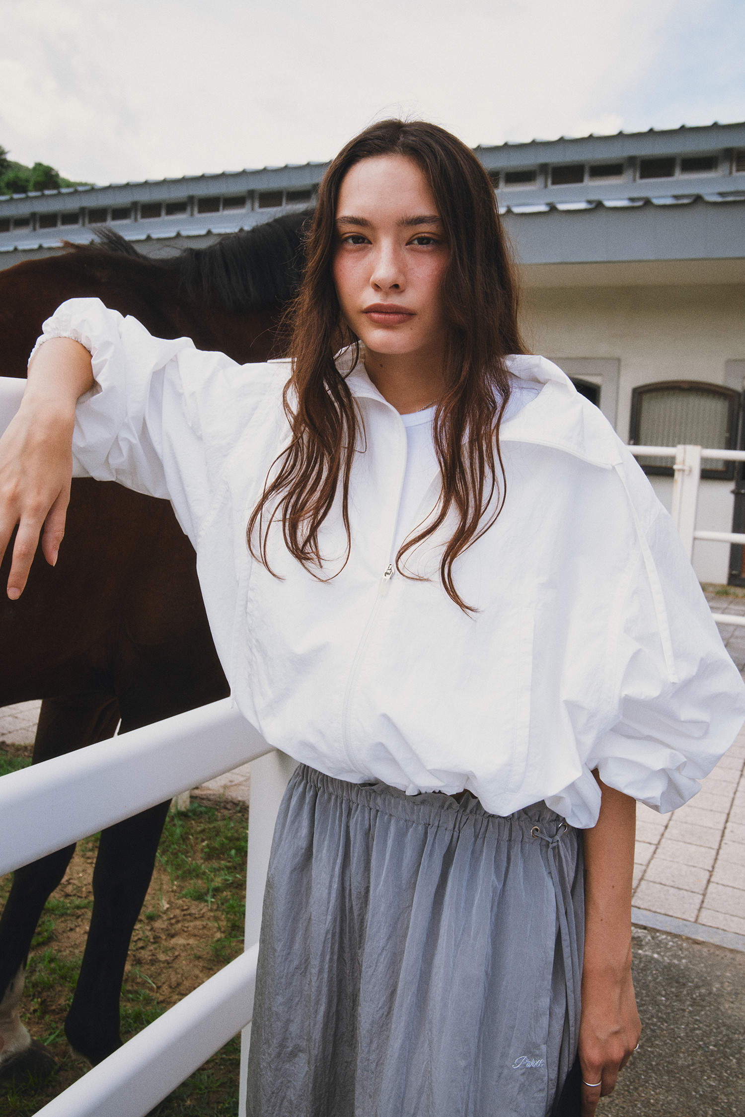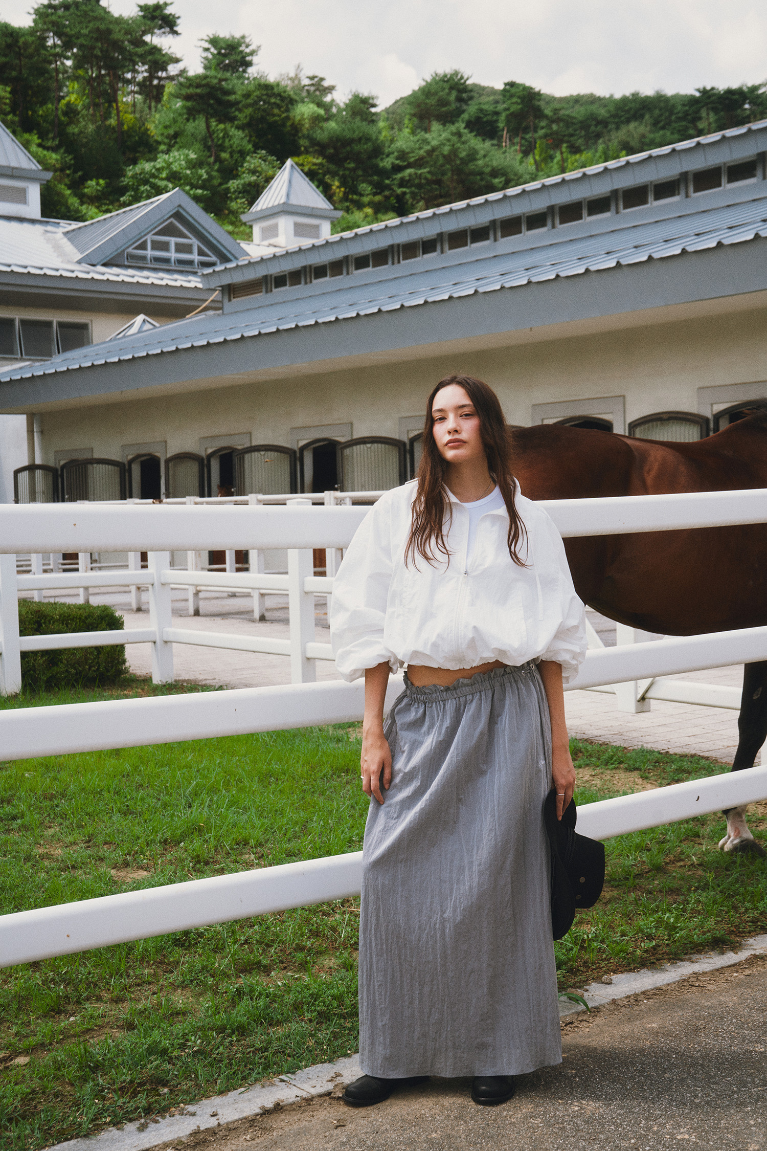 나일론 소재로 바스락거리는 터치감이 매력적인 롱 스커트