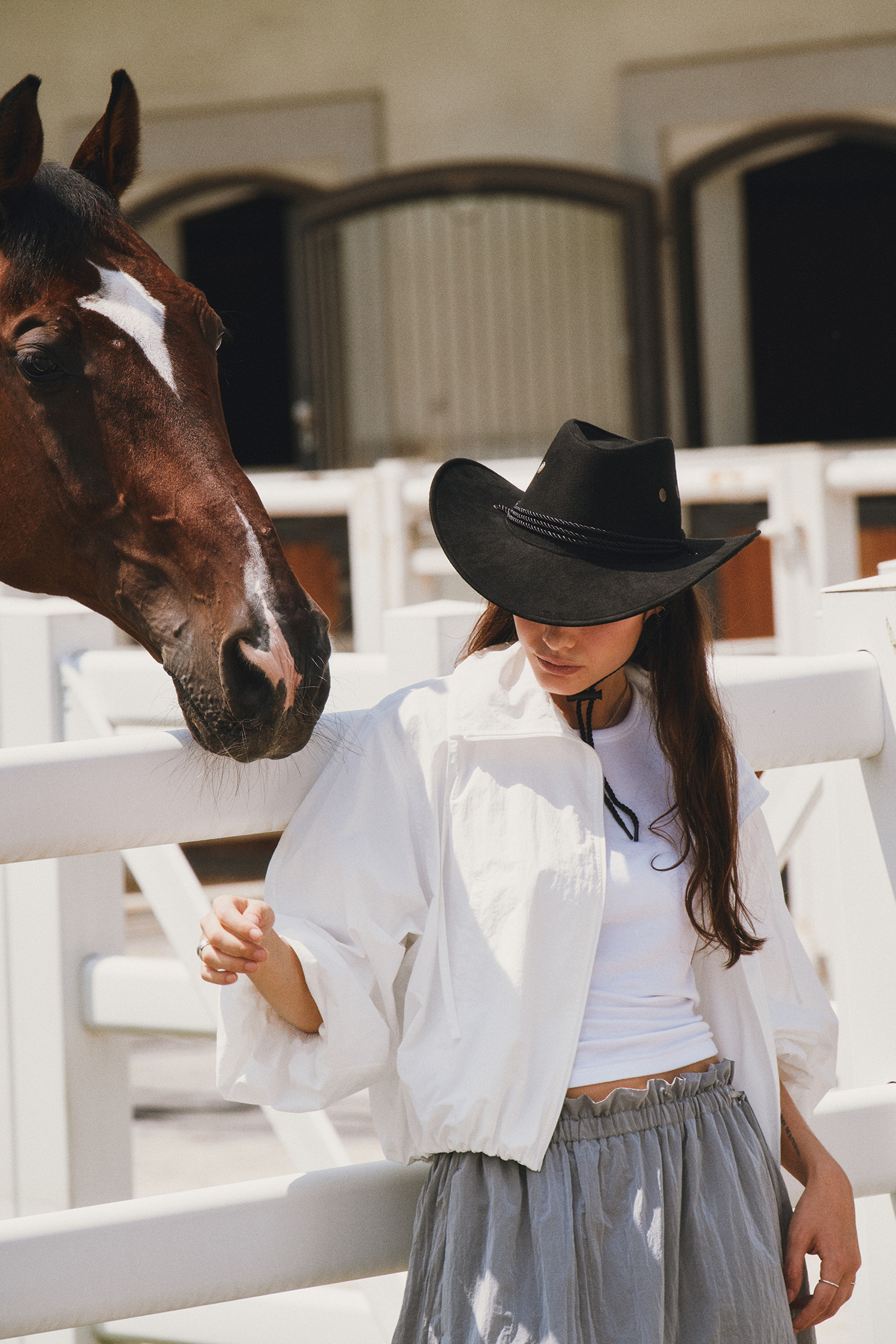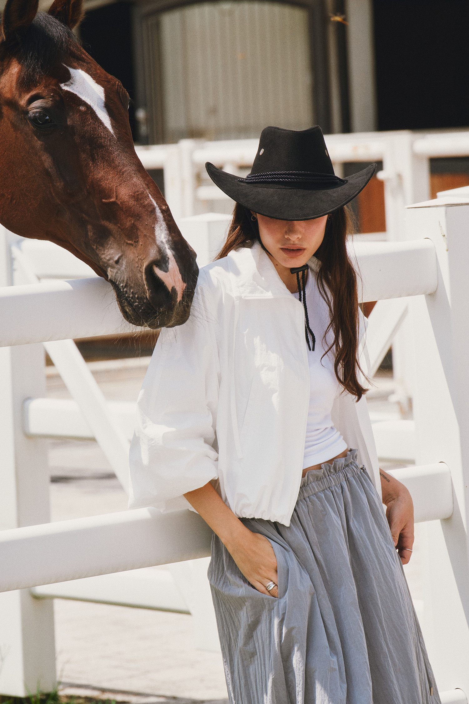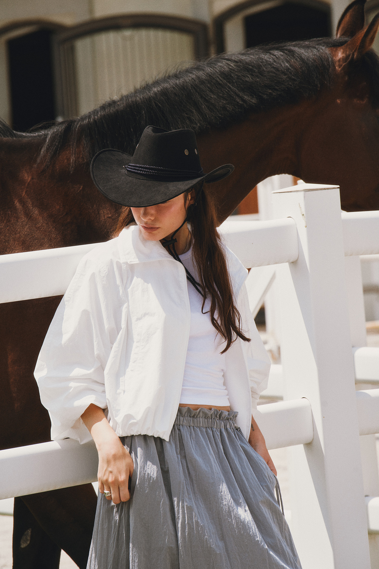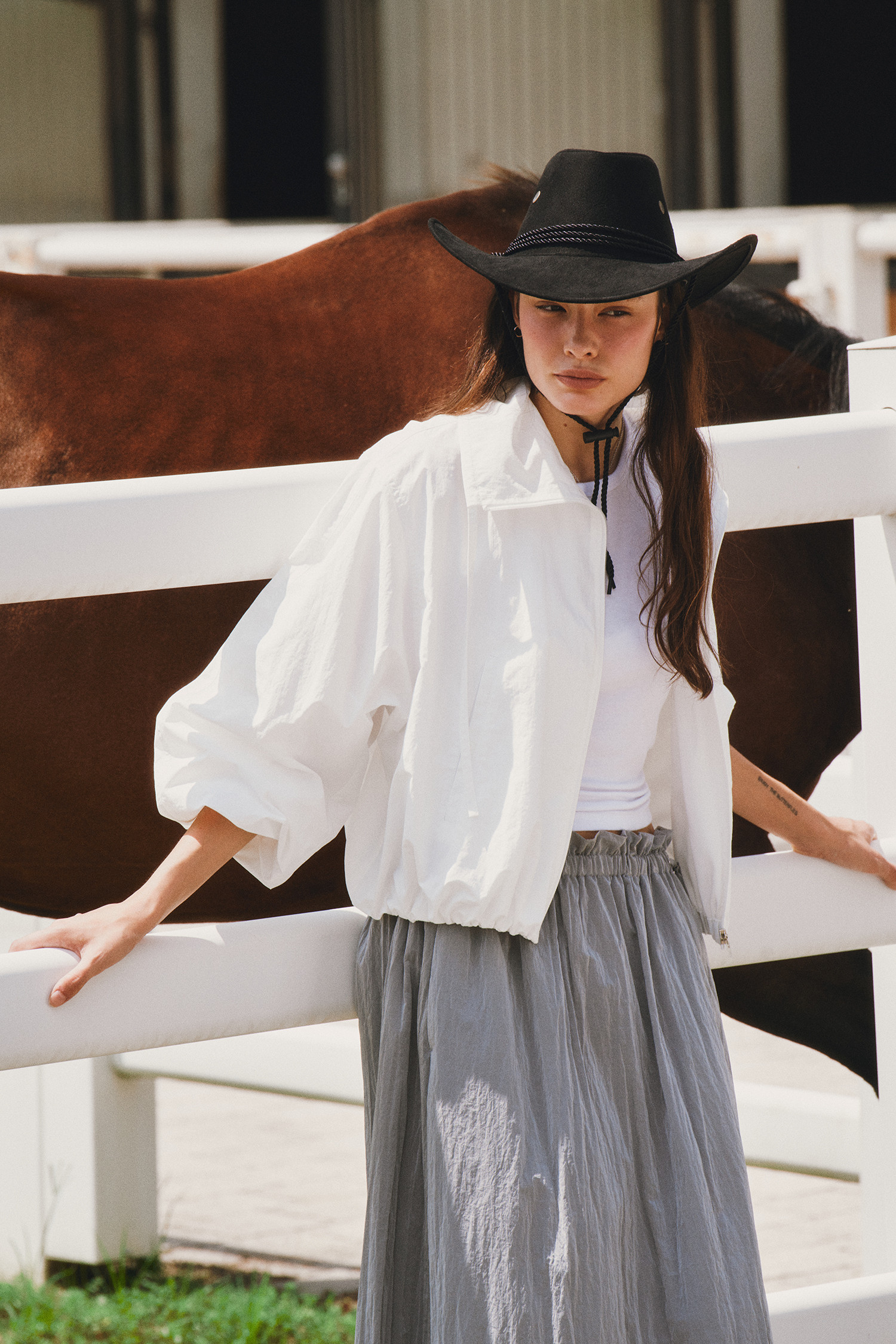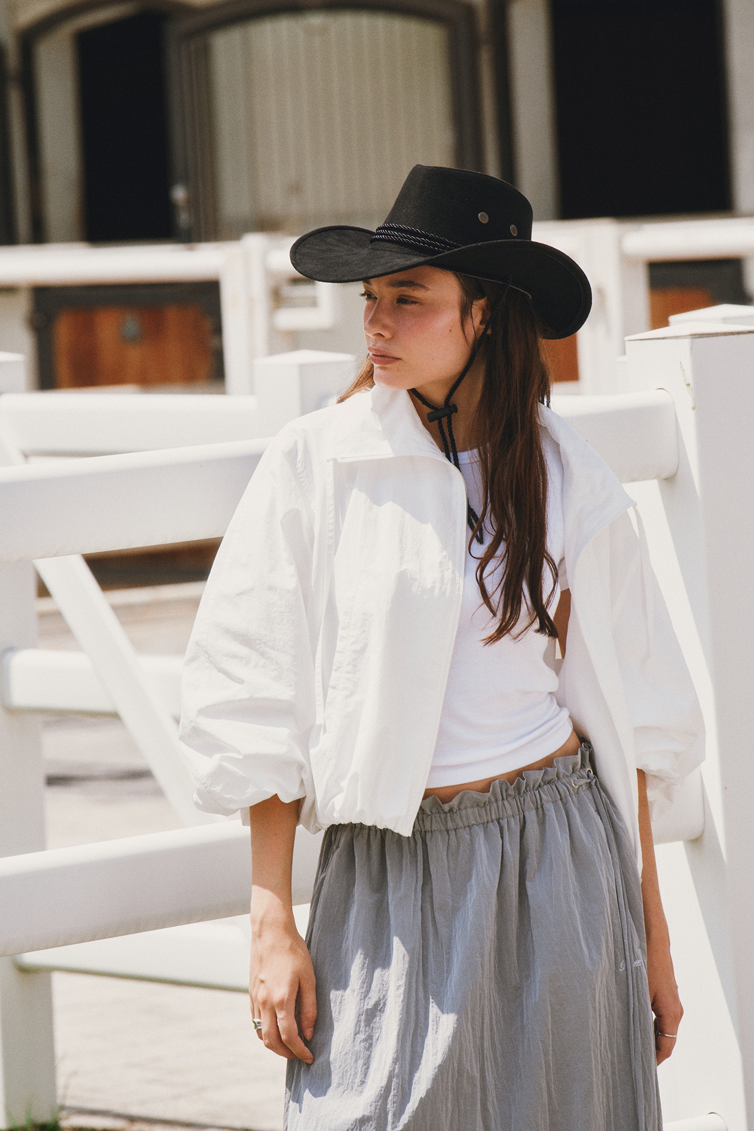 나일론 소재로 바스락거리는 터치감이 매력적인 롱 스커트