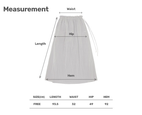 치수 | <MEASUREMENT> F LENGTH 93.5CM WAIST 32CM HIP 49CM HEM 92CM |