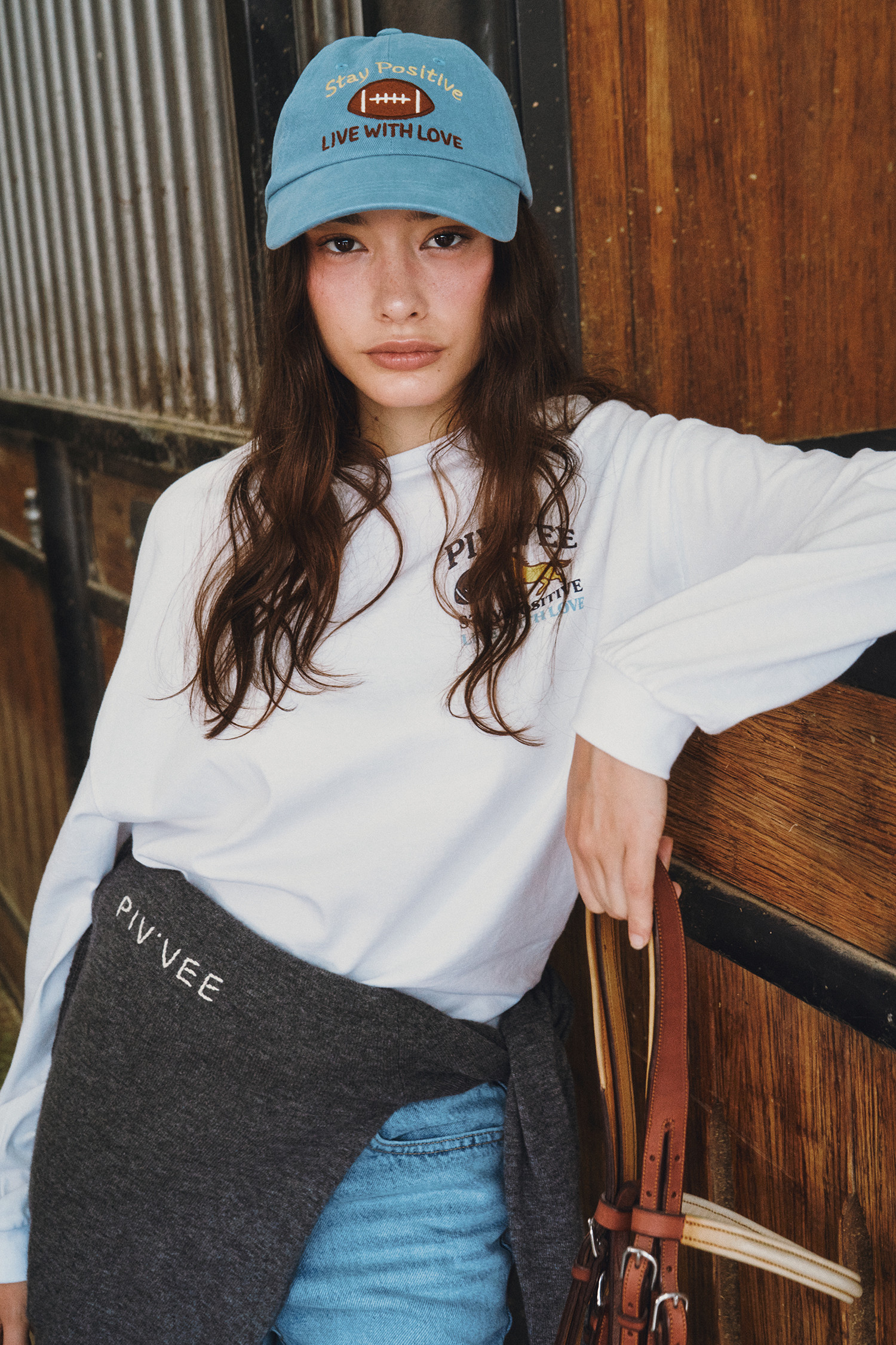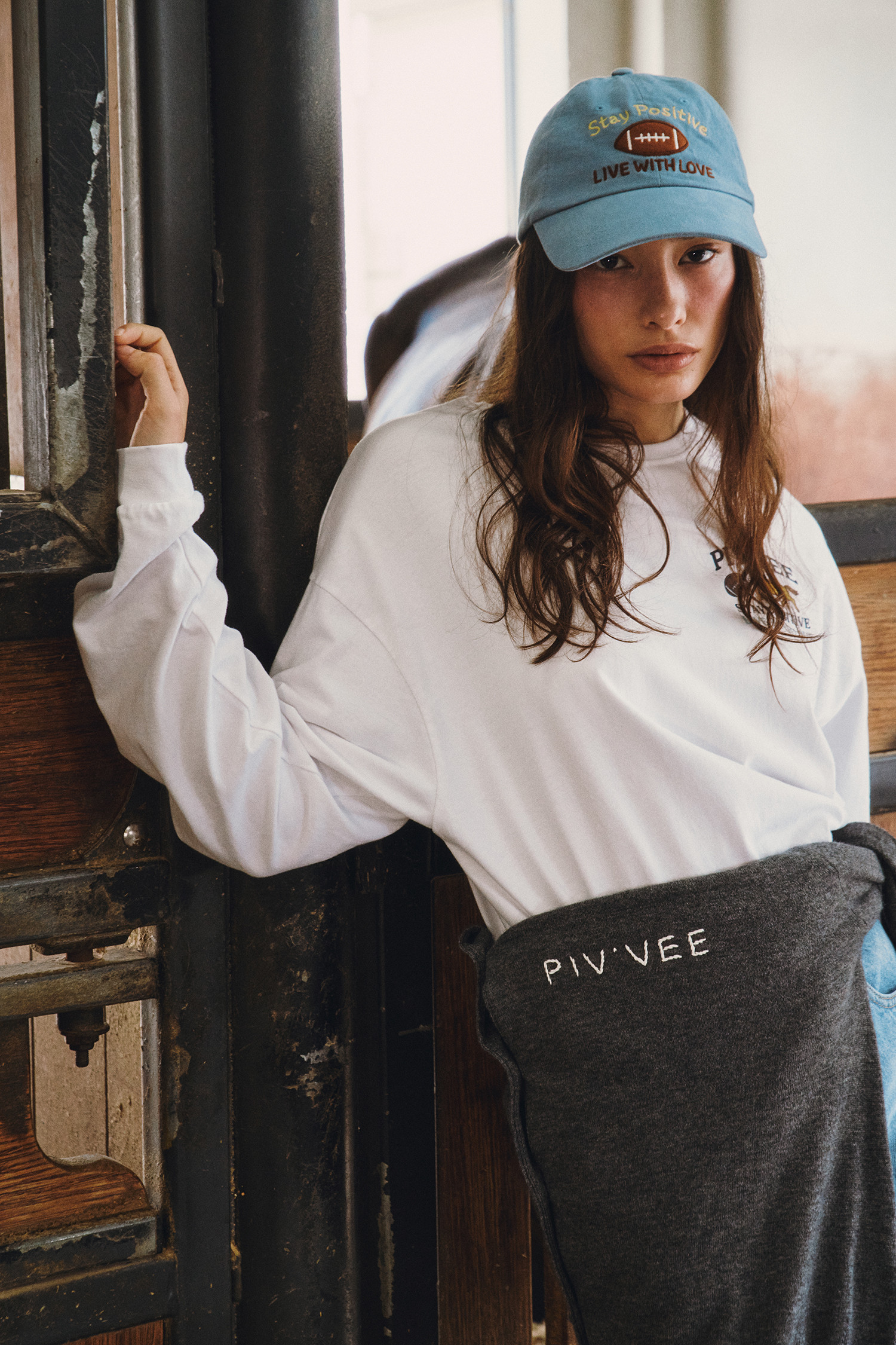 전면 피브비 레터링 로고 자수와 럭비볼 패치 자수 그래픽 포인트