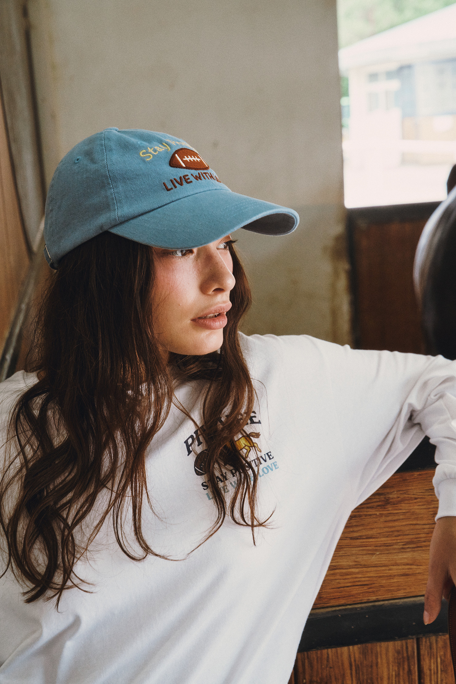 전면 피브비 레터링 로고 자수와 럭비볼 패치 자수 그래픽 포인트