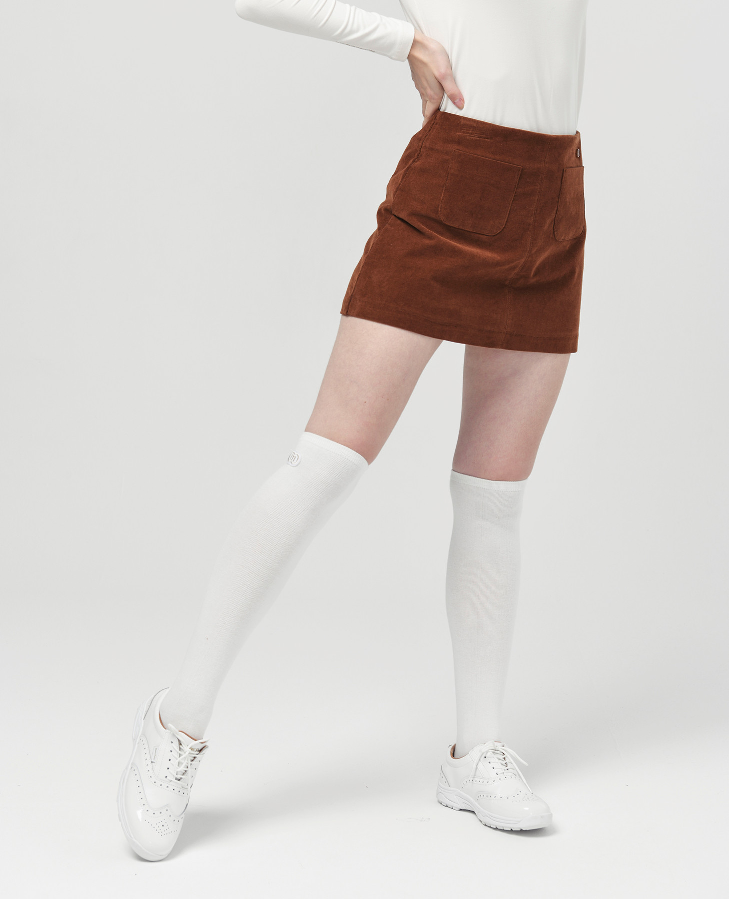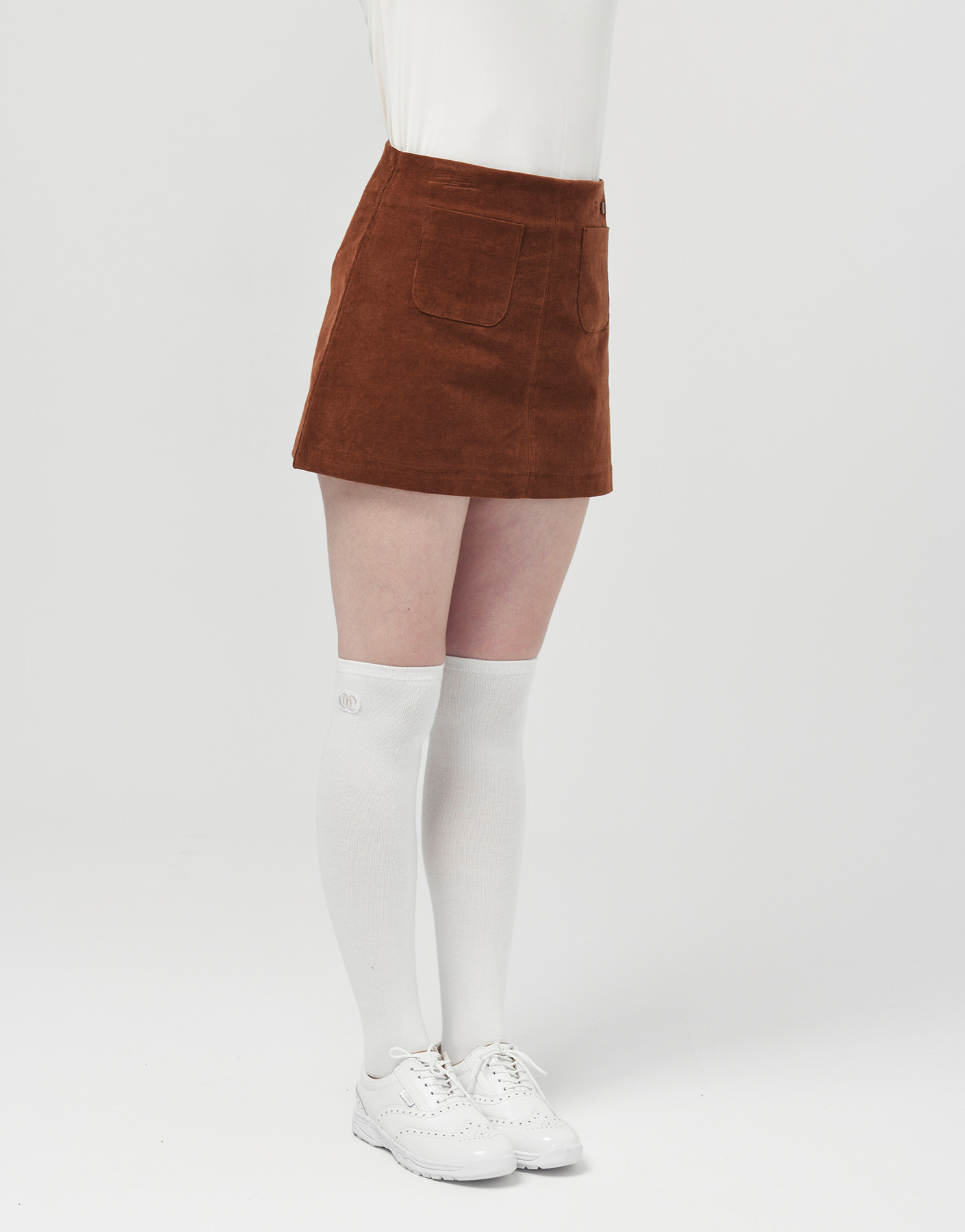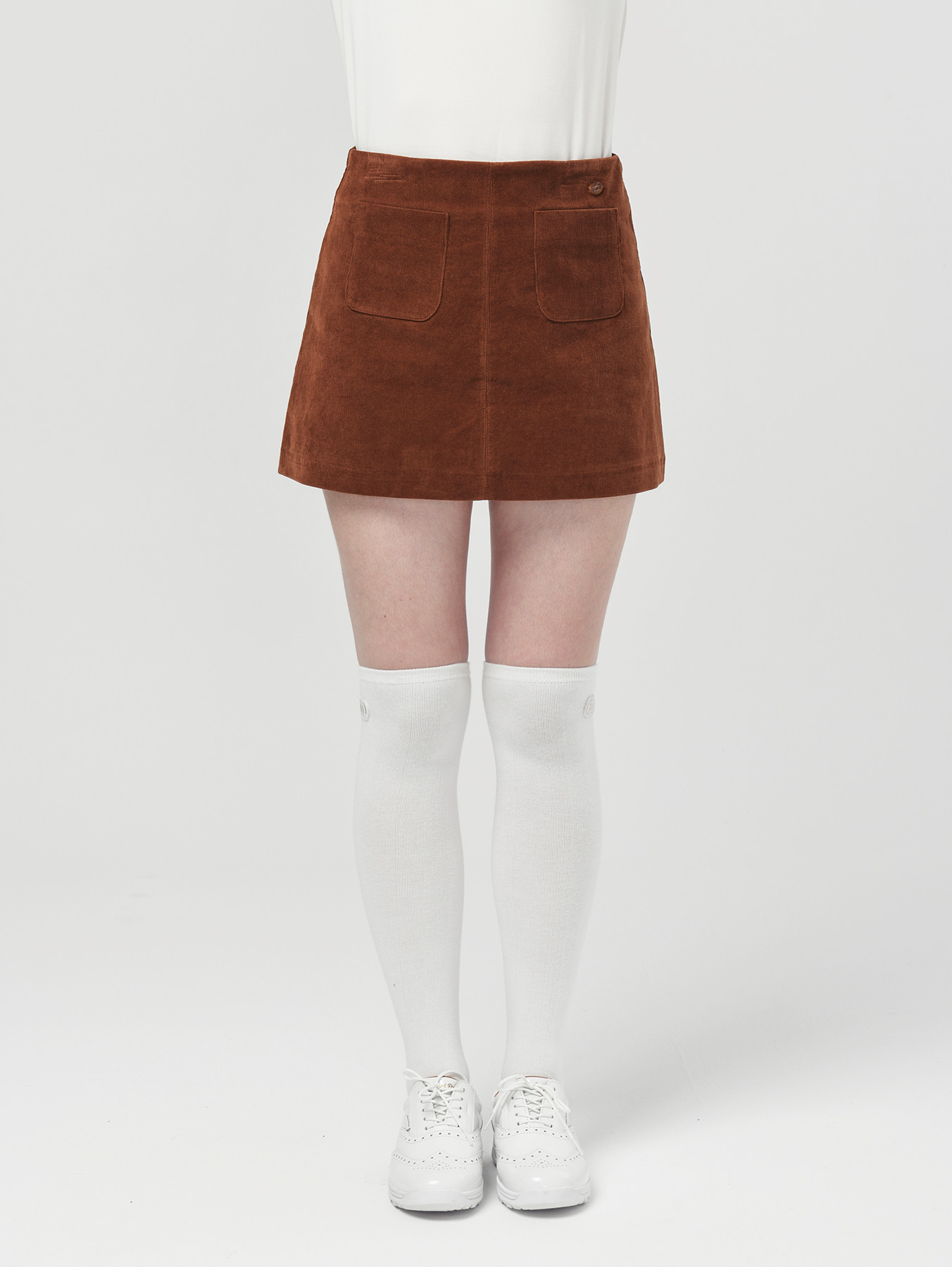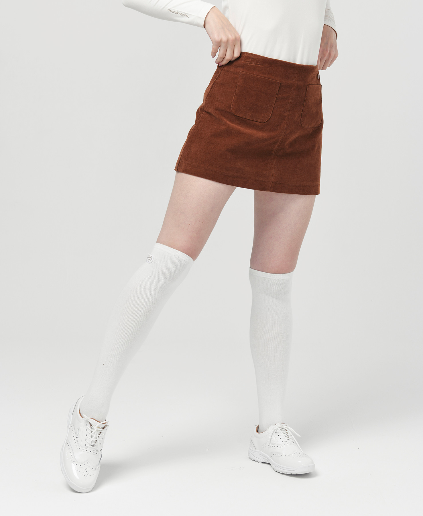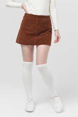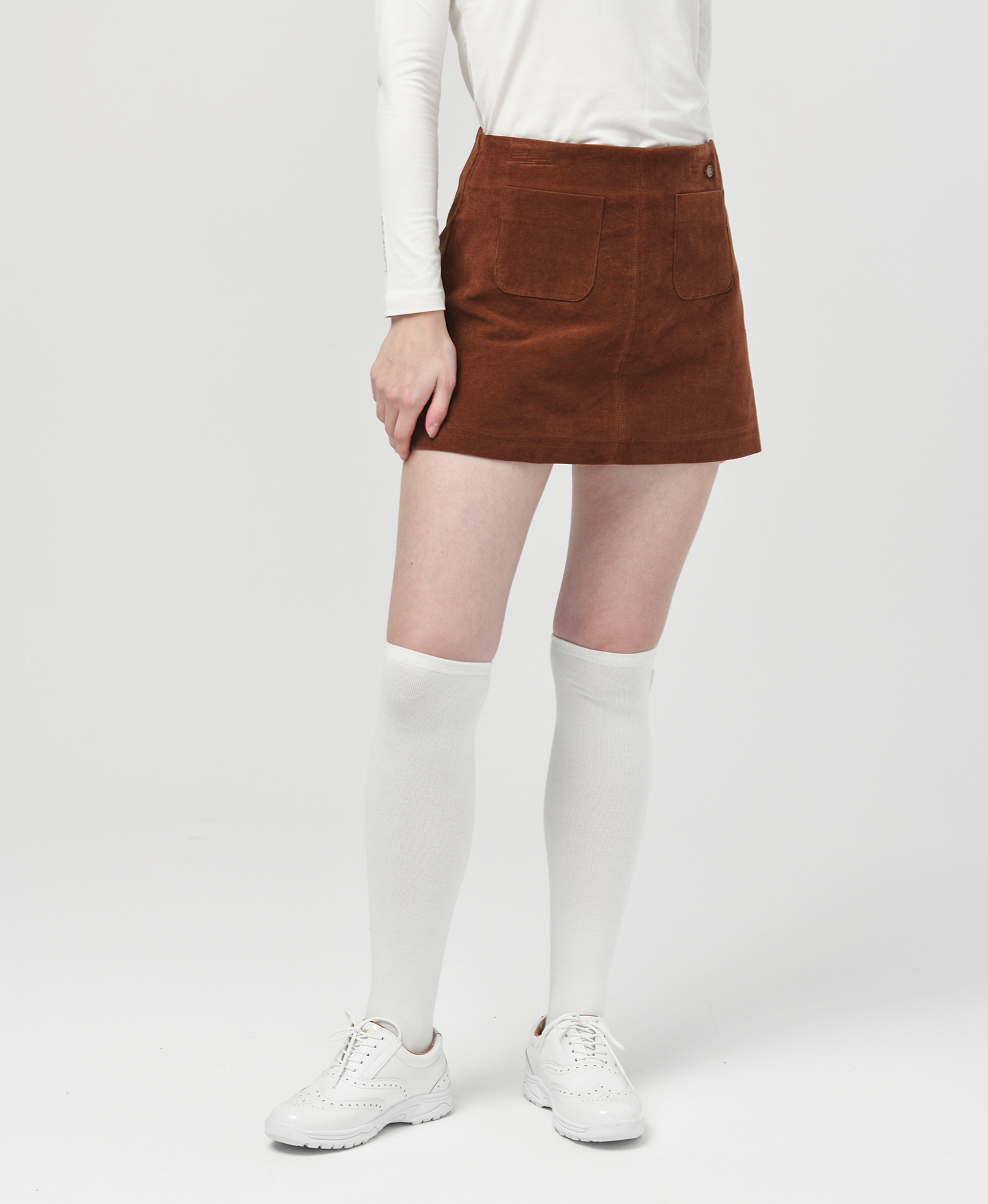 코듀로이 면 스판 코치 포켓 A-라인 브릭 브라운 스커트형 반바지
