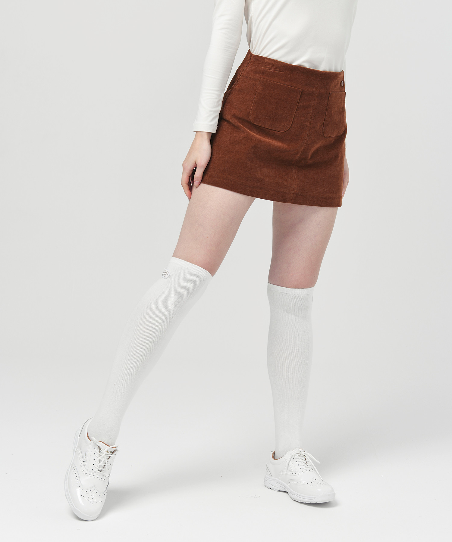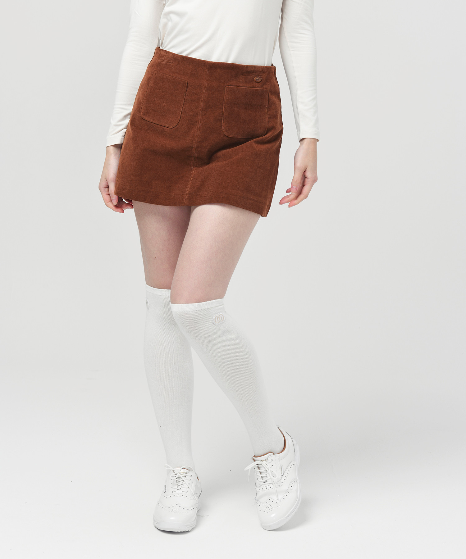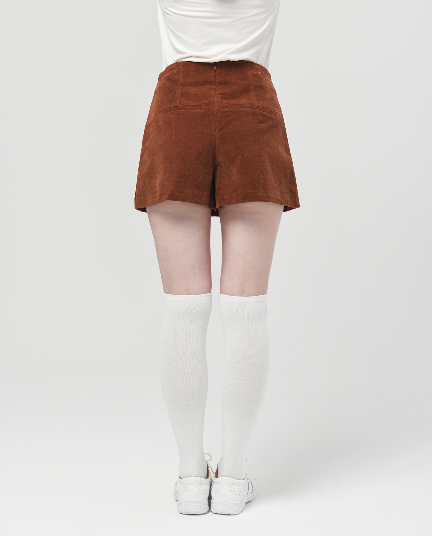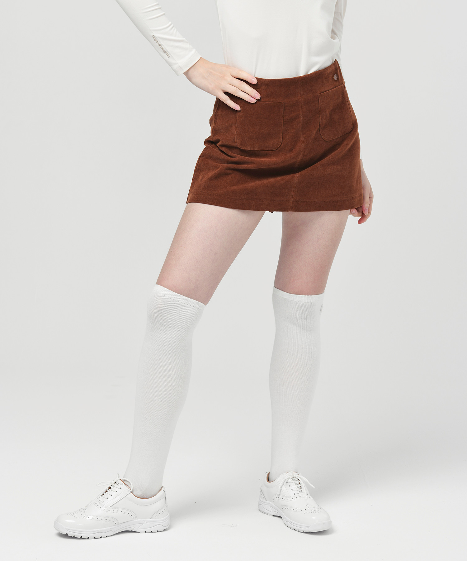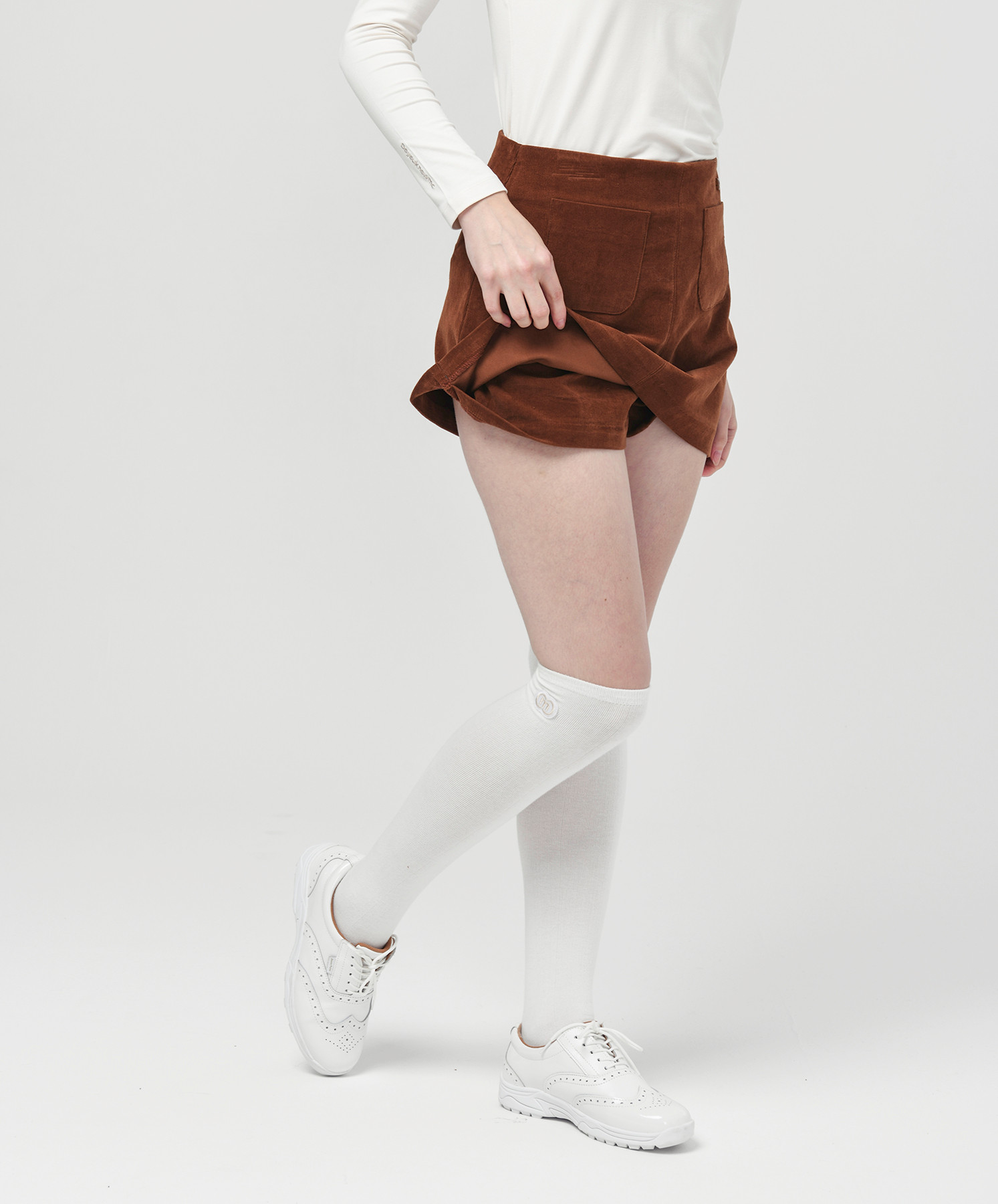 코듀로이 면 스판 코치 포켓 A-라인 브릭 브라운 스커트형 반바지