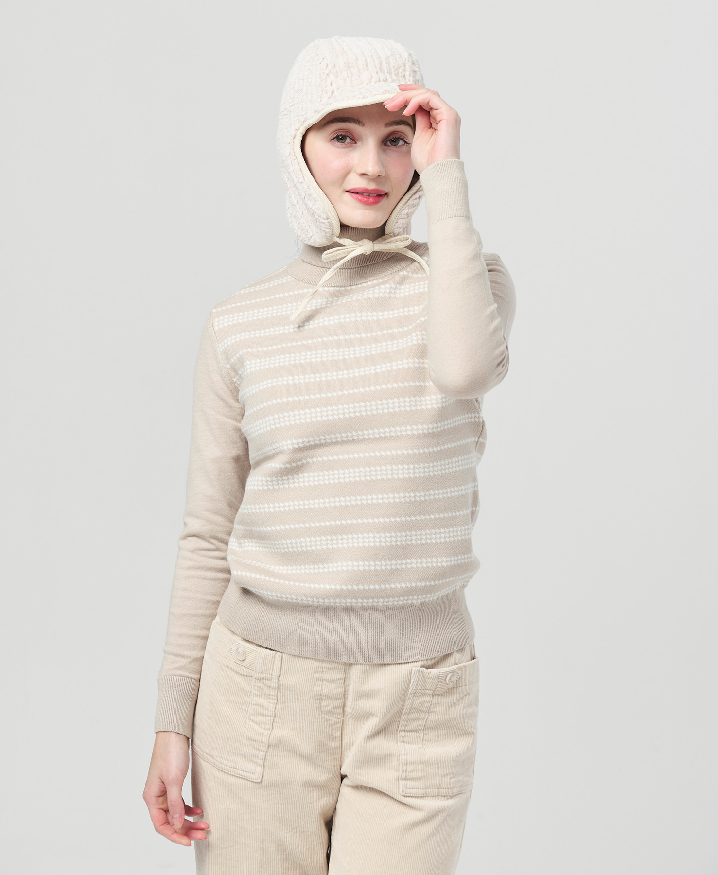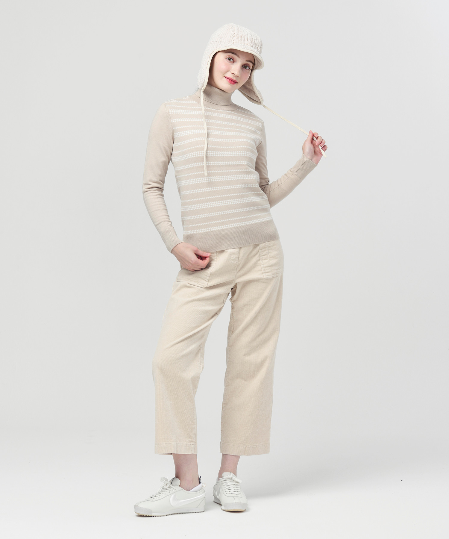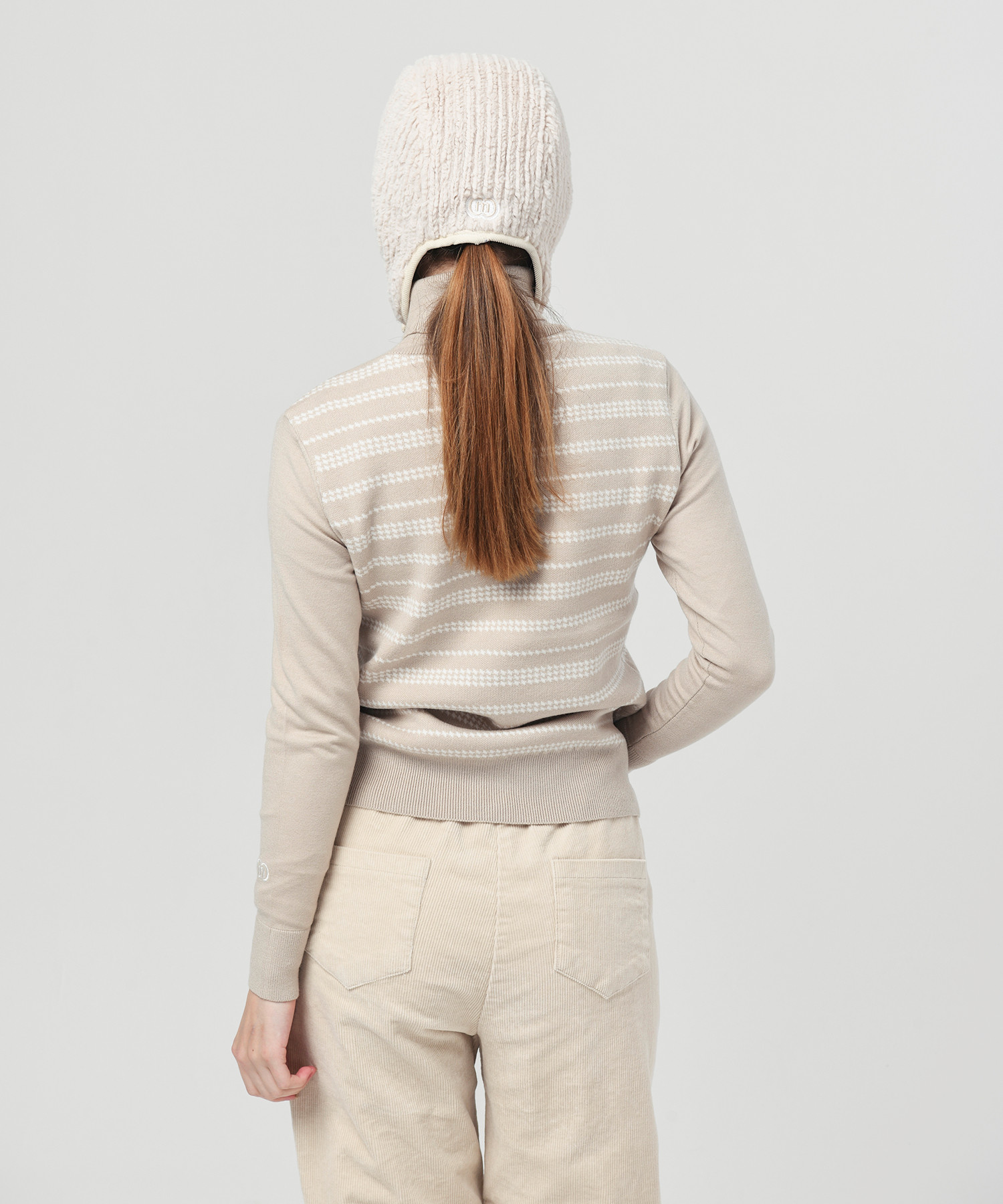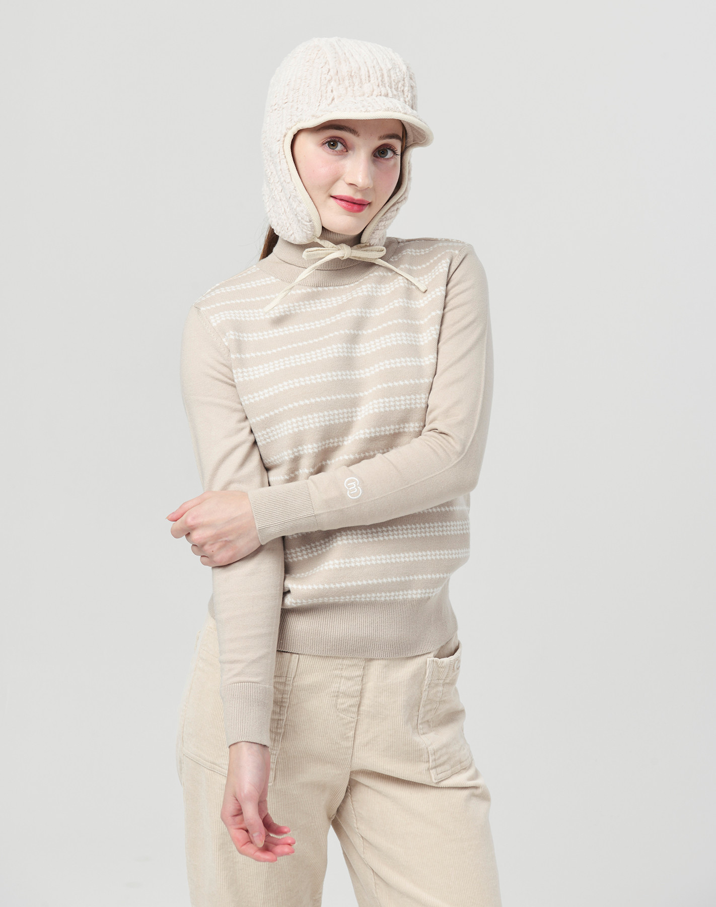 하운드 투스 양면 쟈가드 베이지 터틀 넥 니트