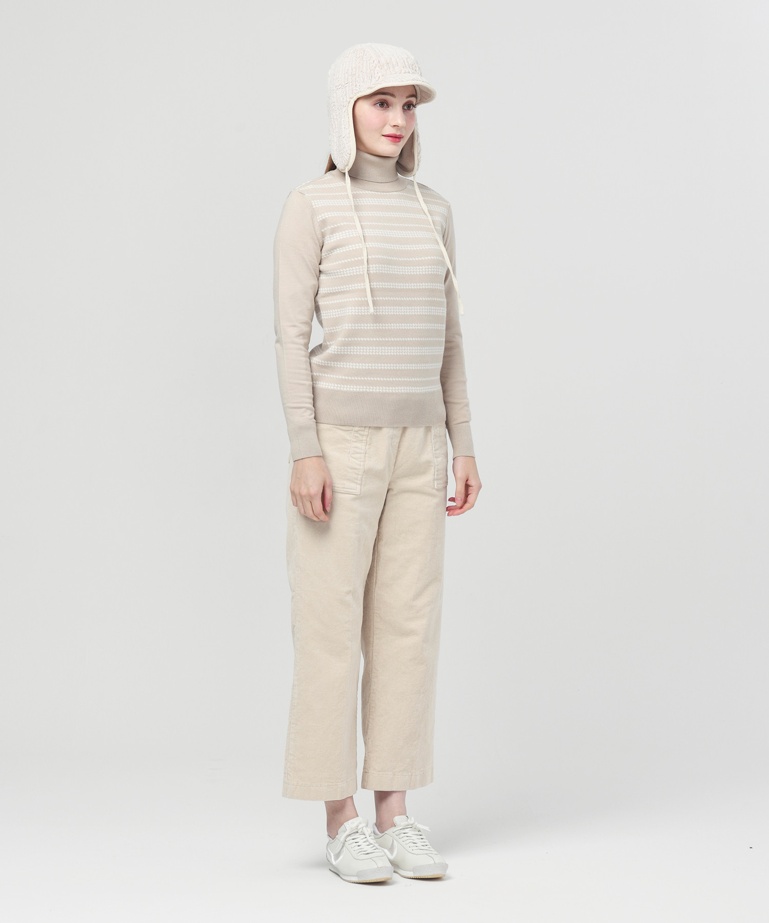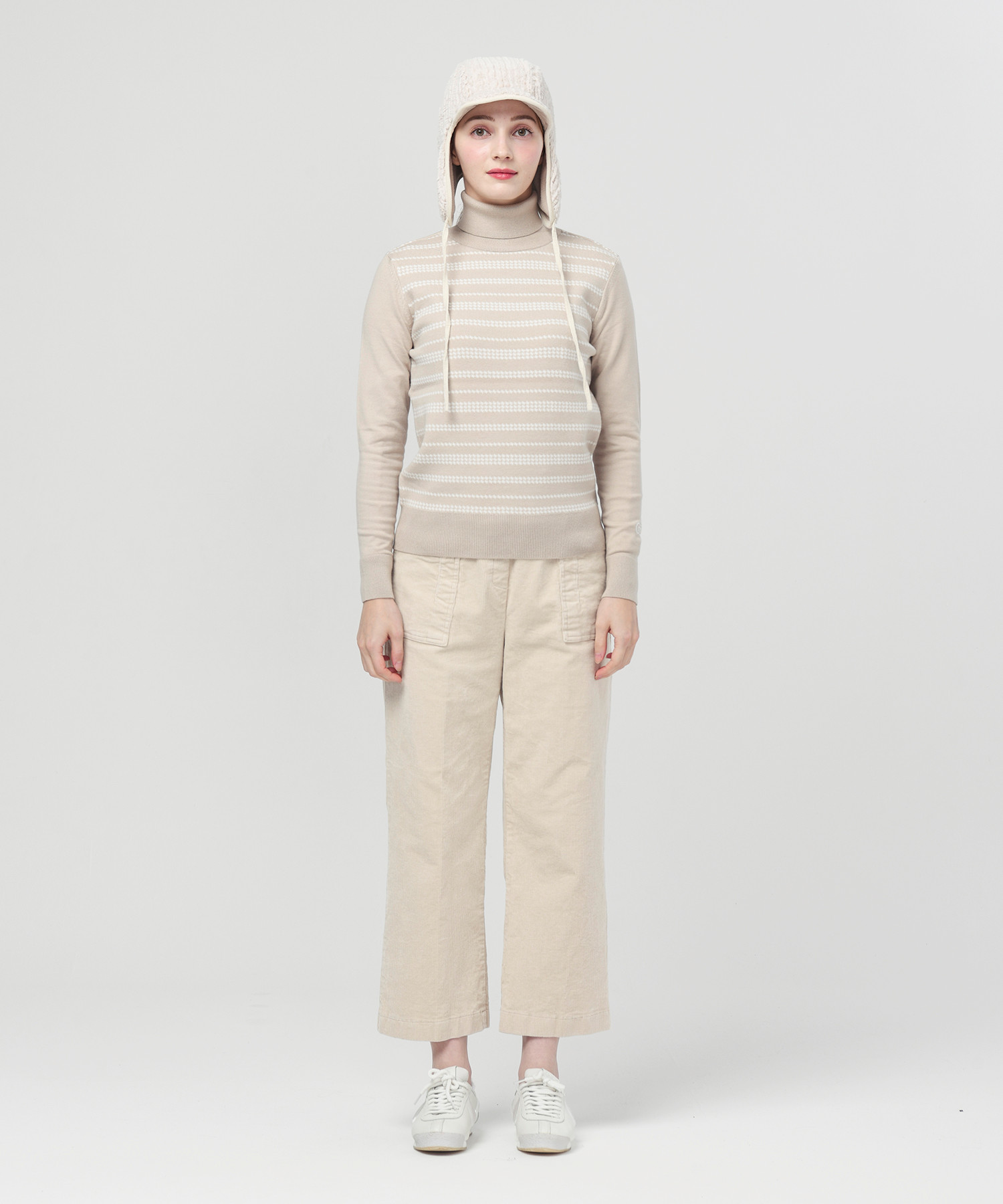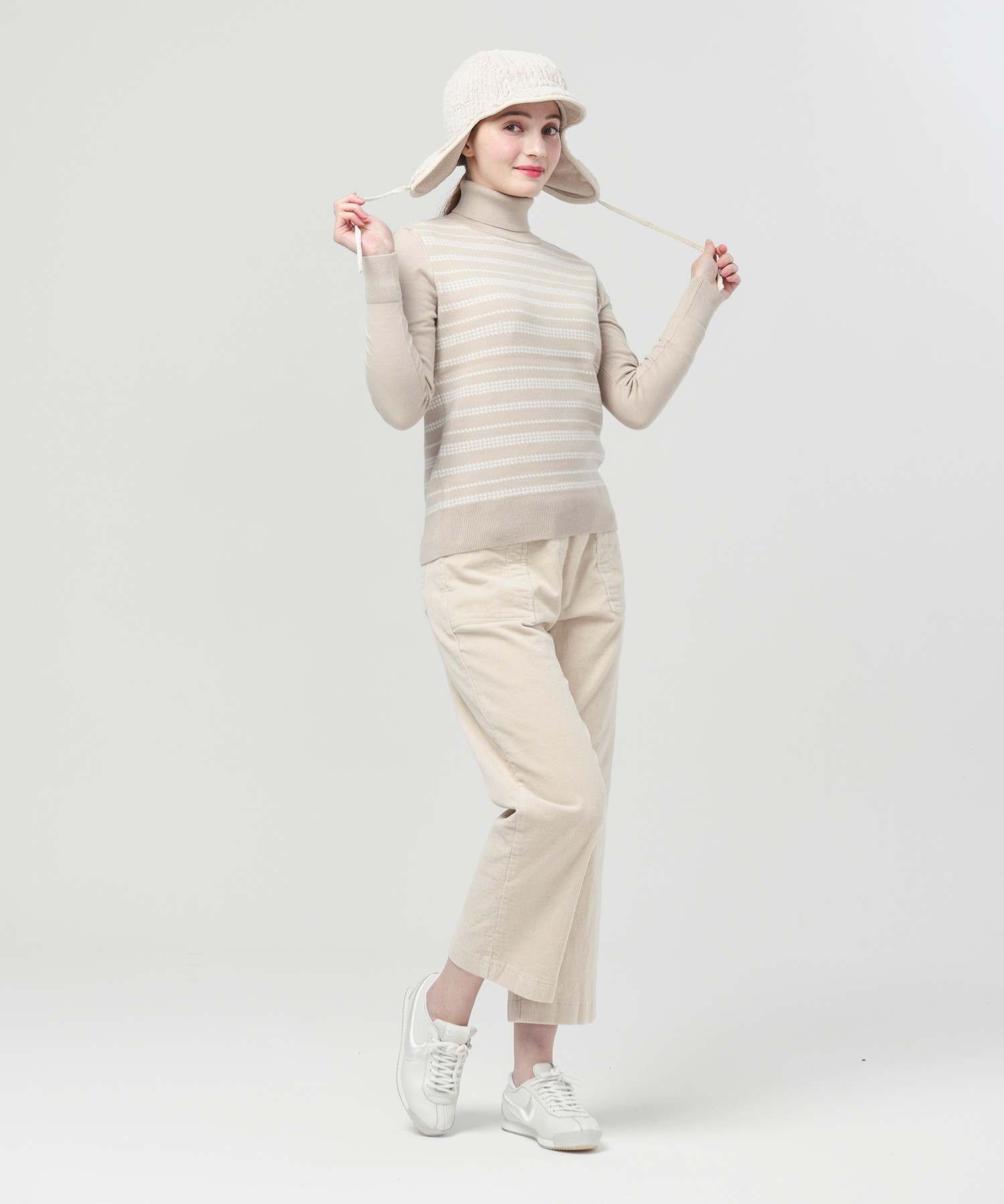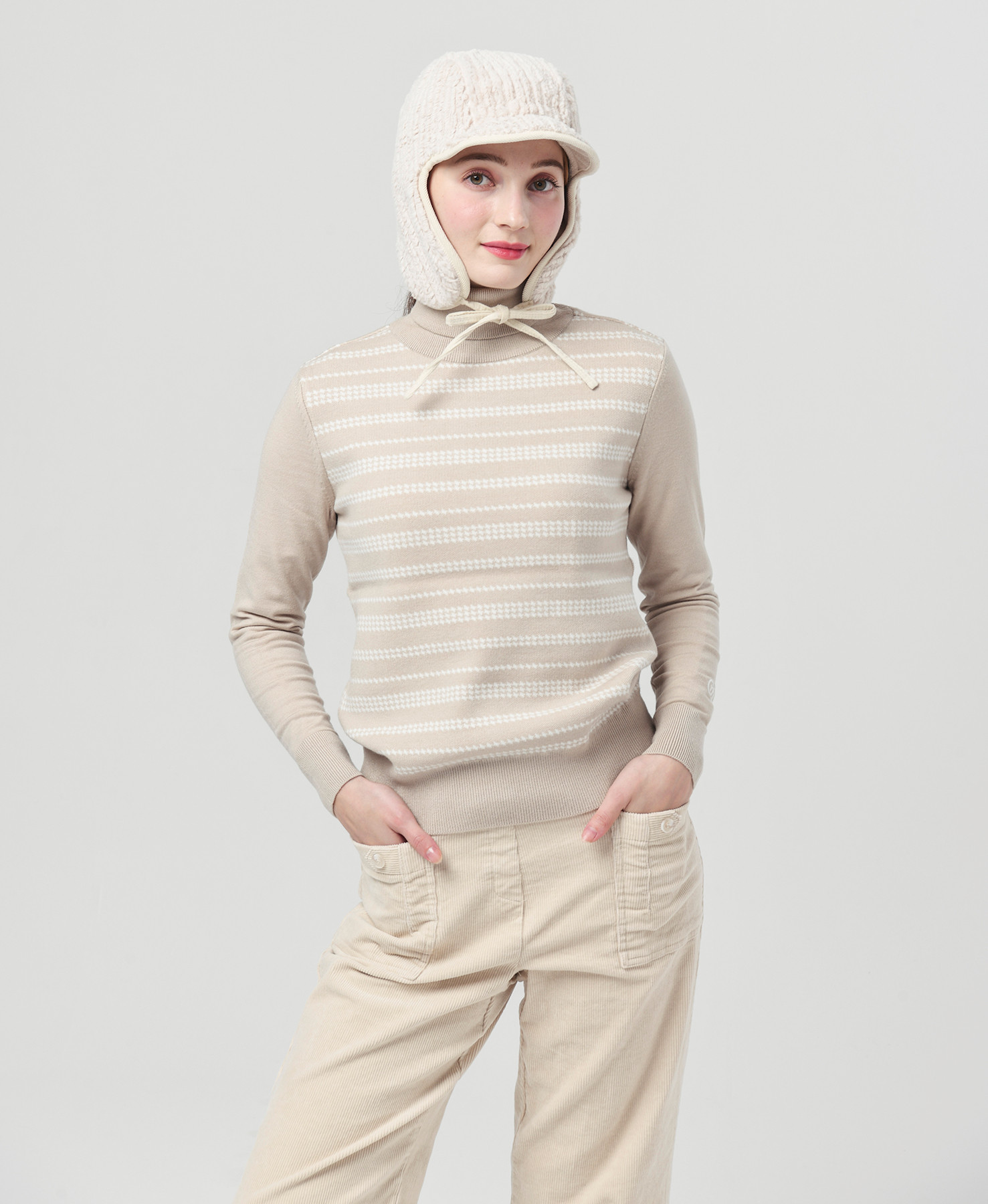 하운드 투스 양면 쟈가드 베이지 터틀 넥 니트