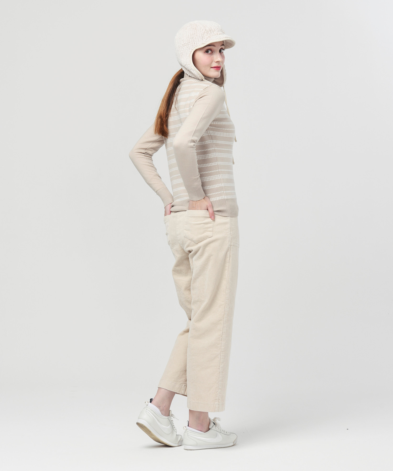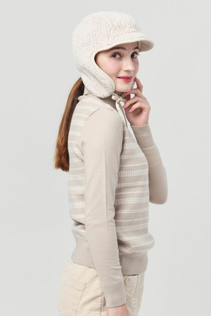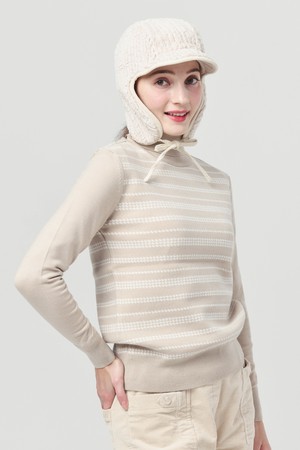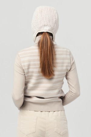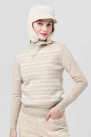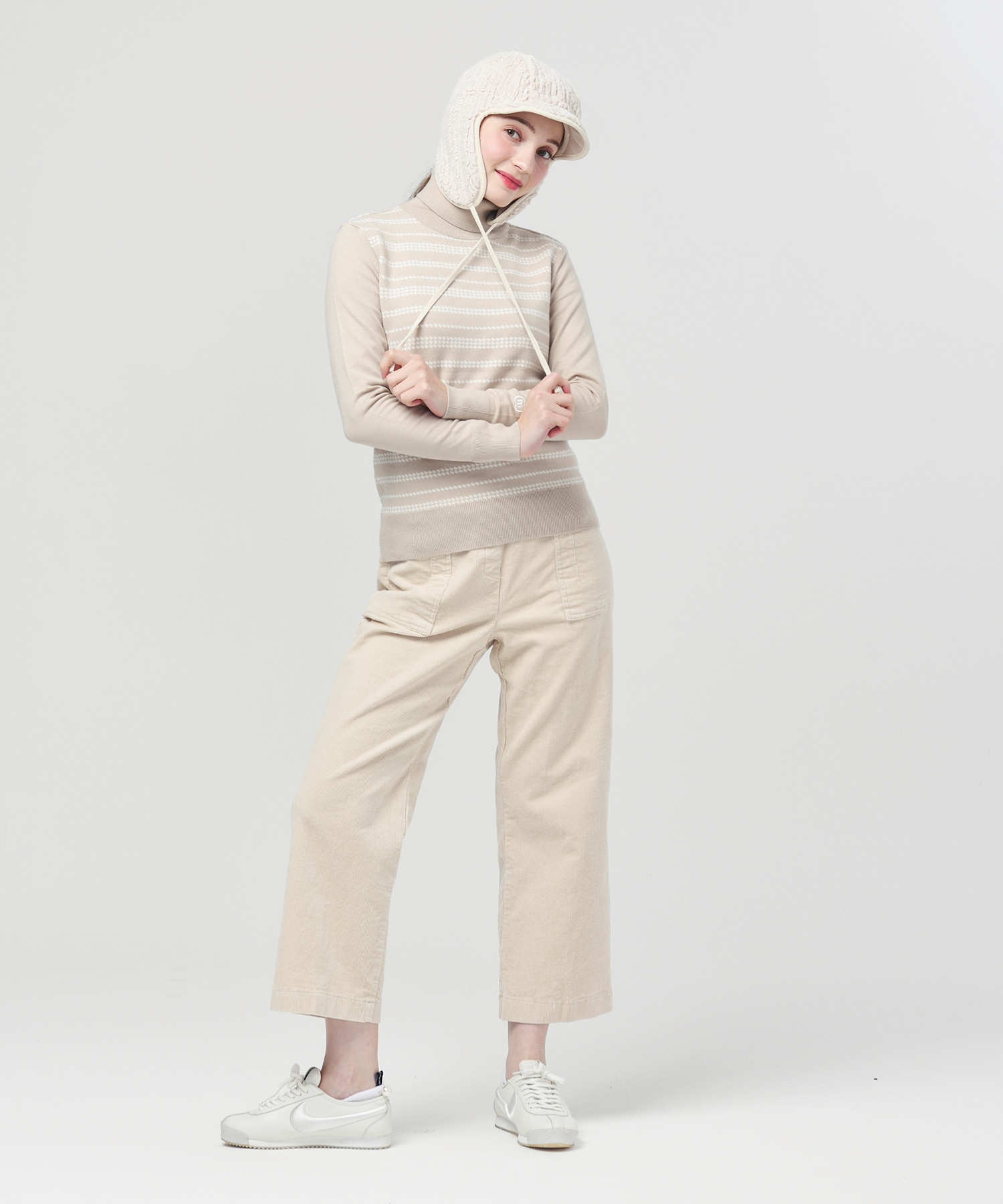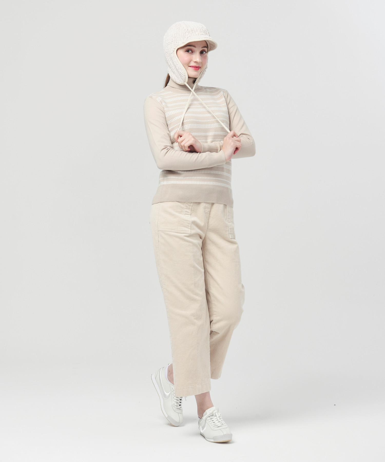 하운드 투스 양면 쟈가드 베이지 터틀 넥 니트