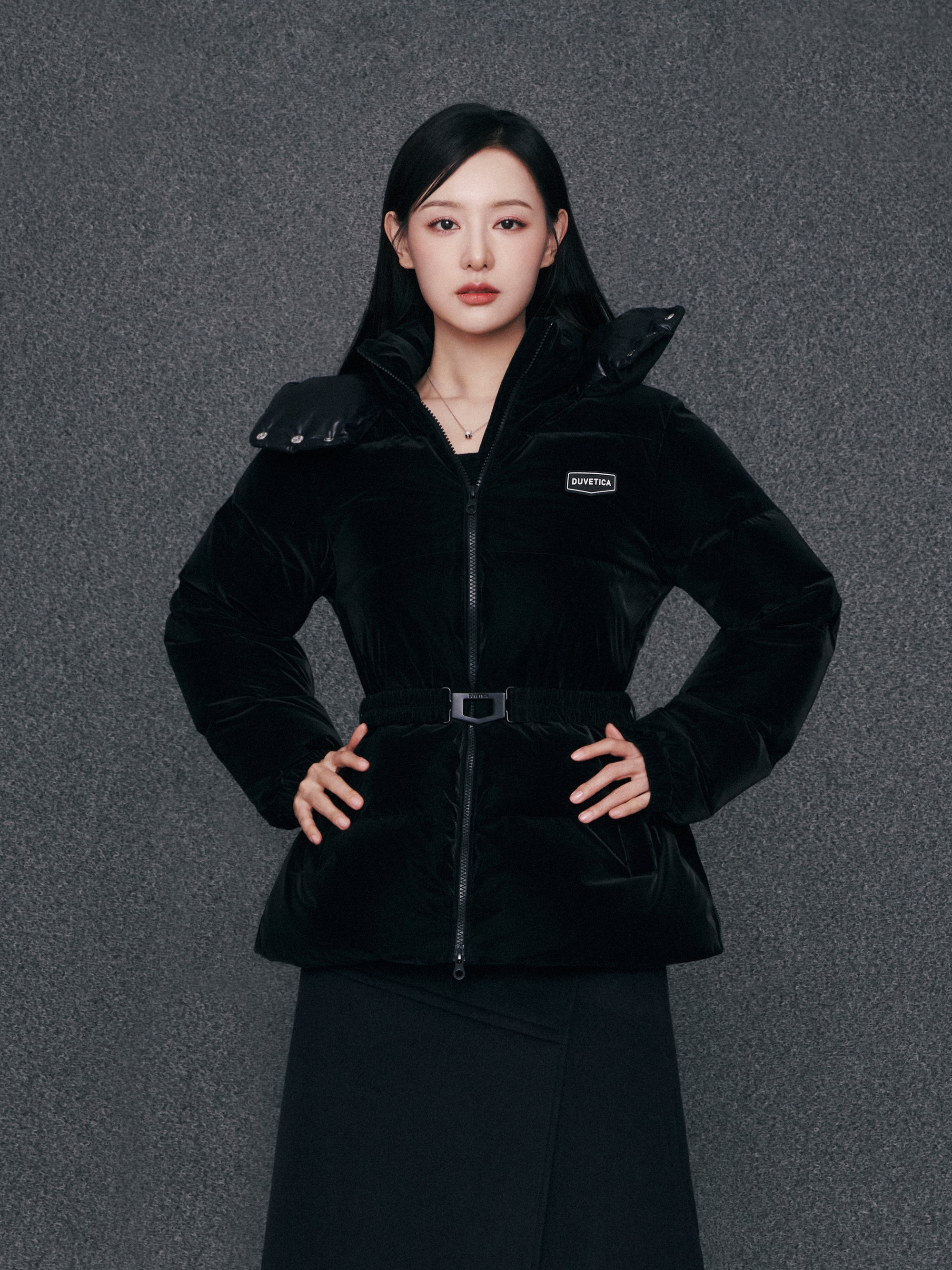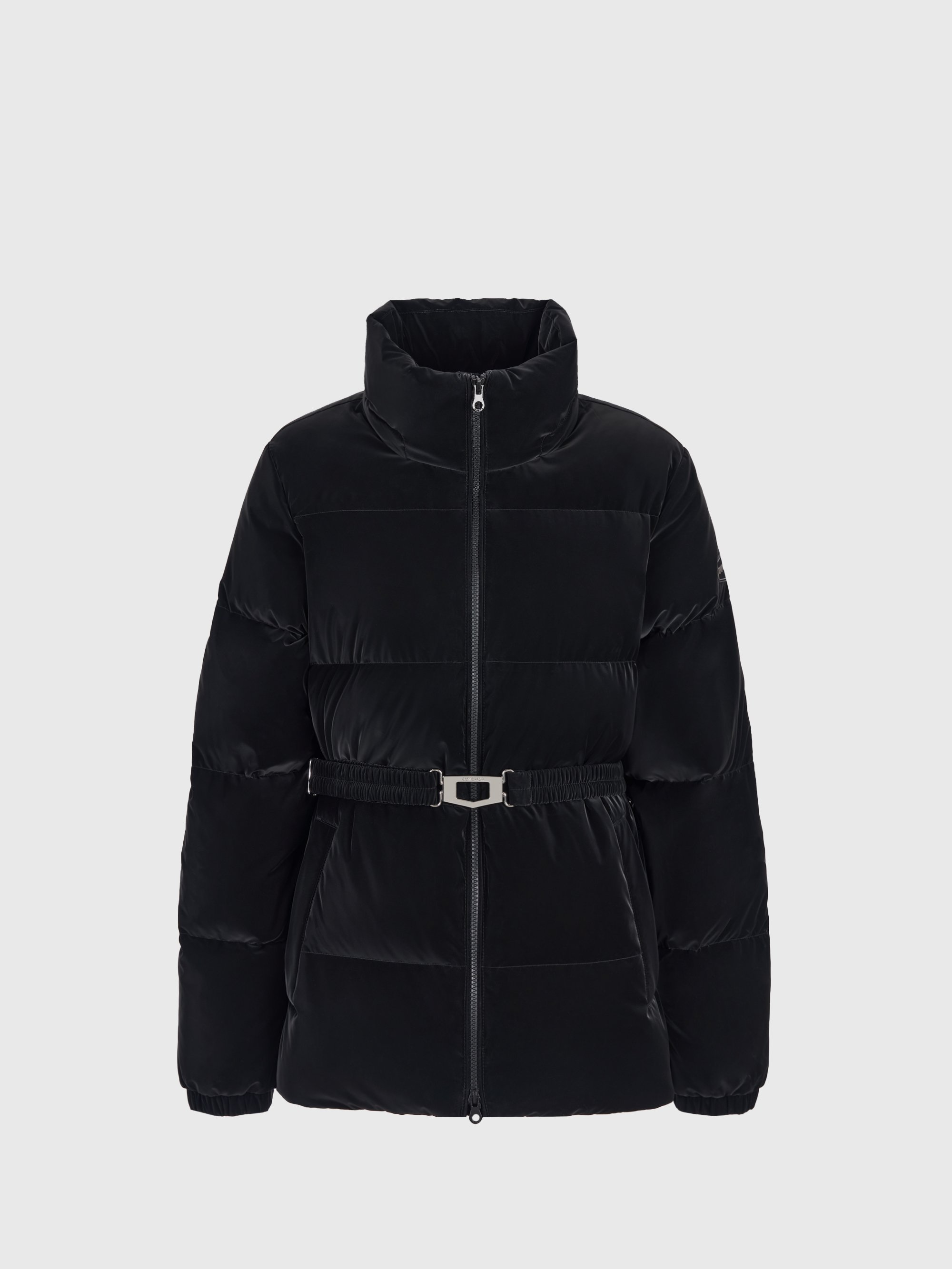 - 매끄럽고 부드러운 광택을 지닌 벨트 다운 자켓