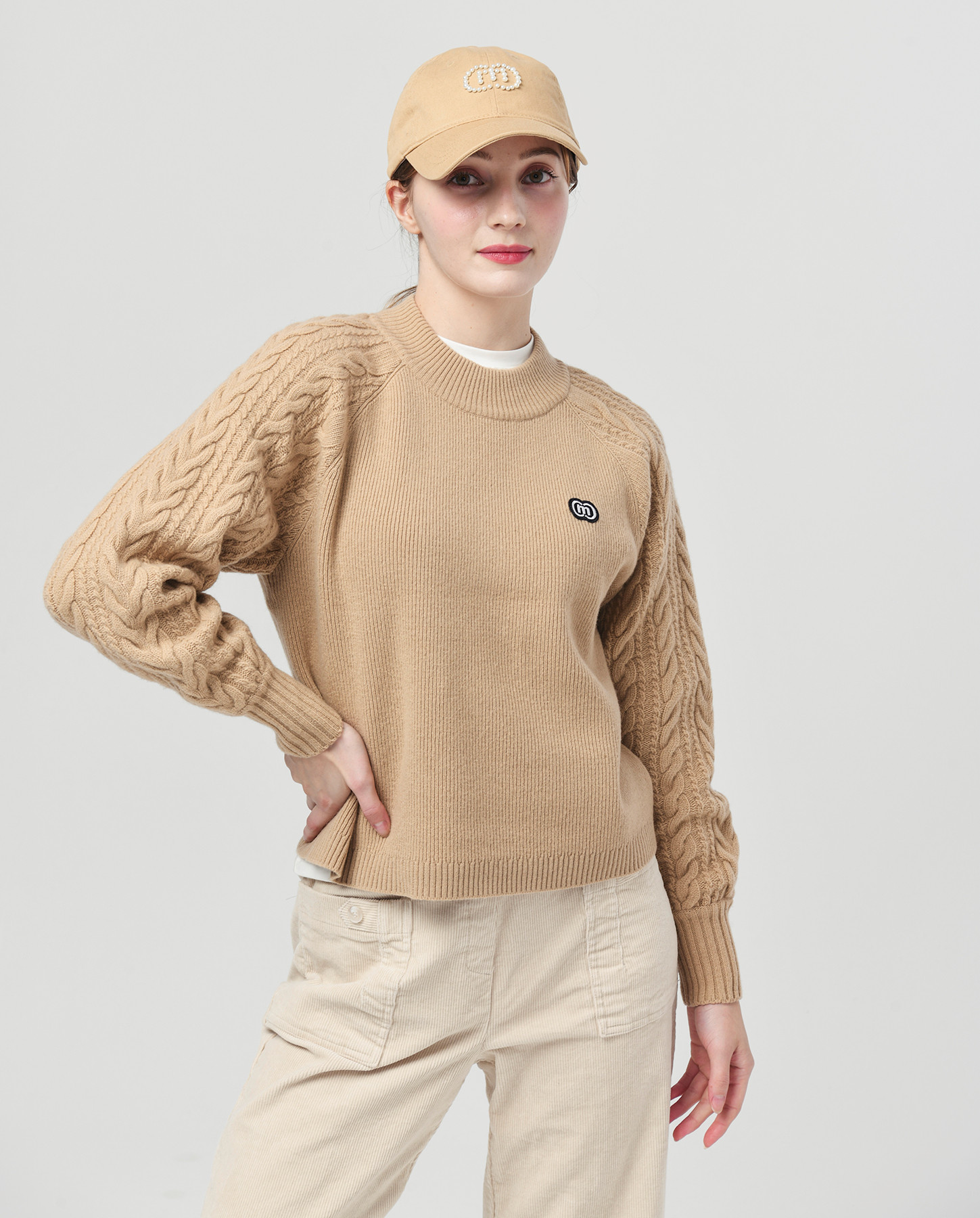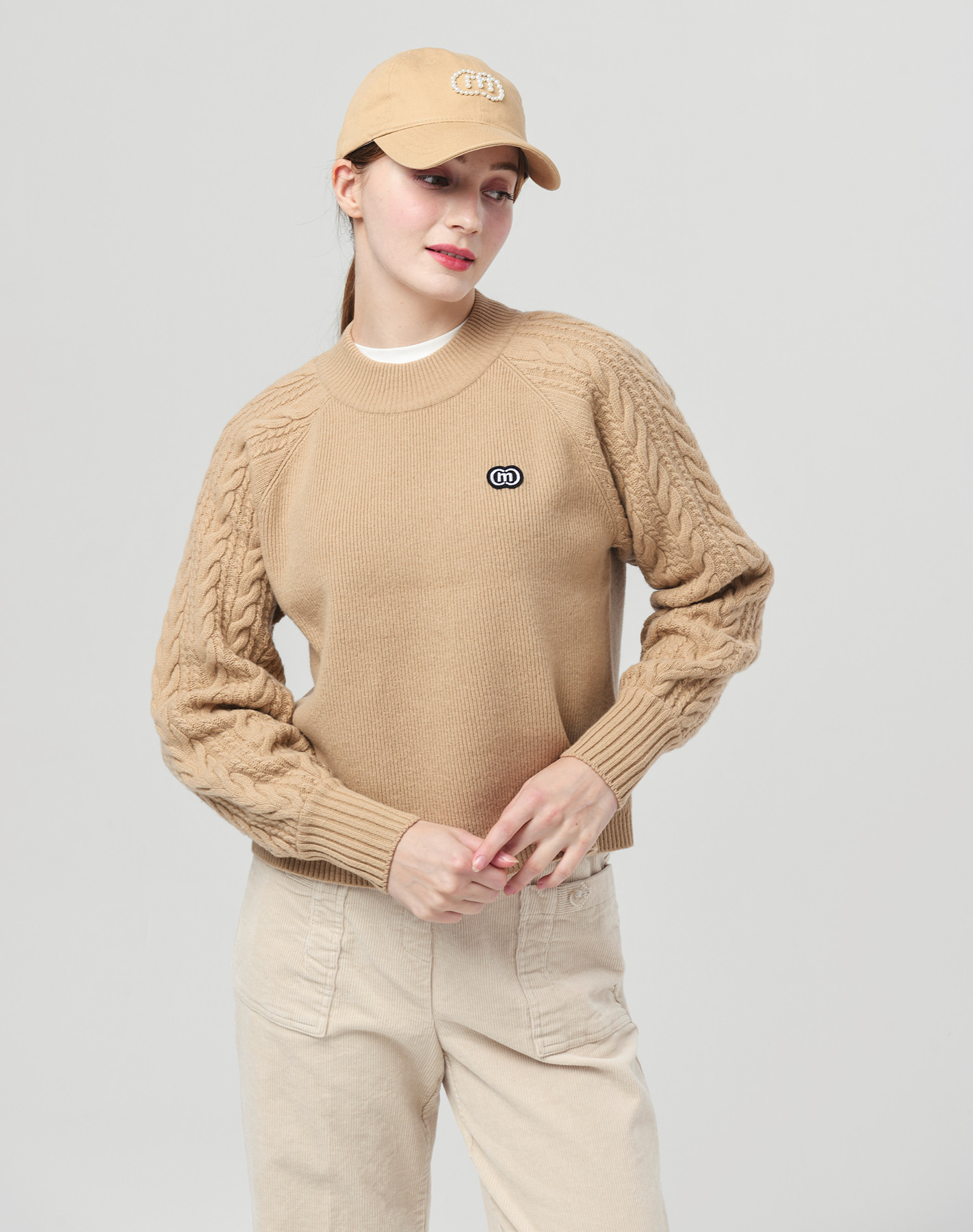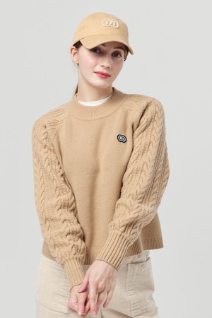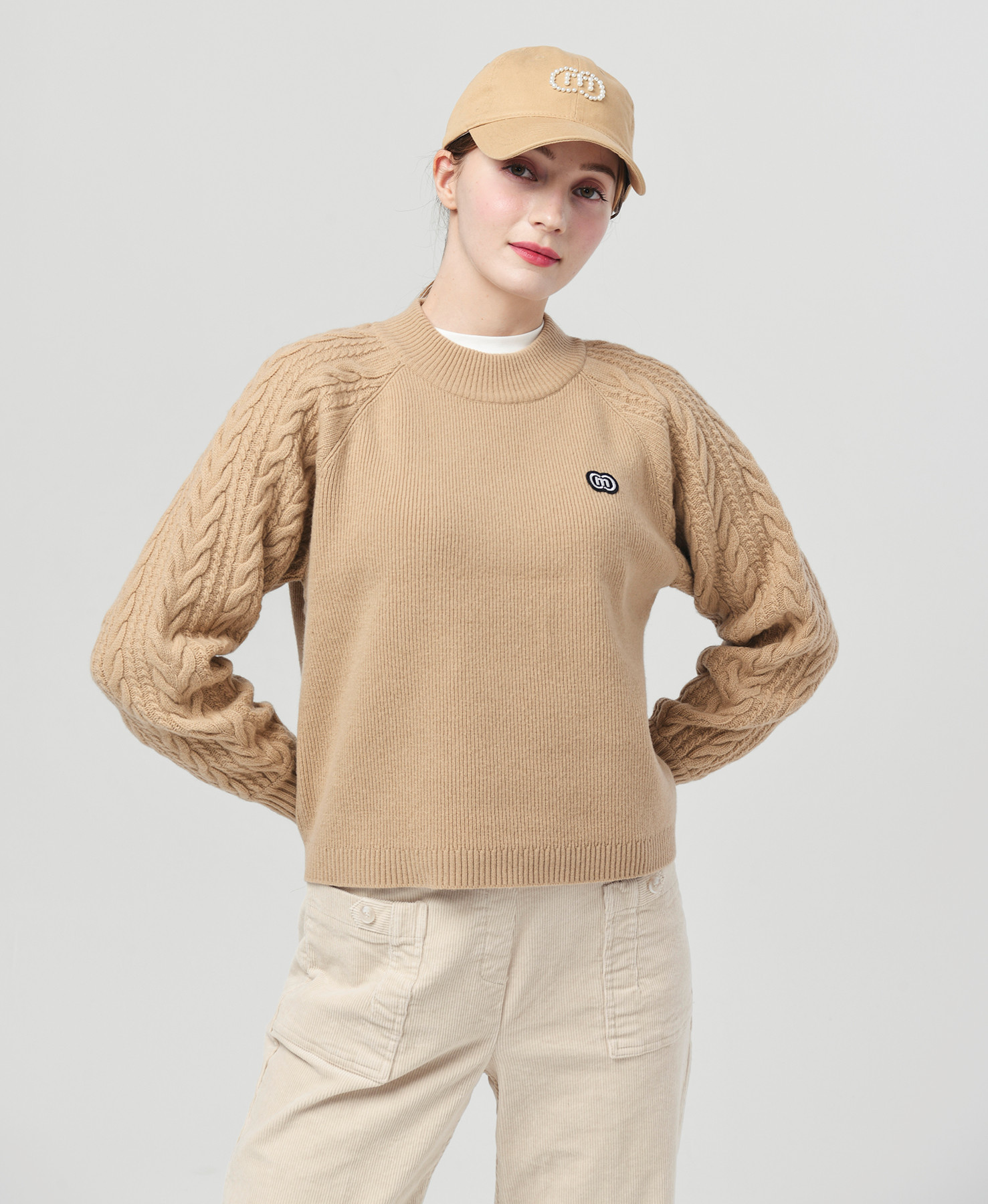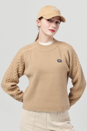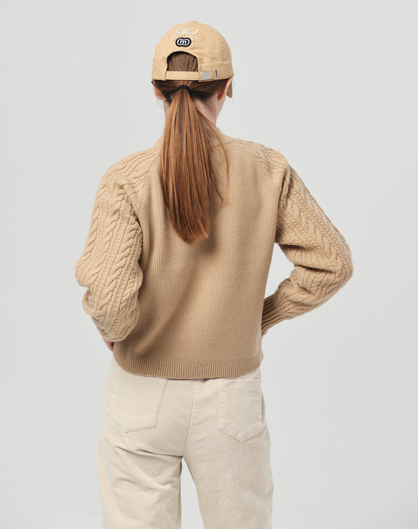캐시미어 혼방 케이블 나글란 절개 쟈가드 베이지 니트