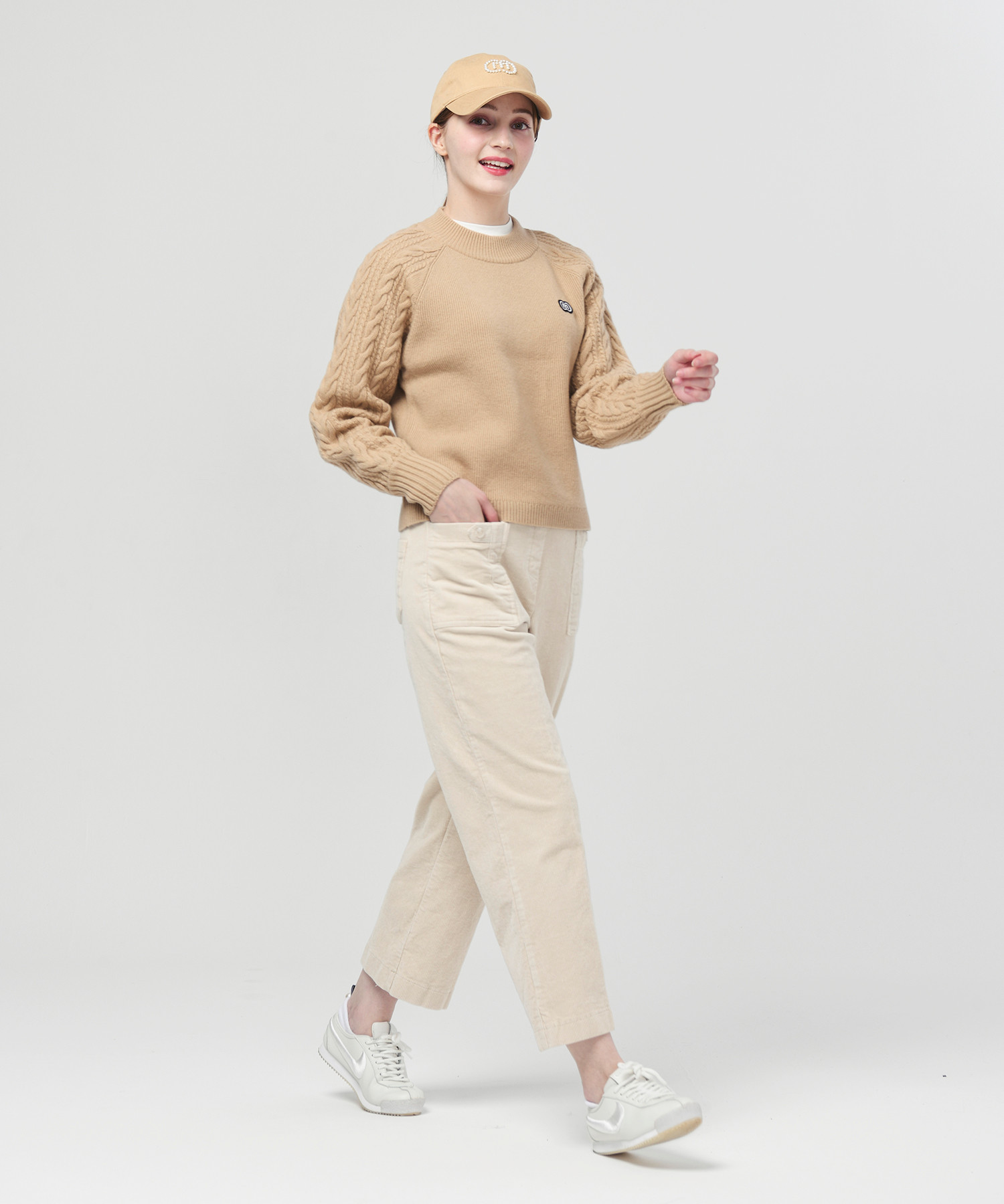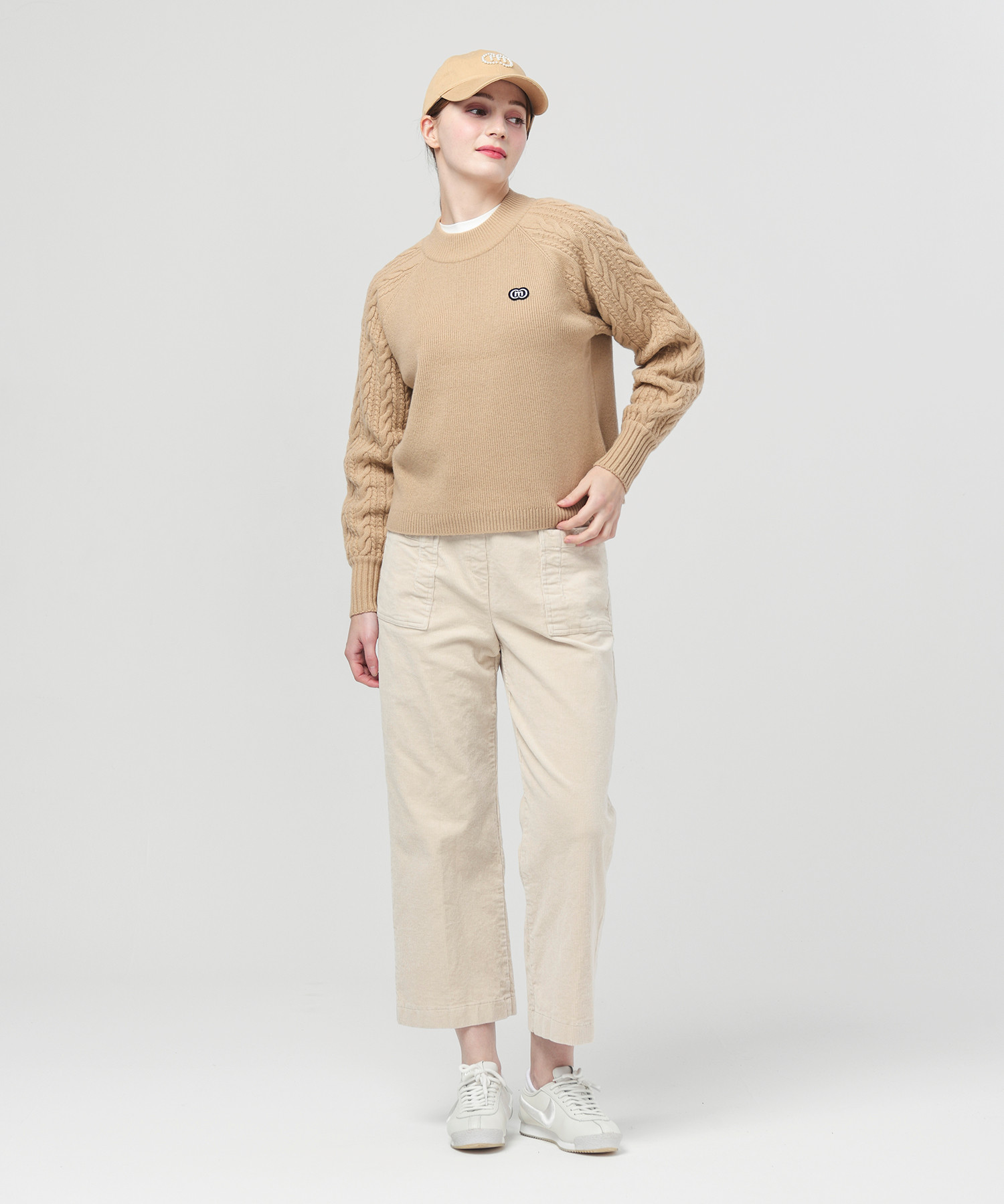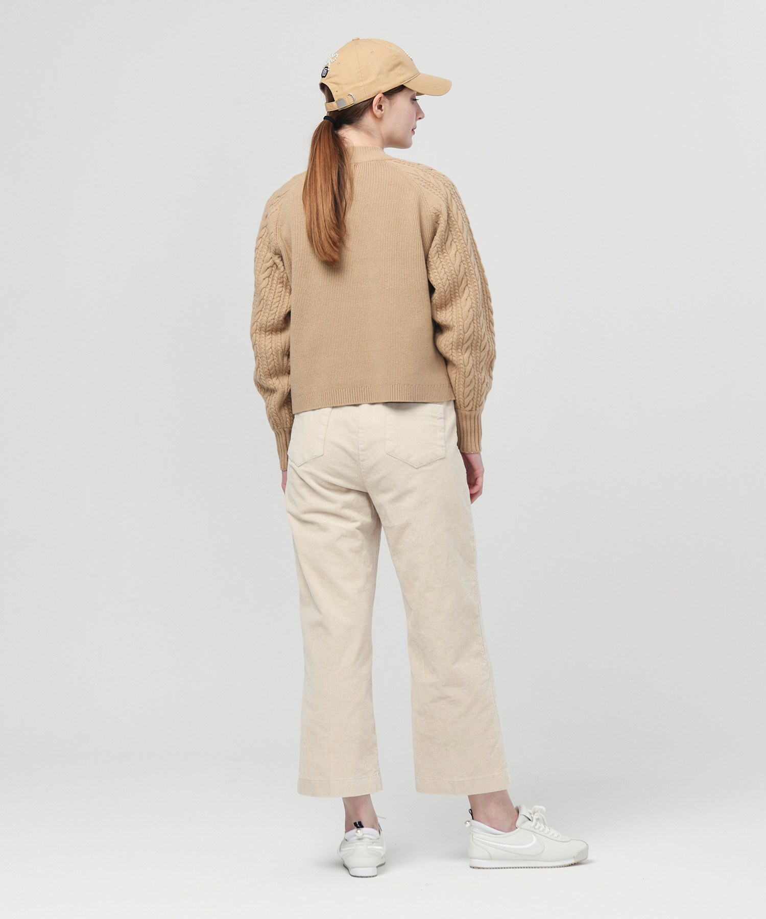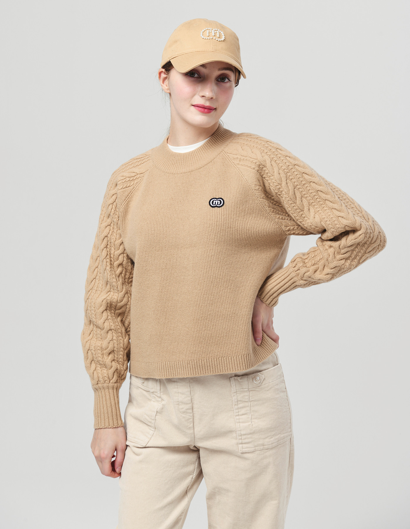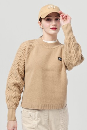 캐시미어 혼방 케이블 나글란 절개 쟈가드 베이지 니트