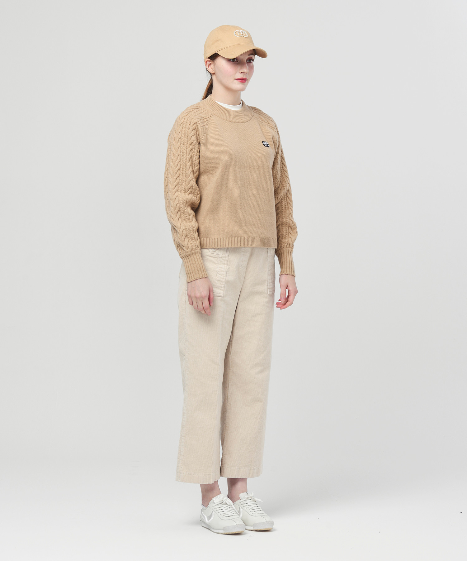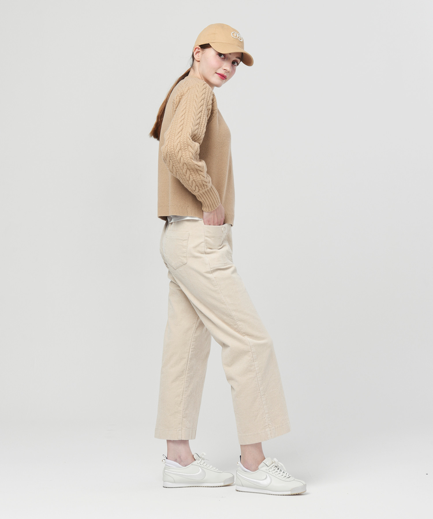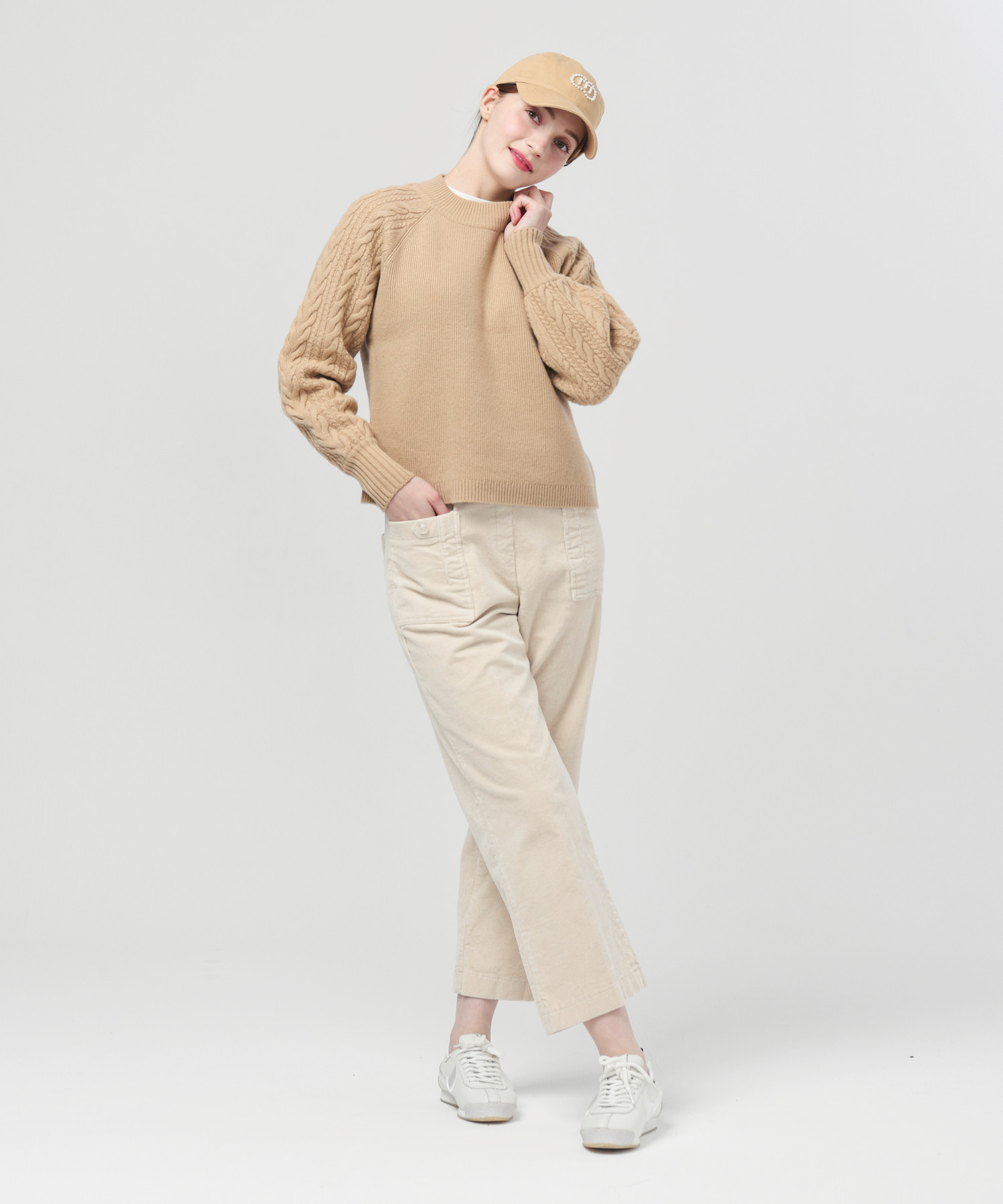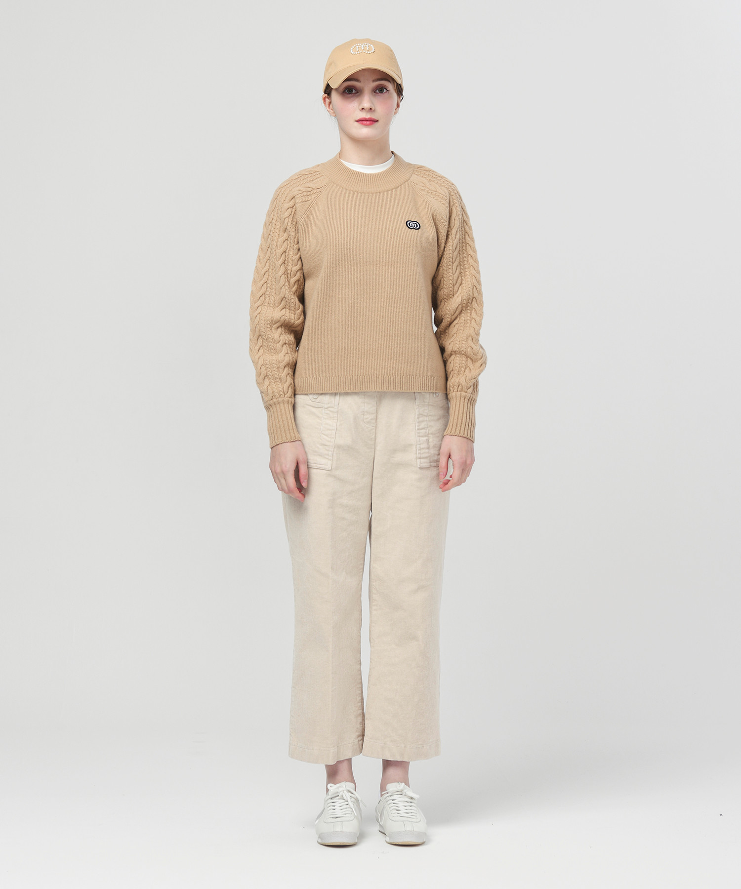 캐시미어 혼방 케이블 나글란 절개 쟈가드 베이지 니트