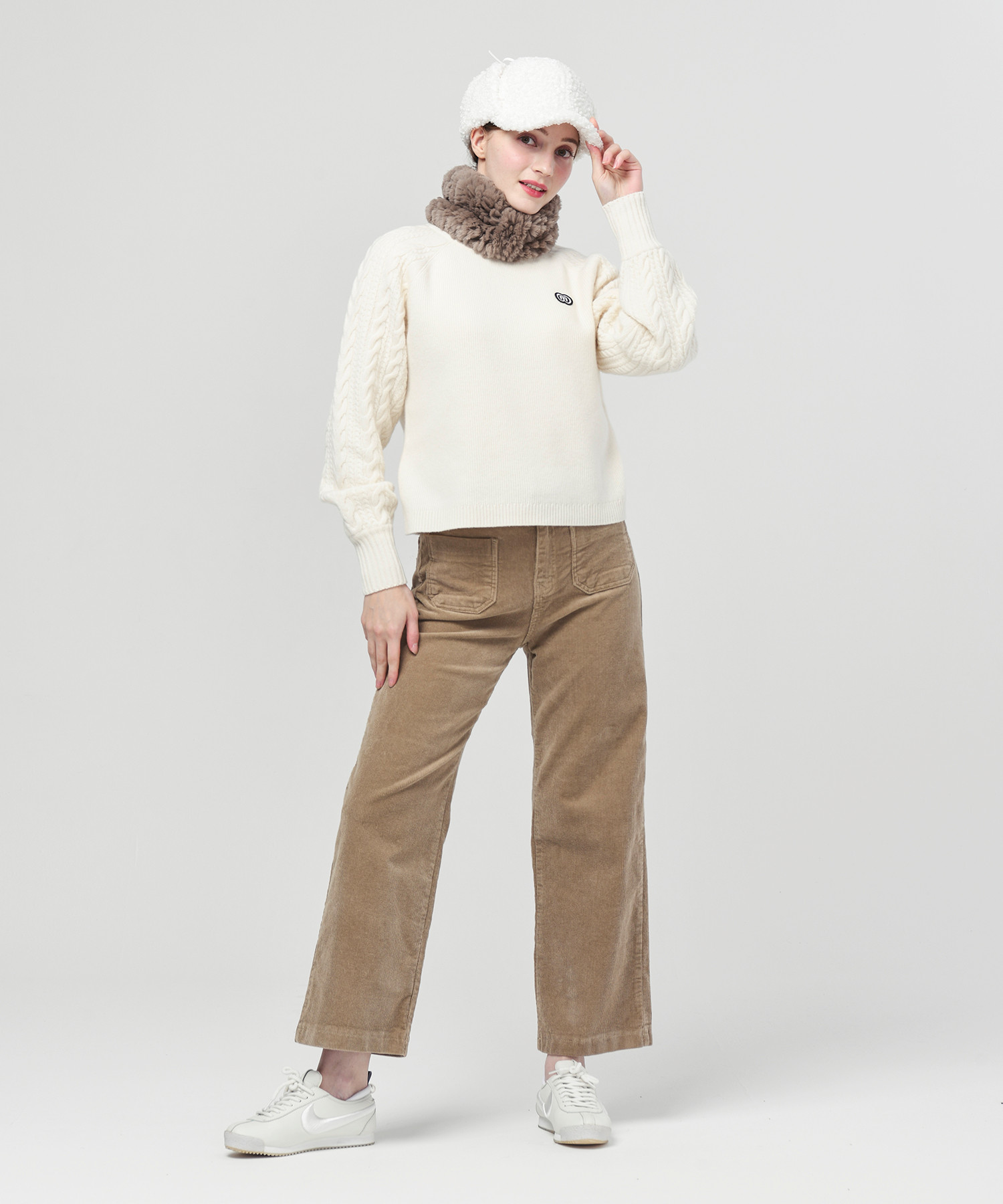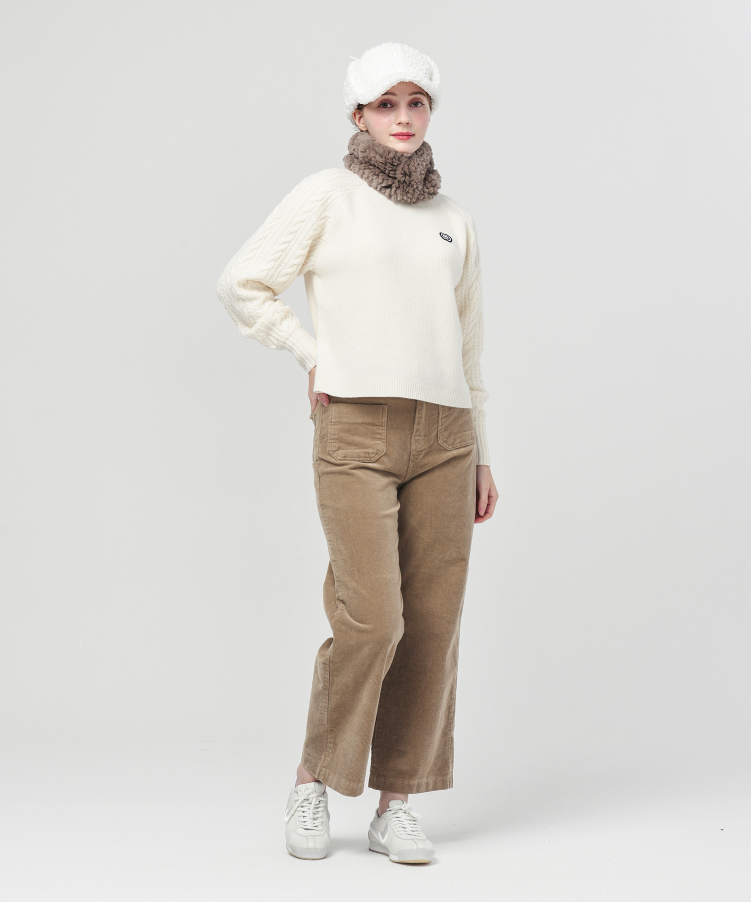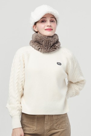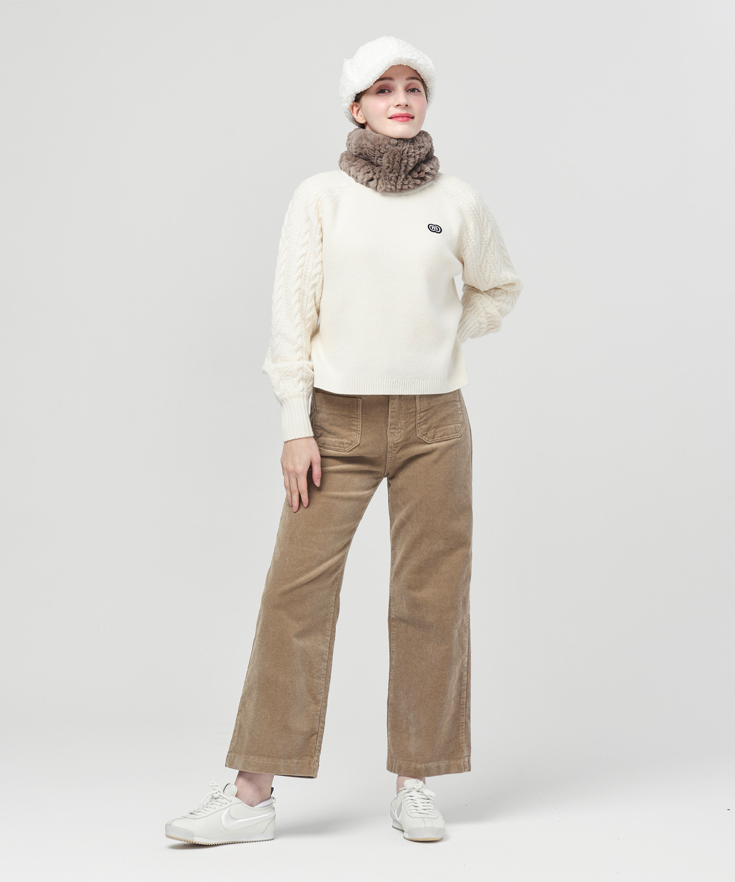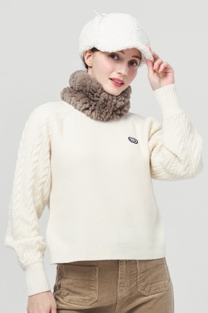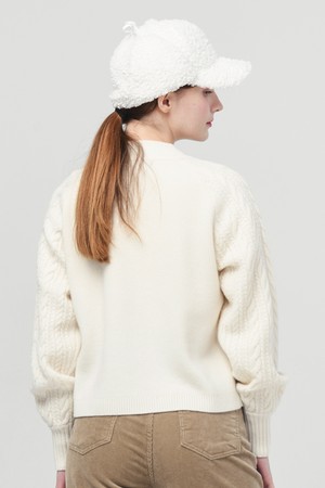 캐시미어 혼방 케이블 나글란 절개 쟈가드 아이보리 니트