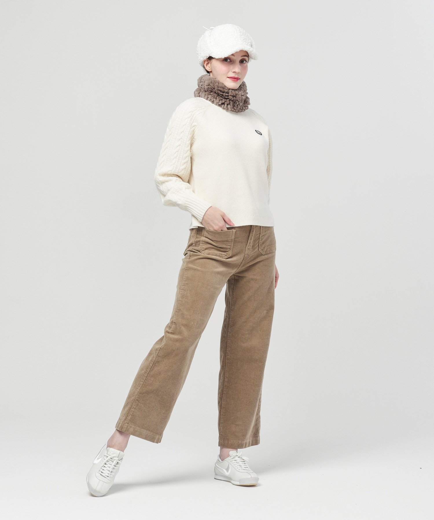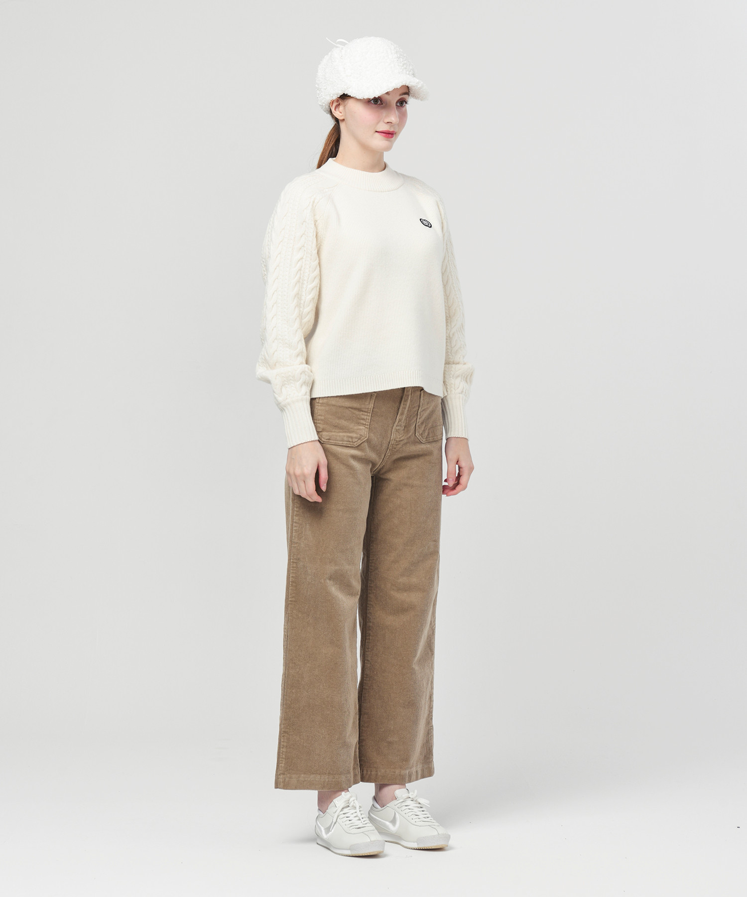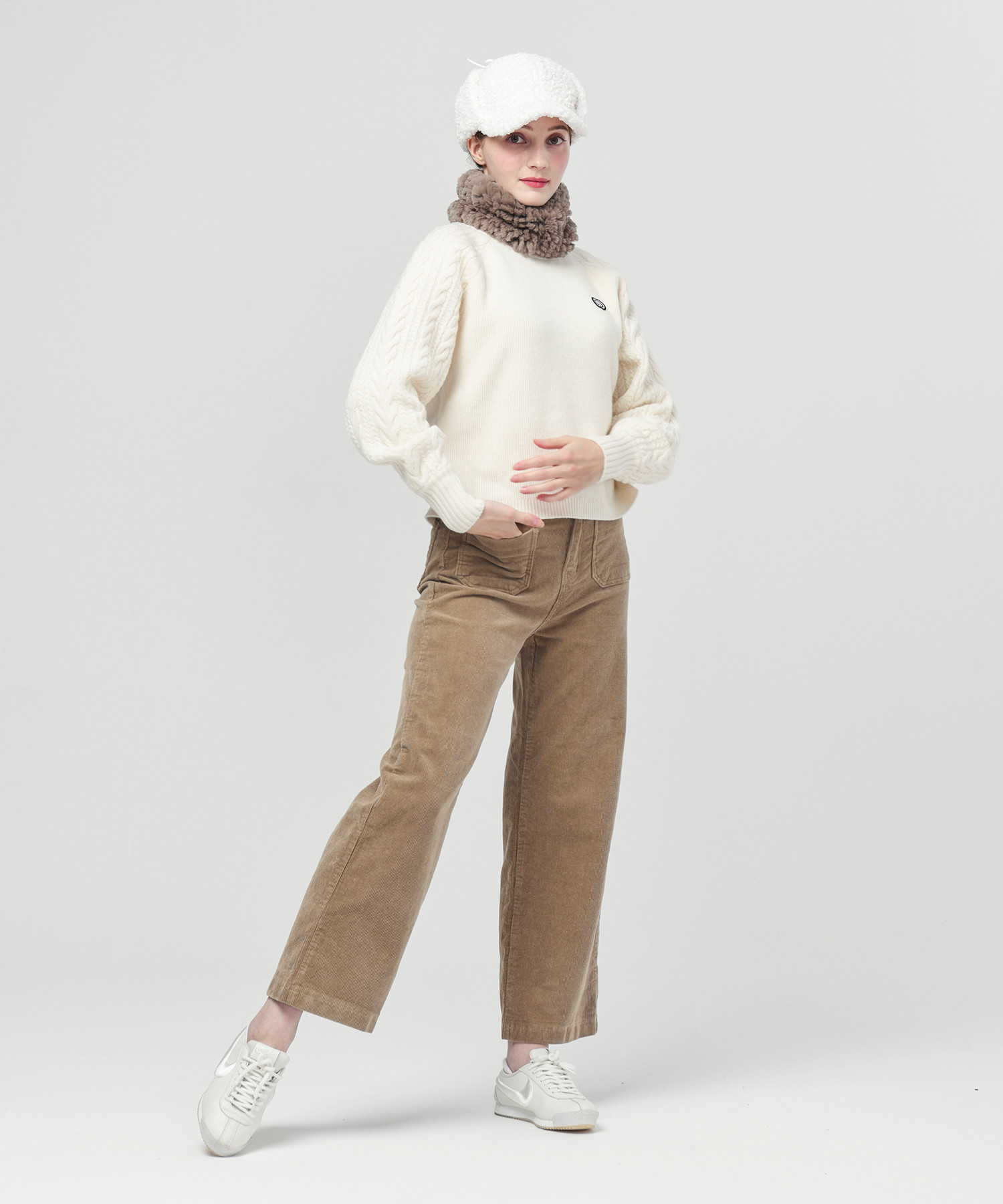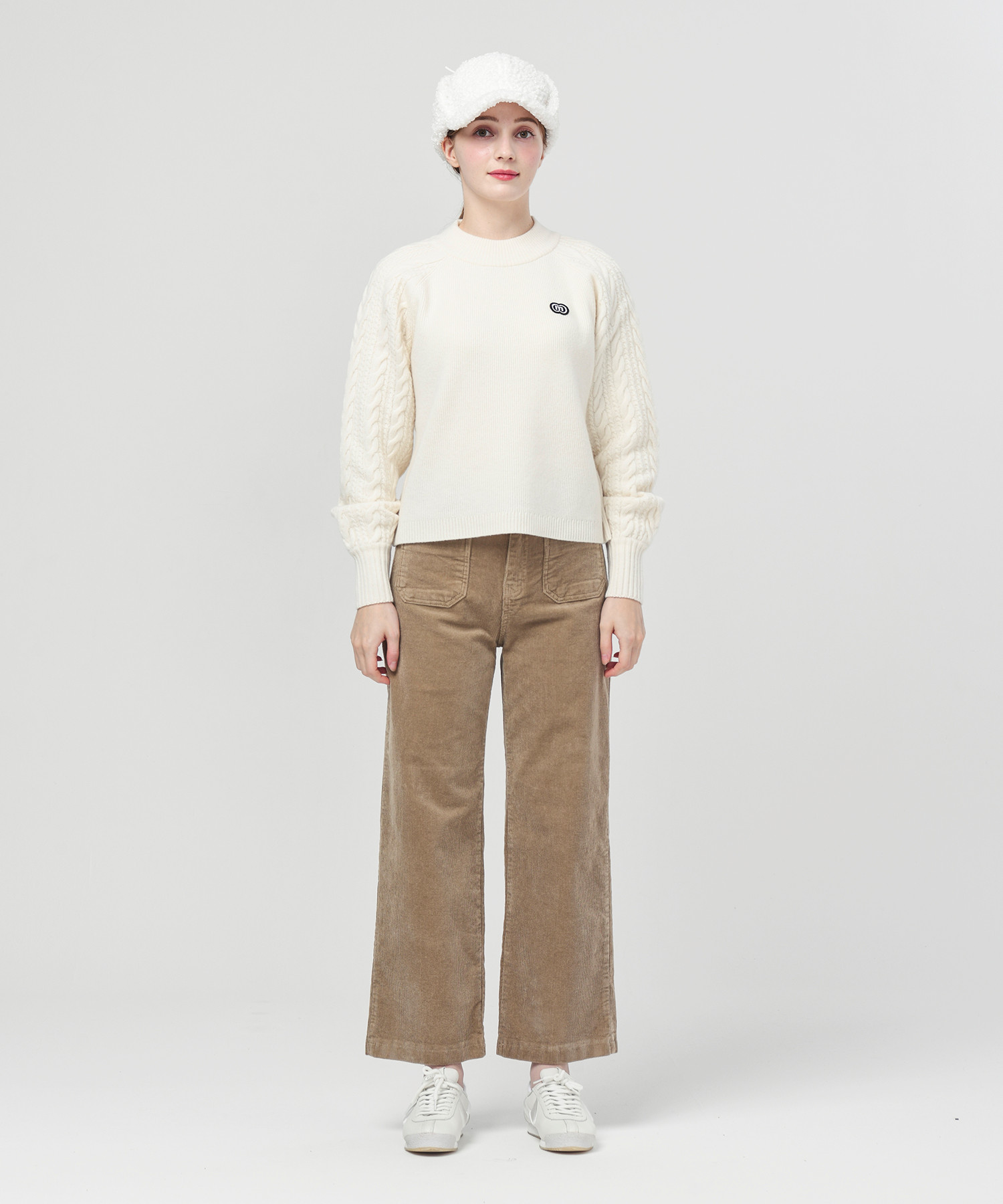 넥 라인과 연결된 나글란 절개 부분에 클래식한 케이블 조직이 클래식함과