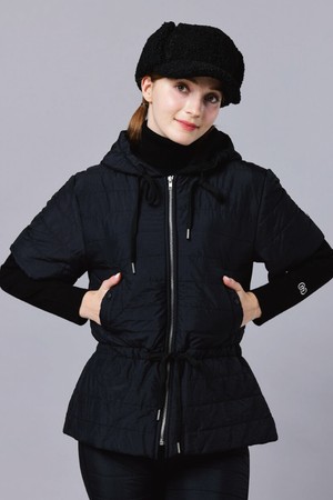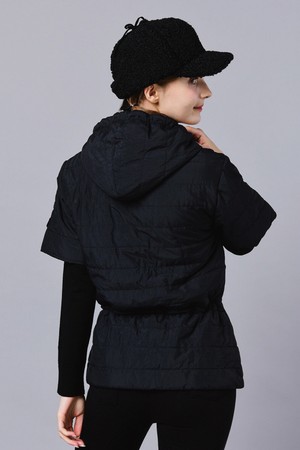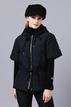 웰론 경량 패딩 후드 집업 반팔 블랙 바람막이