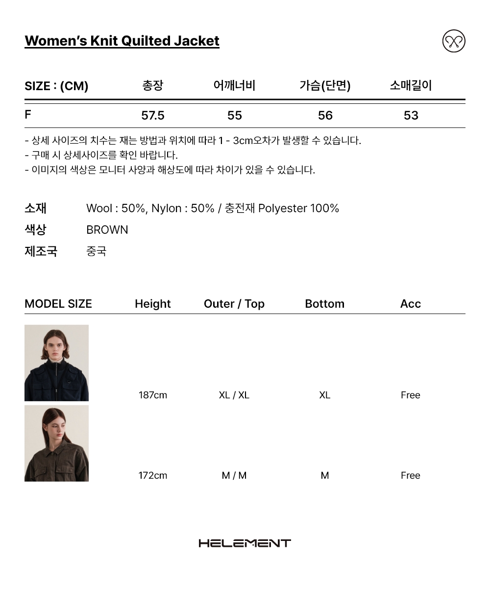 소재 | 울 : 50%, 나일론 : 50% / 충전재 폴리에스터 100% |