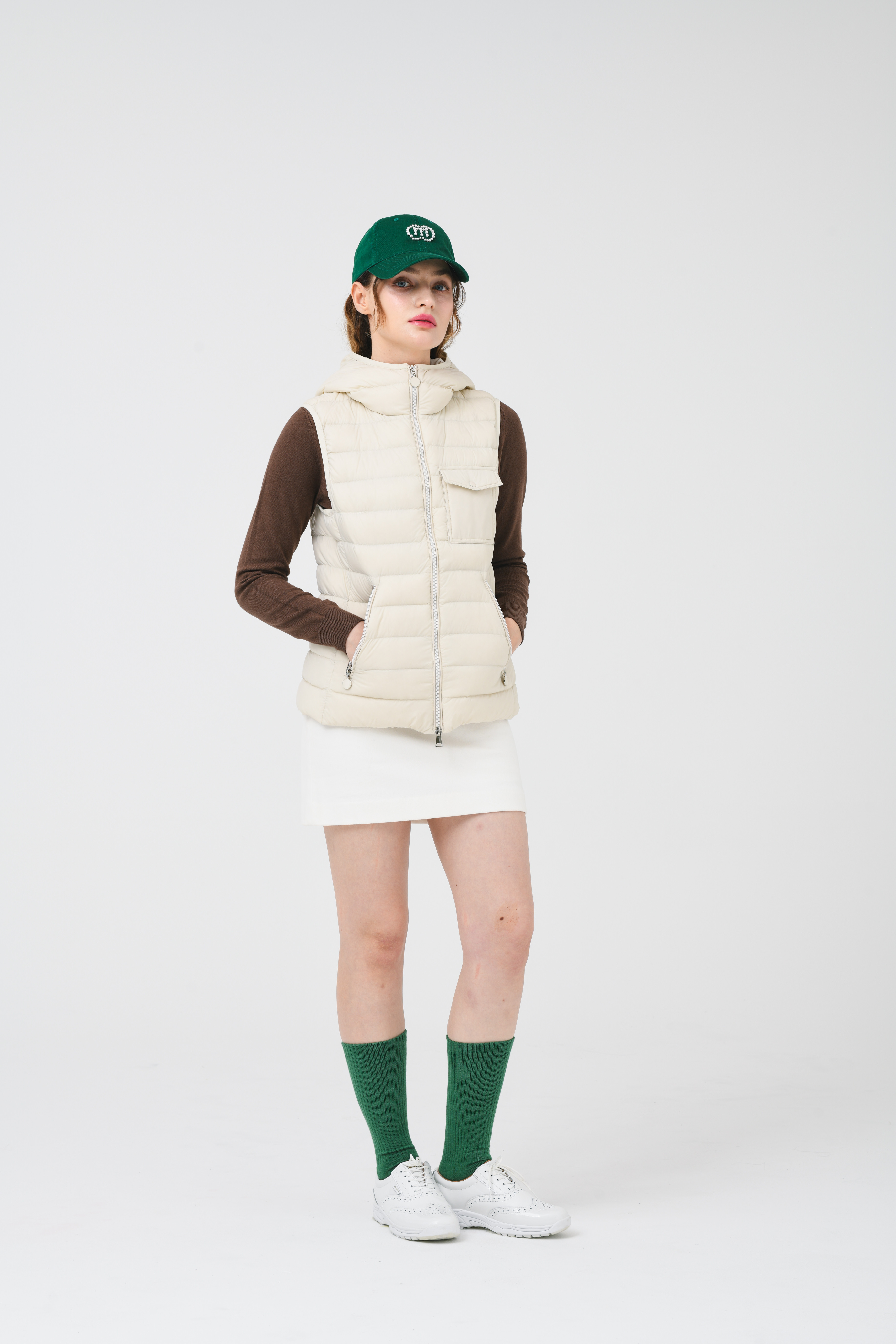 25FW 후드 아노락 베이지 경량 덕 다운 베스트