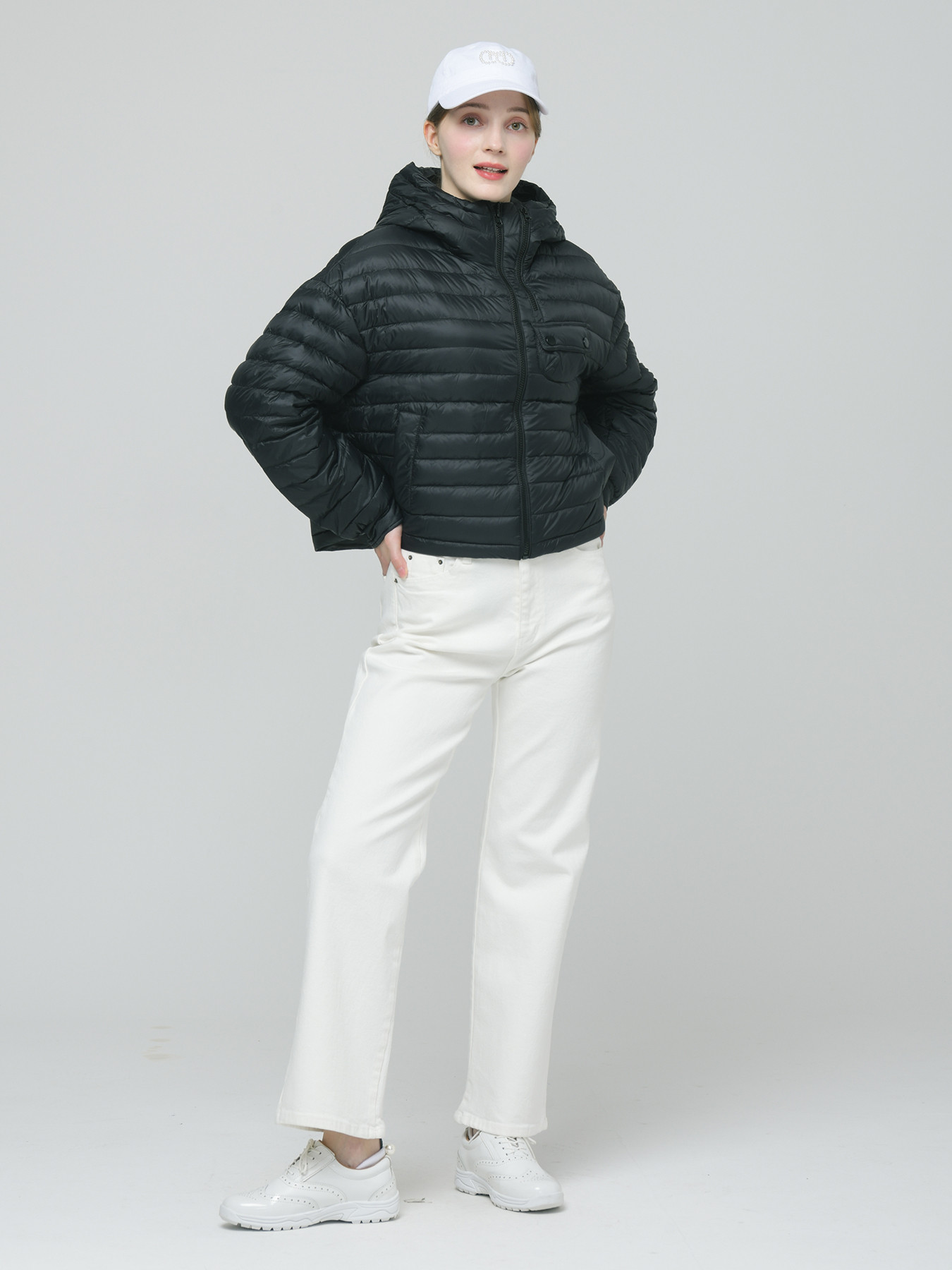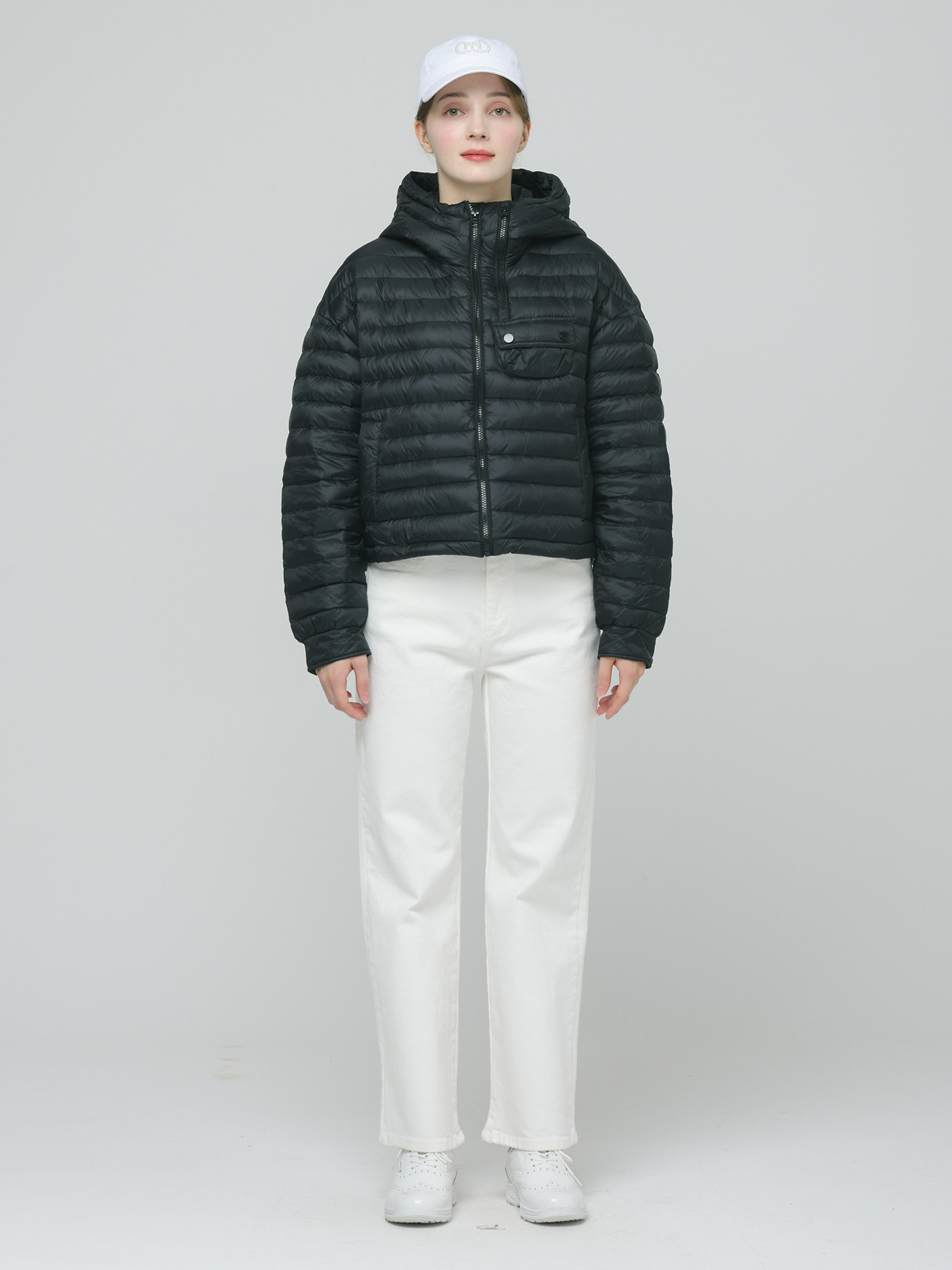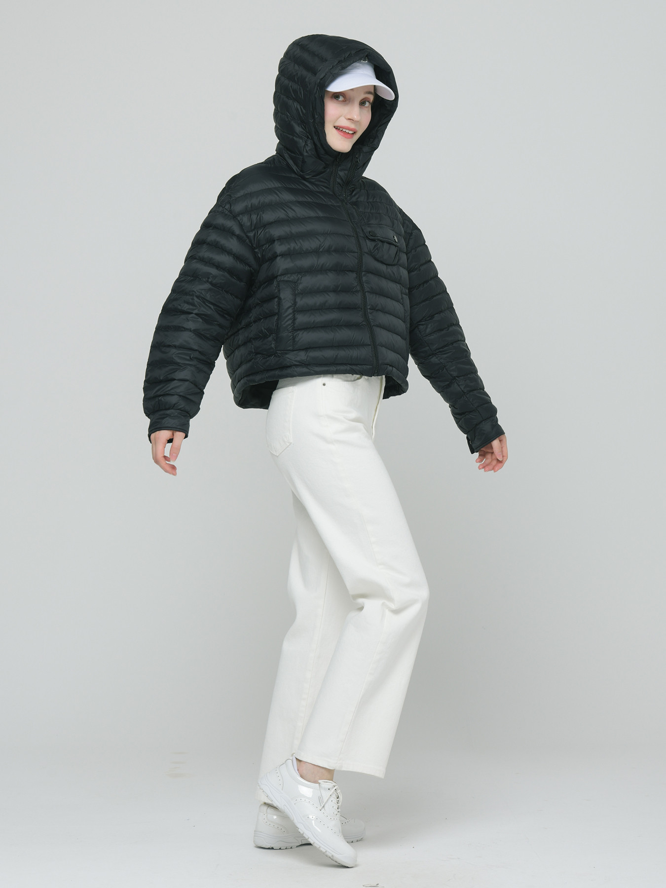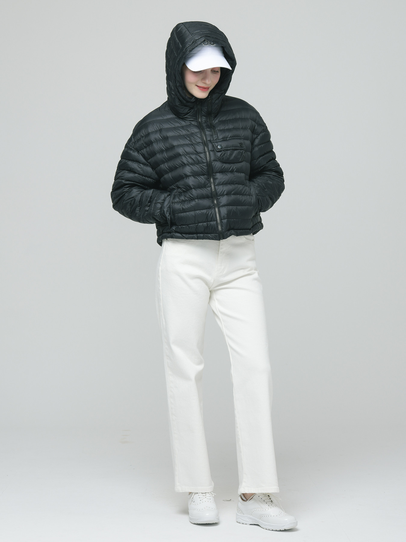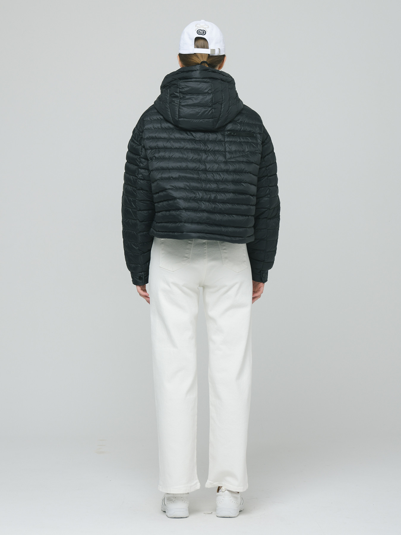 후드 크롭 아노락 루즈 핏 구스 다운 블랙 점퍼