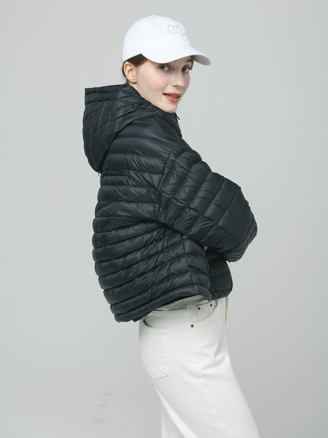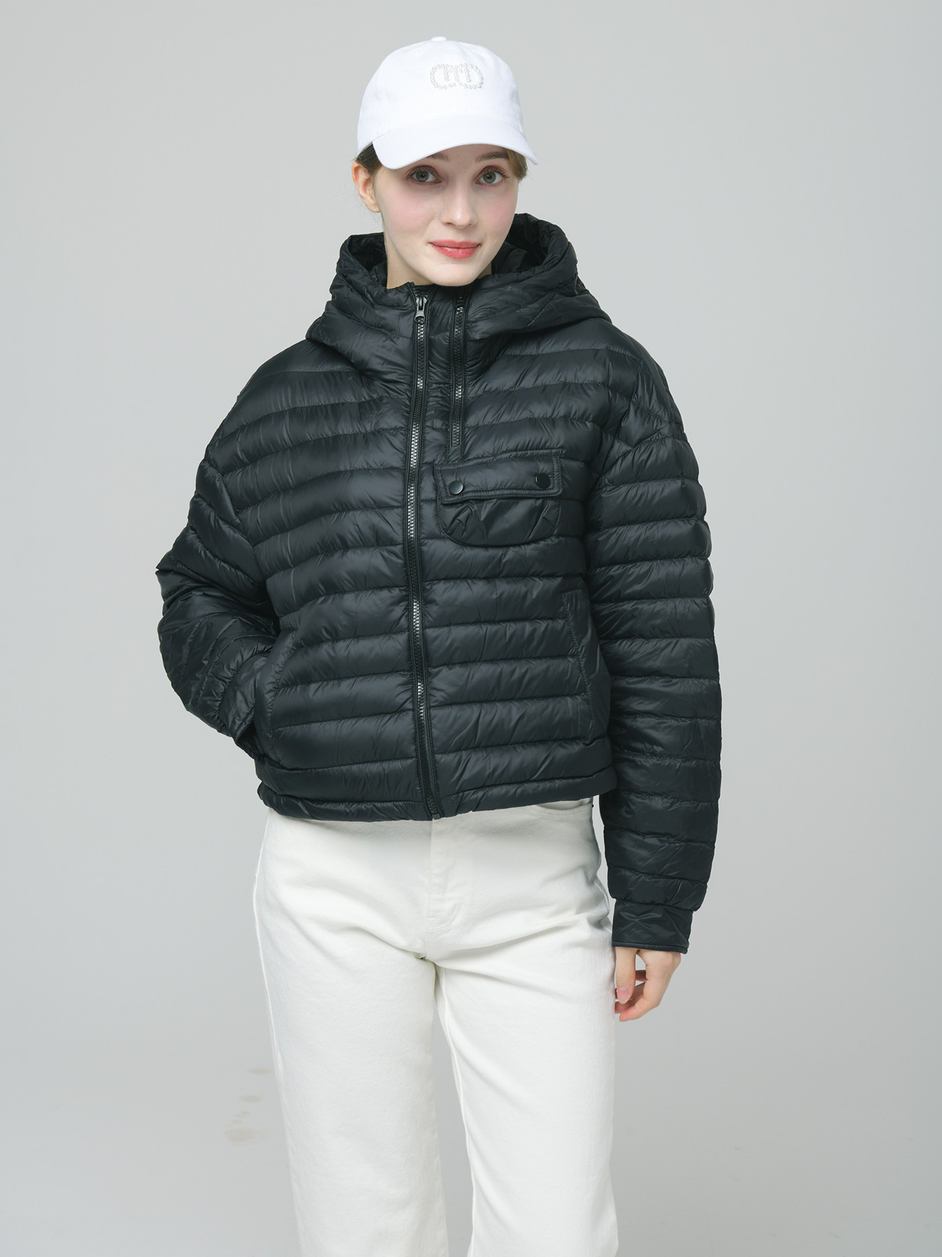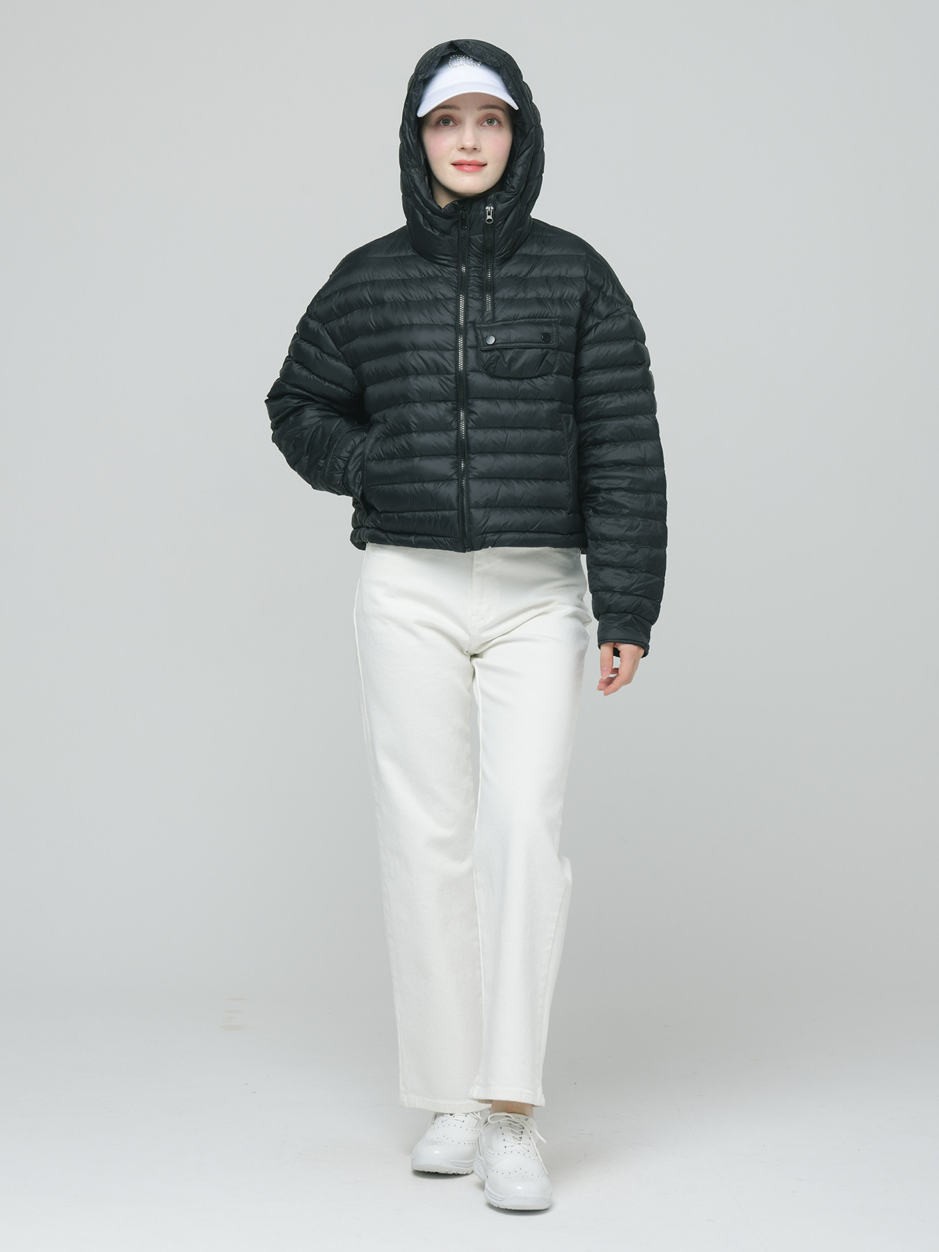 25FW 후드 아노락 경량 덕 다운 부르종 블랙 크롭 점퍼