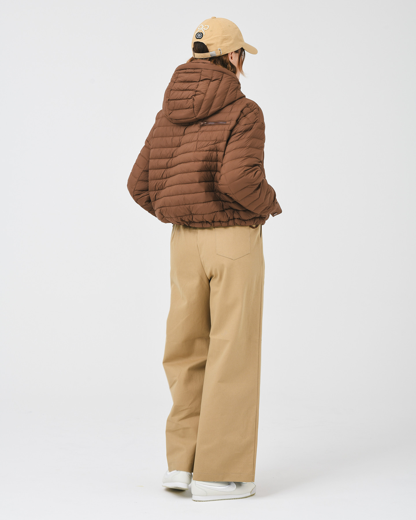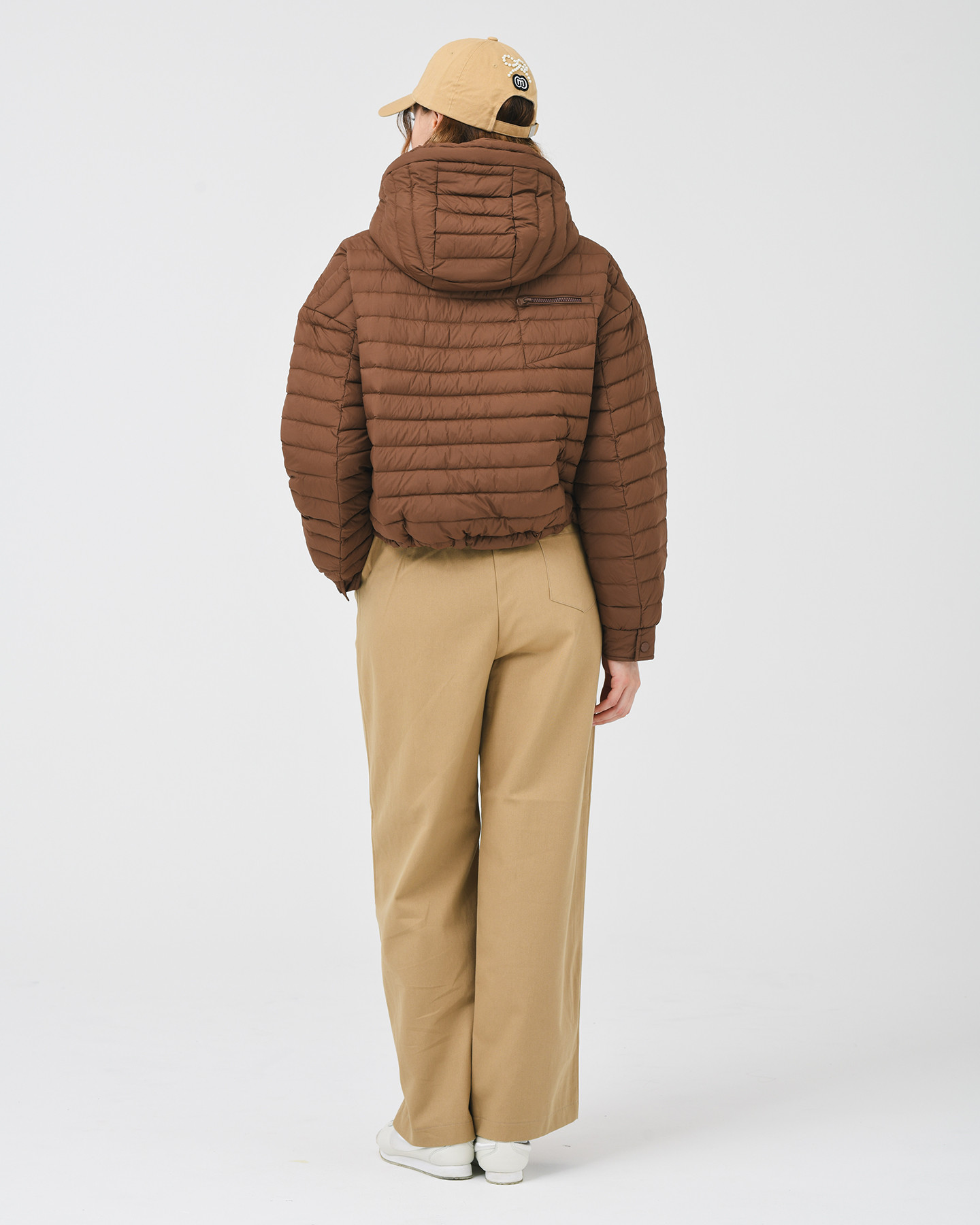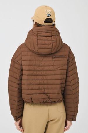 후드 크롭 아노락 루즈 핏 구스 다운 브릭 브라운 점퍼
