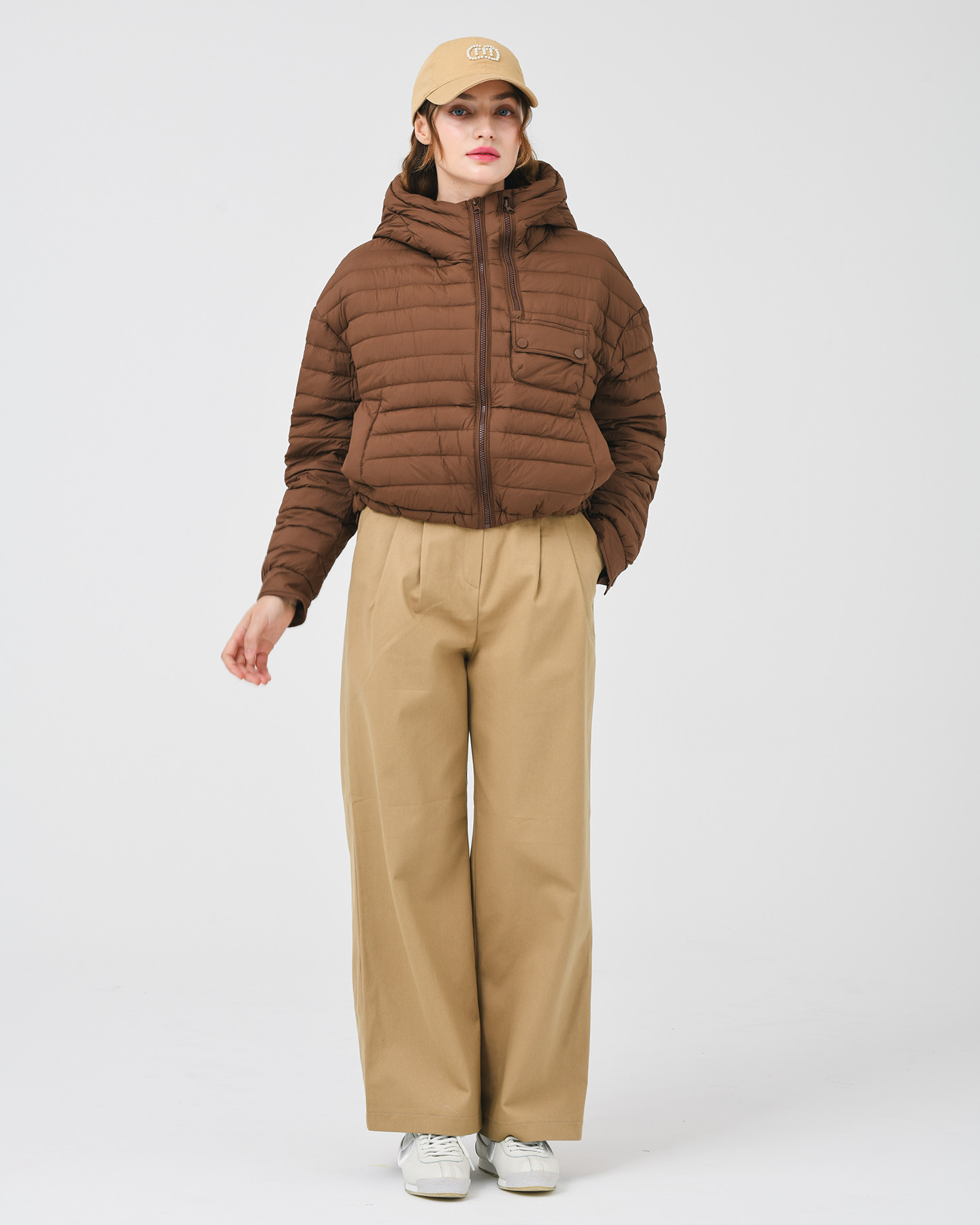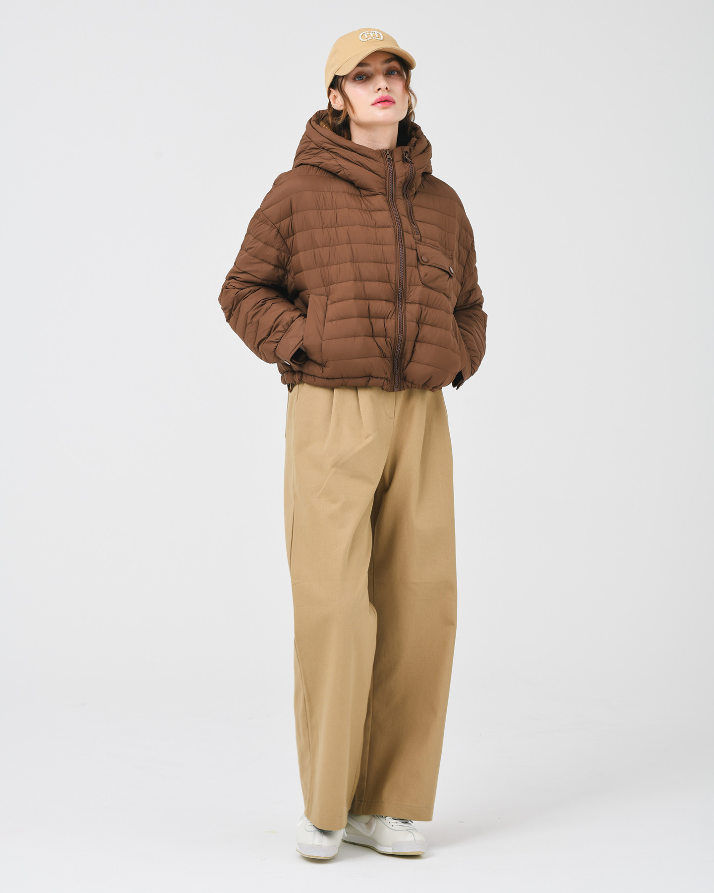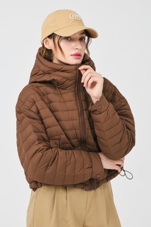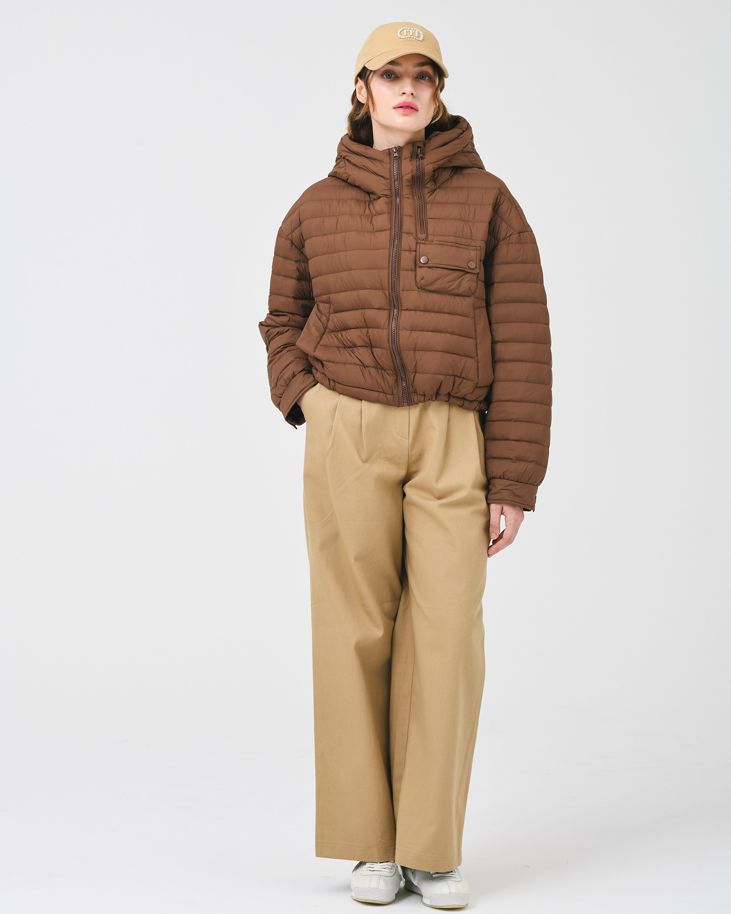 후드 크롭 아노락 루즈 핏 구스 다운 브릭 브라운 점퍼