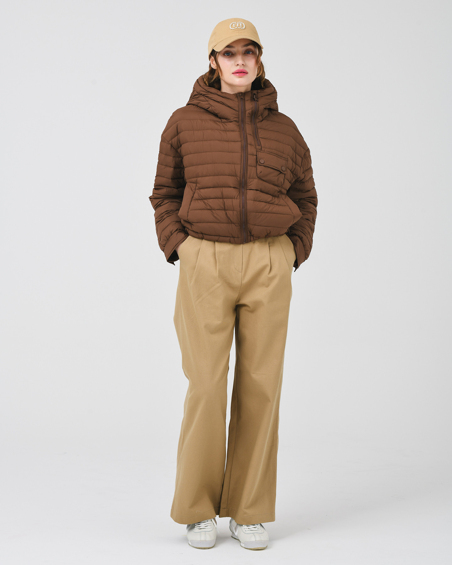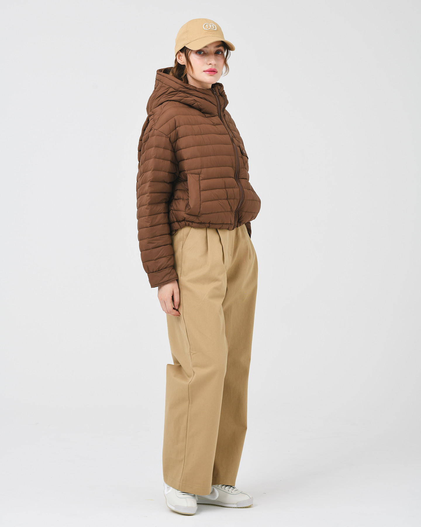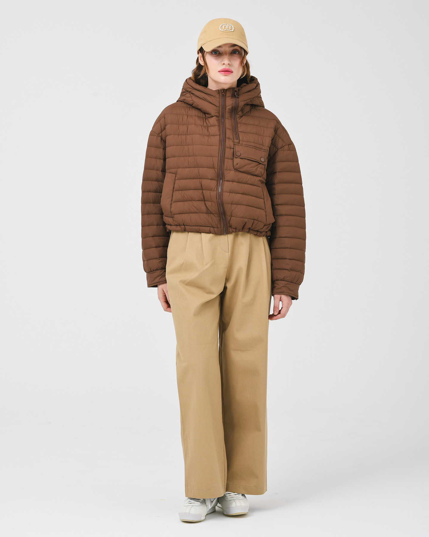 25FW 후드 아노락 경량 덕 다운 부르종 브릭 브라운 크롭 점퍼