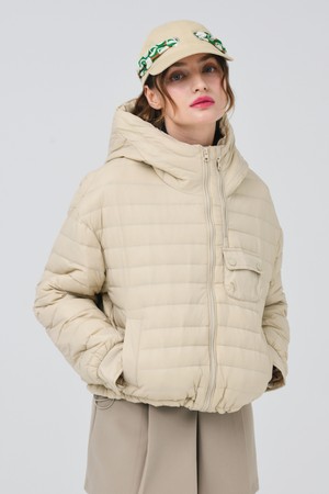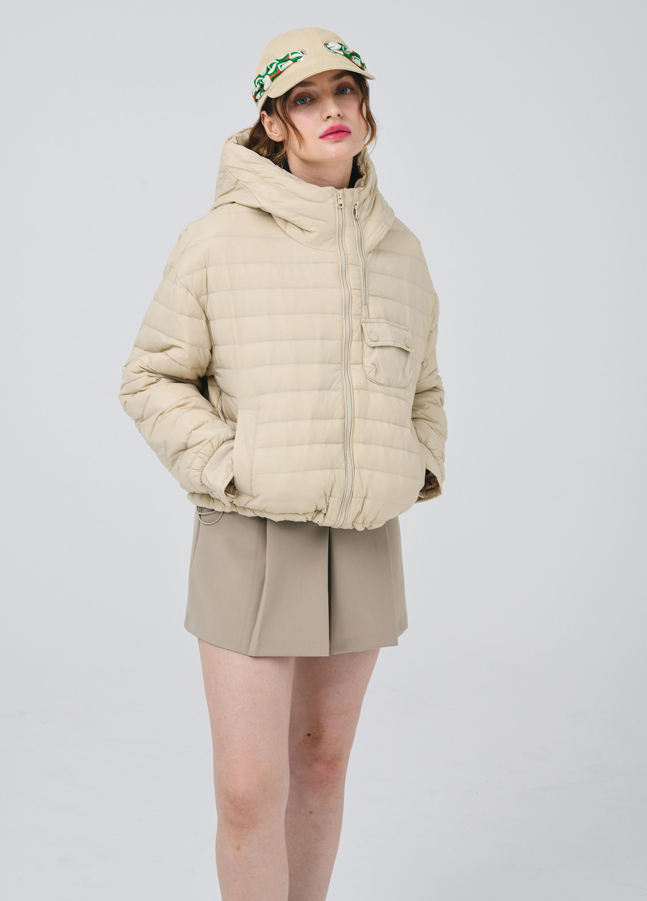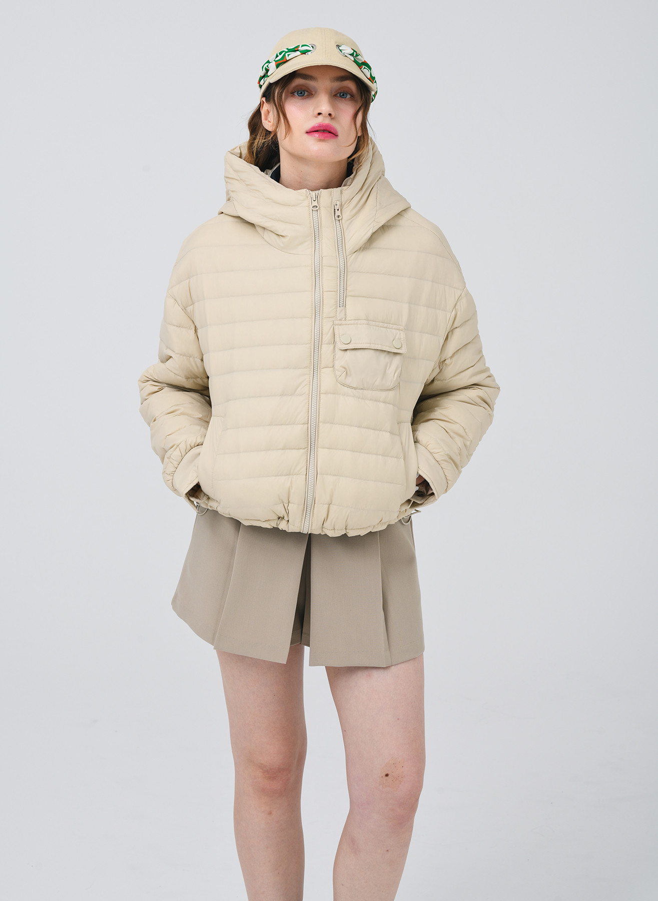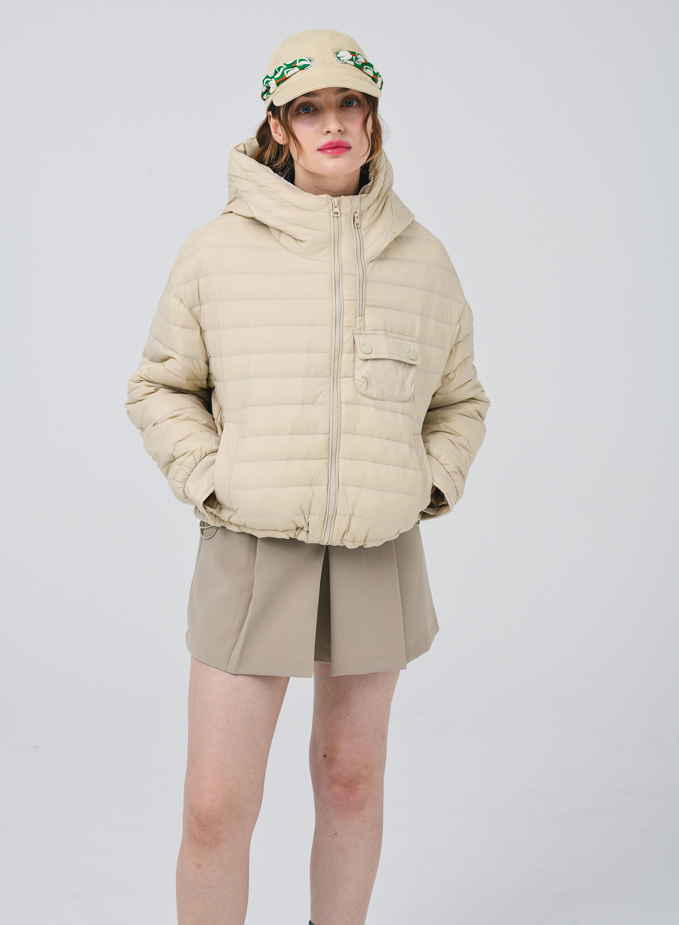25FW 후드 아노락 경량 덕 다운 부르종 베이지 크롭 점퍼