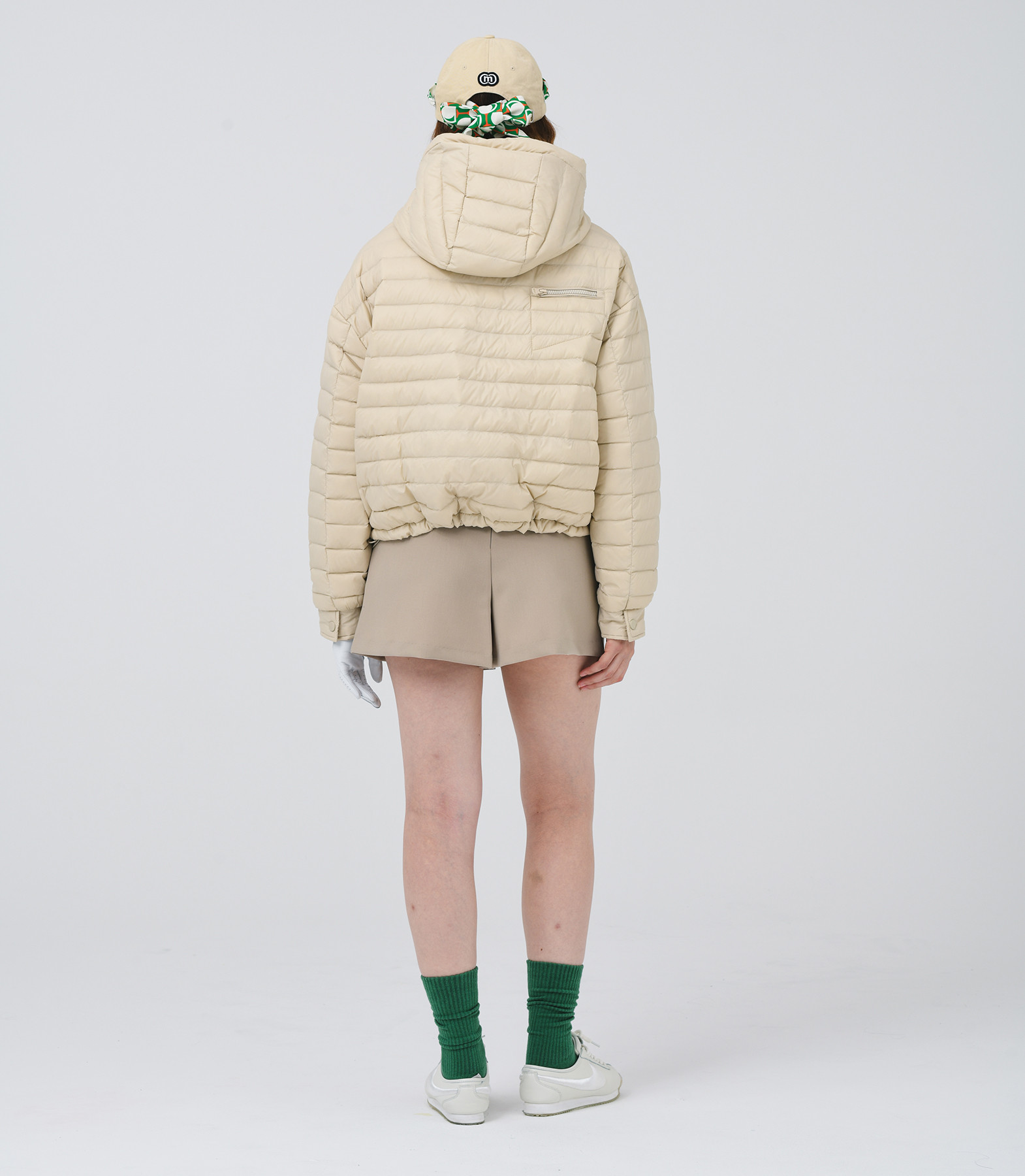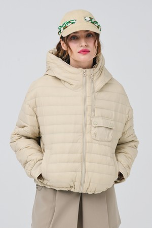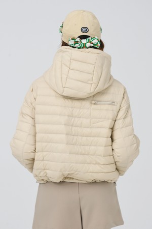 후드 크롭 아노락 루즈 핏 구스 다운 베이지 점퍼