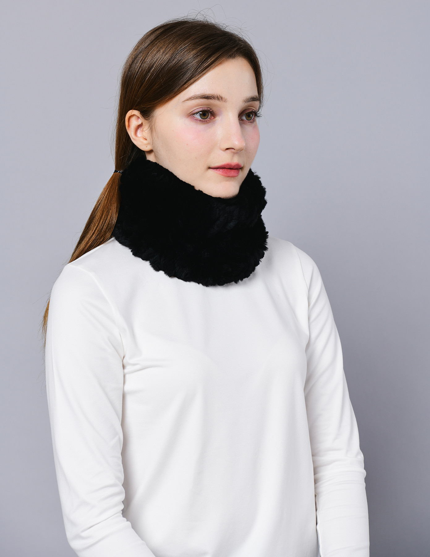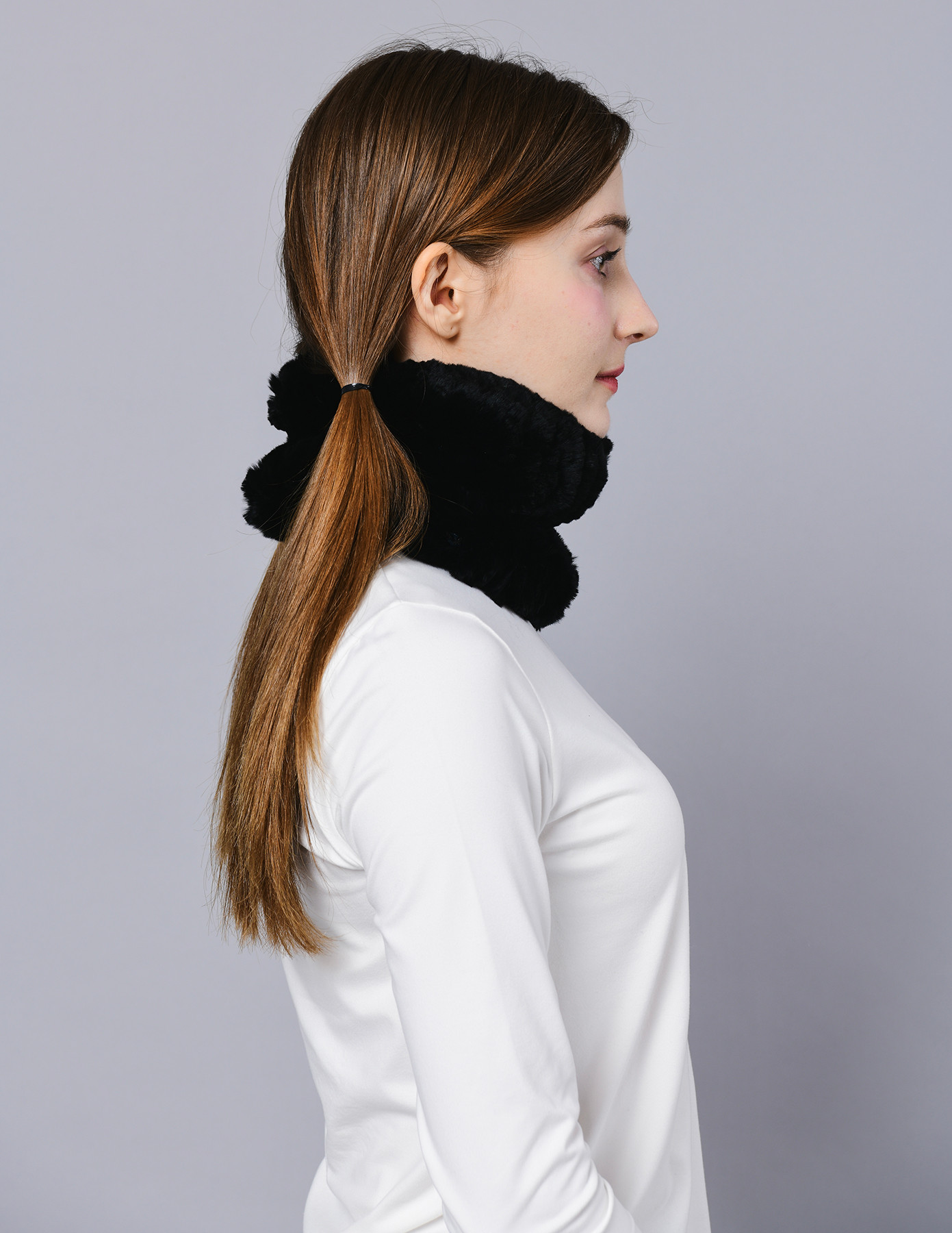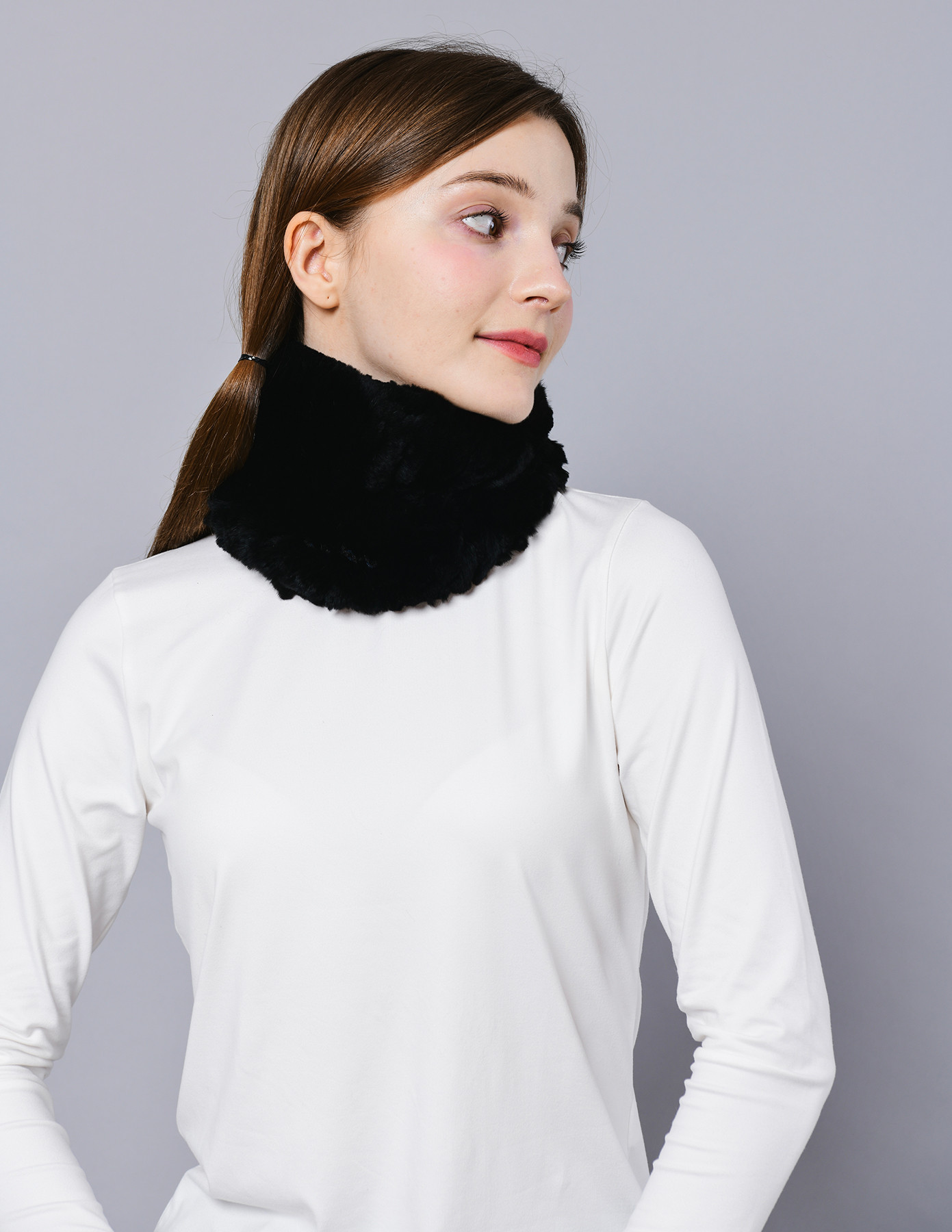 25FW 천연 렉스 퍼 블랙 넥 워머