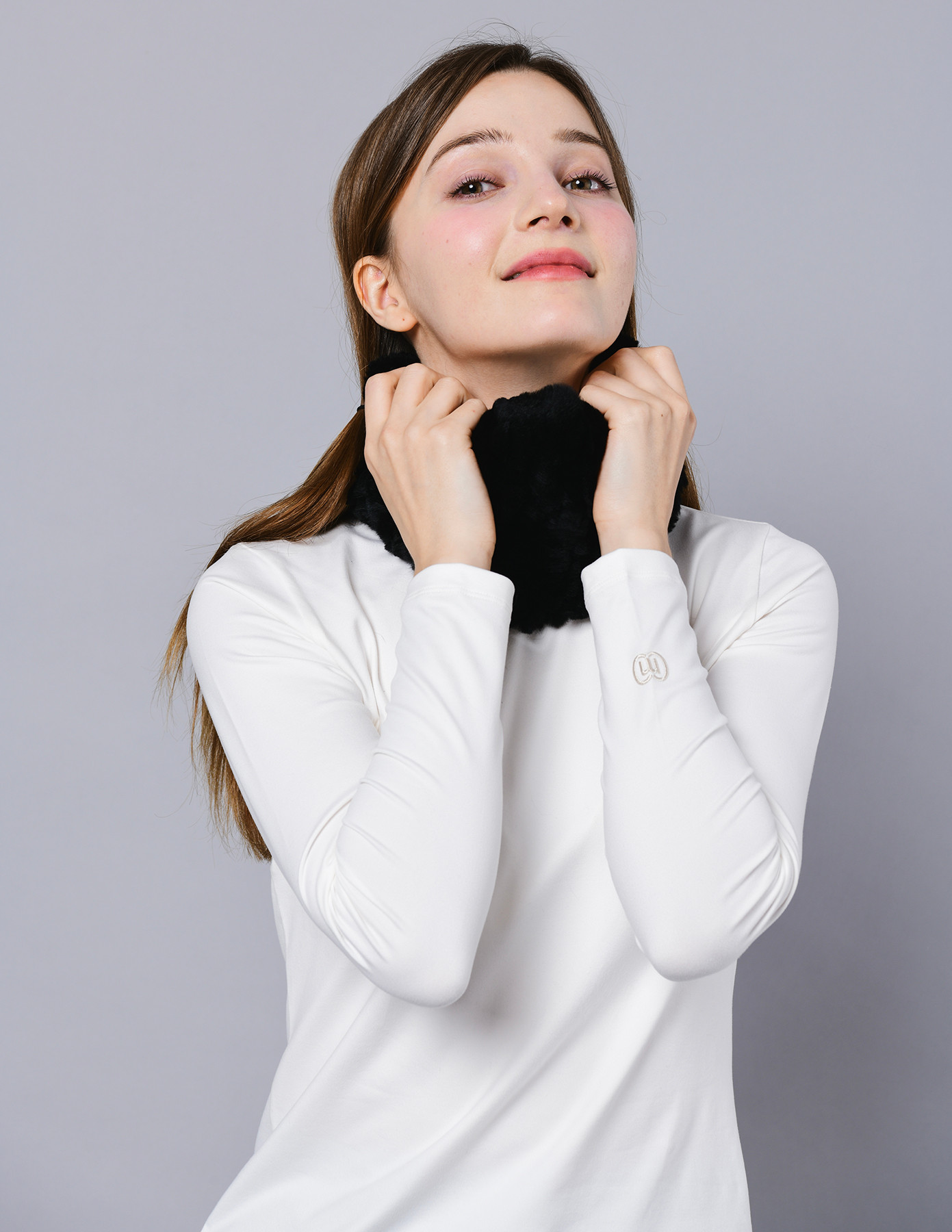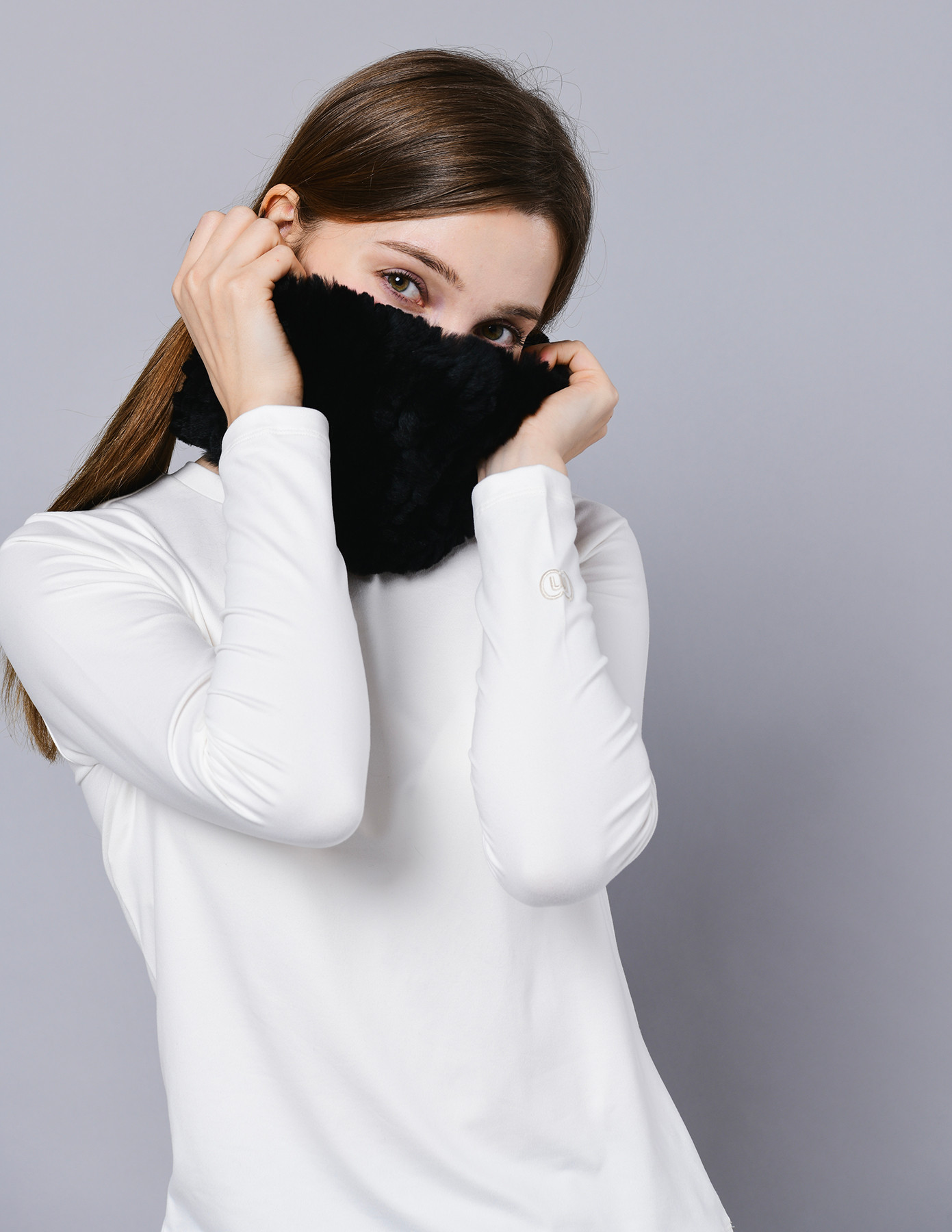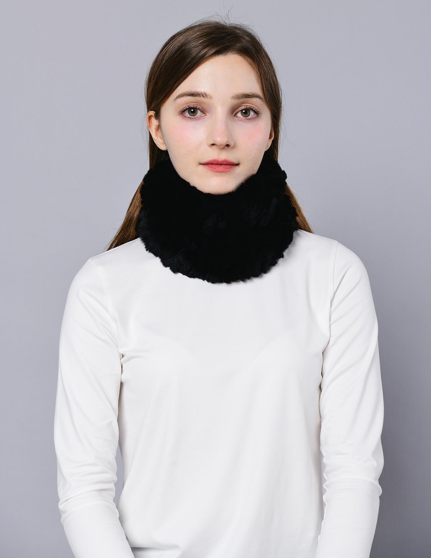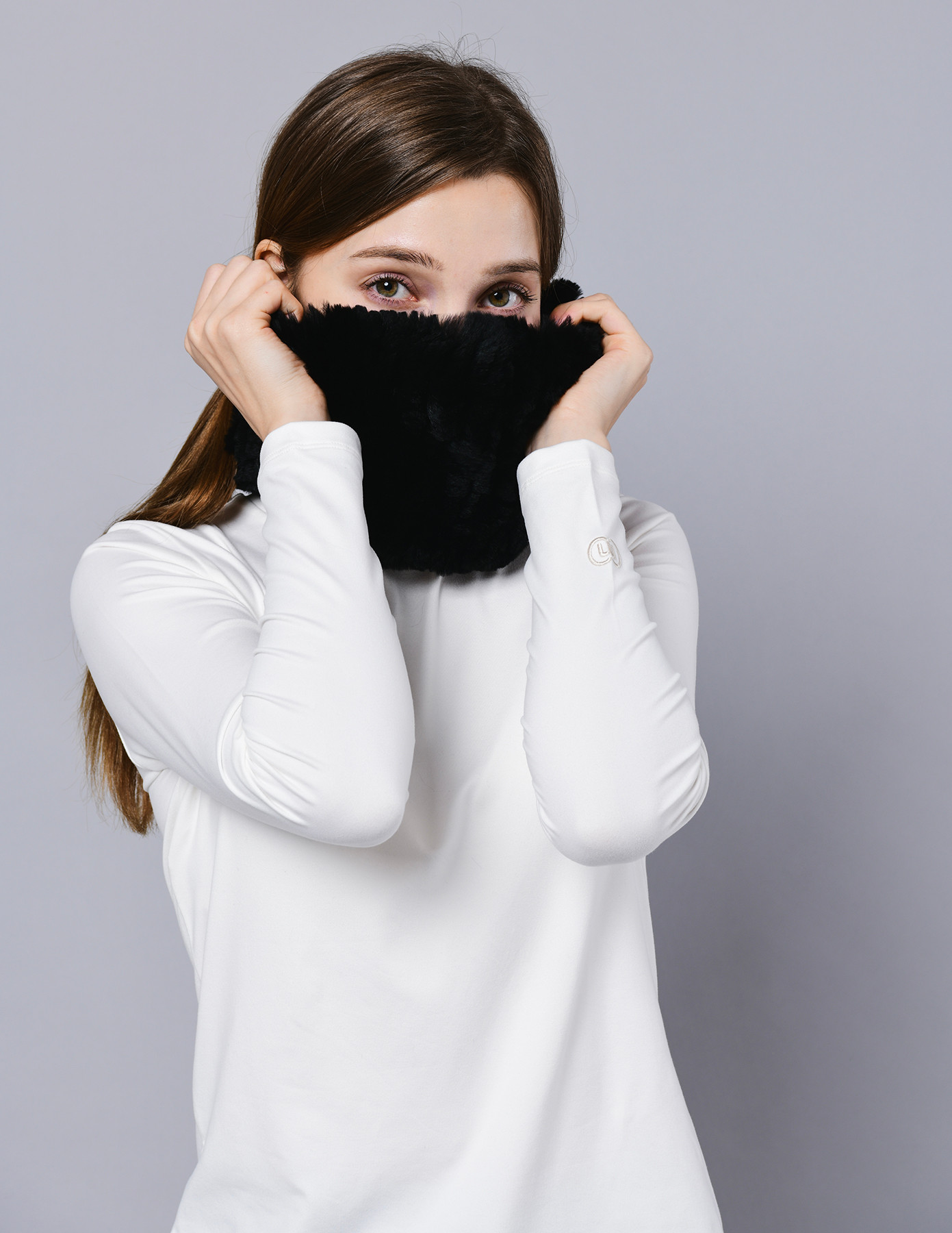 25FW 천연 렉스 퍼 블랙 넥 워머