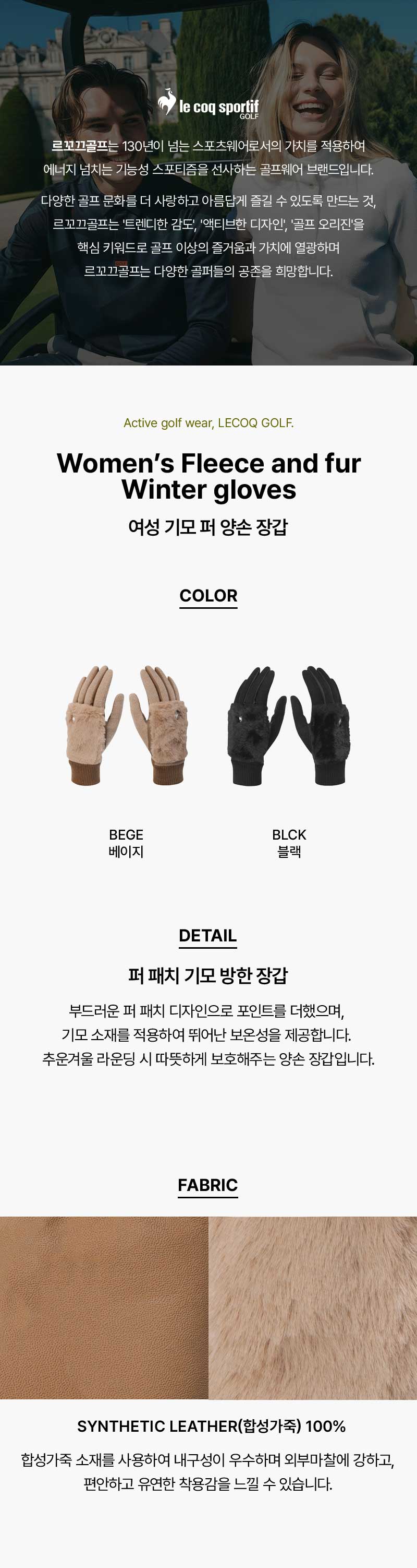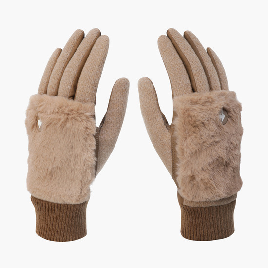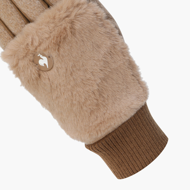 여성 기모 퍼 양손 장갑 _BEGE GQ422LGLO2